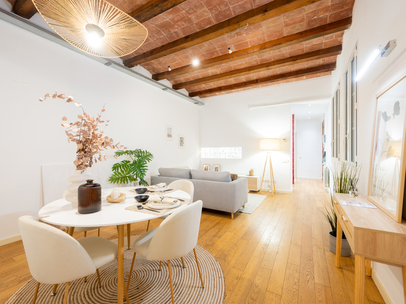 Este maravilloso piso con mucha luz natural se encuentra en una localización ideal del Eixample, a pocos minutos tanto de Plaza Universitat como de la Plaza Espanya. Los alrededores disponen de numerosos servicios, tiendas de barrio, centros comerciales, bares, restaurantes, opciones de ocio y excelente comunicación mediante la línea 1 del metro y autobuses. La vivienda está en la cuarta planta real de un edificio con ascensor y conserje. Tiene 92 m2 construidos interiores y un balcón de 3 m2 que da a la calle. Está lista para entrar a vivir y destaca por sus preciosos suelos hidráulicos y los techos altos. El salón-comedor con cocina abierta es un espacio amplio y agradable en el que la luz natural llena todo el ambiente a través de los grandes ventanales. Tiene acceso a un maravilloso balcón con espacio para mesa y sillas de desayuno, en el que podrás disfrutar al aire libre con mucha tranquilidad, debido a su altura. La zona de noche tiene 3 habitaciones: la principal, una mediana interior y una individual que actualmente se usa como vestidor. Además, hay un gran cuarto de baño completo y un aseo de cortesía. El piso está equipado con aire acondicionado frío/calor por splits y radiadores eléctricos. No dudes en contactar con Bcn Advisors para visitar este piso.