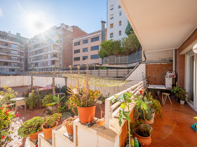 Esta vivienda es una oportunidad fantástica en una excelente zona del Eixample, por su superficie interior de 118 m2 con 4 habitaciones, su enorme terraza de 150 m2, el parking y trastero incluidos en el precio, y su potencial de revalorización. Es perfecta para quienes buscan una inversión sólida y la posibilidad de personalizar cada detalle. La propiedad está en la 1ª planta de un edificio de los años 80. Se sitúa en la parte alta del Eixample, muy cerca de la plaza Francesc Macià, la Avenida Diagonal, el barrio de Galvany y el Turó Park. La ubicación es tremendamente estratégica, ya que podrás disfrutar de lo mejor del Eixample y de la zona alta de Barcelona a pocos pasos: tiendas de barrio, boutiques de primeras marcas, bares y restaurantes, zonas verdes y opciones de transporte público. La distribución actual del piso, con 118 m2 construidos interiores y 170 m2 exteriores, permite una reforma moderna y funcional, ideal para crear espacios abiertos y contemporáneos. Goza de sol directo por las mañanas, aportando luminosidad y calidez a las estancias principales. Además es muy tranquilo, ya que da al patio de manzana. Un recibidor nos da la bienvenida y a través del pasillo distribuidor avanzamos hacia el salón, muy acogedor para tu día a día. Desde él accedemos a la espectacular terraza de 150 m2, un espacio que te permitirá crear todos los ambientes que desees para disfrutar al aire libre de comidas, reuniones, juegos, tu huerto urbano y el relax. Volviendo al interior, la cocina office es de tamaño generoso, con espacio para mesa y sillas, está equipada con electrodomésticos y tiene salida a un patio que se utiliza como lavadero. En la zona de noche, otro patio interior garantiza luz natural y ventilación. Hay 4 dormitorios, uno de ellos en suite con salida a la terraza, cuarto de baño privado y armarios empotrados, y otro cuarto de baño independiente. El piso está equipado con suelos de parquet, aire acondicionado por splits y calefacción por radiadores de gas natural. El precio incluye una plaza de parking y un trastero en el mismo edificio. No dudes en conctactar con Bcn Advisors para visitar este inmueble.