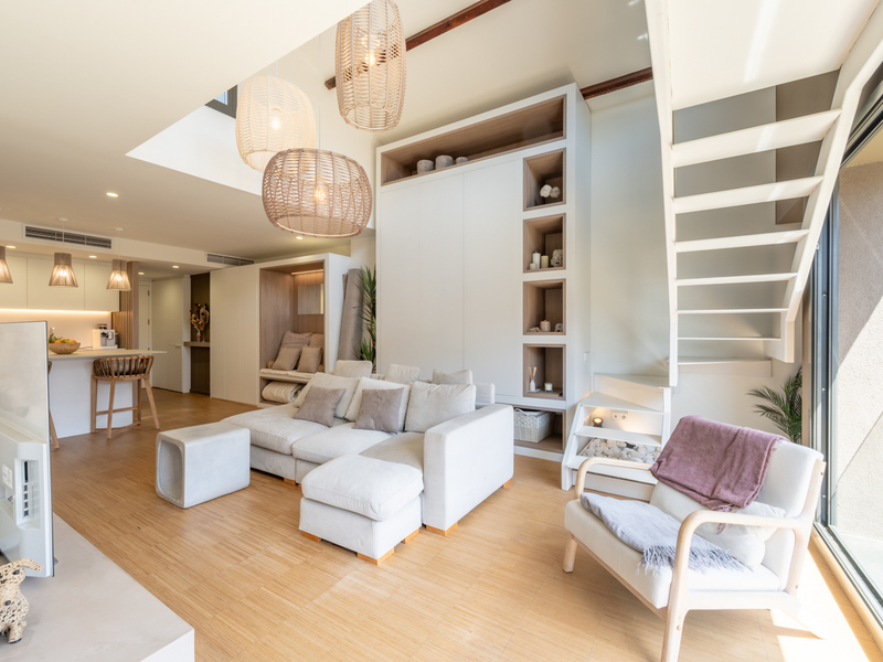 Just a stone’s throw from the sea and Parc de la Ciutadella, this duplex penthouse with terrace is a real gem in one of Barcelona’s most attractive areas: La Vila Olímpica. It's situated in one of the most exclusive buildings in the area: a former industrial warehouse fully refurbished in 2020 by one of Catalonia’s most renowned architects. The penthouse has 127 built interior sqm and a 25 sqm terrace. On the main floor, the entrance hall leads directly into the living room with an open-plan kitchen and central island, spanning over 36 sqm. It is an incredibly light-filled space thanks to the high ceilings and large windows. With a square layout free of corridors that makes the most of the space, this floor features two en-suite bedrooms, each with its own bathroom. On the upper floor, there's a 27 sqm multi-purpose area, which can be used for various purposes such as a third bedroom or a small lounge, and a 6 sqm study, ideal for working in peace as an office, or it can also be used as a storage room. Both have access to the fabulous terrace, which is very intimate and offers complete privacy, allowing you to enjoy Barcelona’s pleasant Mediterranean climate all year round. The contemporary design of this property maximises the amount of natural light. The penthouse is fitted with top-quality finishes and materials, bespoke furniture, parquet flooring and ducted hot/cold air conditioning. It is situated on the sixth floor of a building with a lift. The surrounding area features green spaces and beaches where you can make the most of nature within an urban setting. The wide range of services and shops caters to all your day-to-day needs, and public transport links are excellent, with three metro stations and bus stops all within easy reach. Please do not hesitate to contact Bcn Advisors to arrange a viewing of this penthouse.