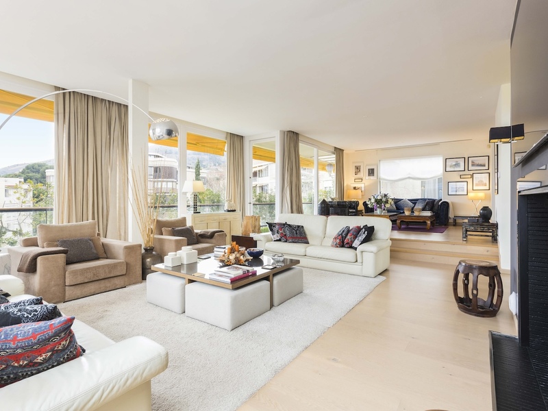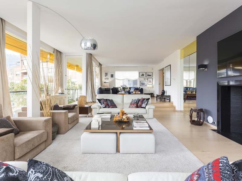 This magnificent 500 sqm penthouse for rent occupies the entire floor and has several terraces around its entire perimeter, which add up to 130 sqm of outdoor space. It's a real luxury in the best residential area of Barcelona, Pedralbes, a quiet and exclusive neighbourhood surrounded by international schools, business schools, large green areas, shops and services. A large entrance hall leads to the day area, consisting of a spacious living room divided into two areas with a fireplace, a dining room with an adjoining room, and a library with another fireplace. The living room gives access to the main terrace, an ideal place for outdoor gatherings, dining or simply relaxing. On the other hand, the property has a large kitchen with a laundry room, a pantry, an eat-in area, a breakfast area and a large terrace. The night area is composed of 4 en-suite bedrooms, a guest toilet and a maid's room with a complete bathroom, which has direct access from a lift. The master suite has a fireplace, dressing room with large wardrobes and access to another terrace. The second suite, with access to another terrace, has a jacuzzi and sauna. The other two suites are located at the other end of the flat and have a balcony. The property is furnished and has parquet flooring, individualised air conditioning by zones, heating by radiators, WiFi antennas and electric blinds. It also includes 6 parking spots (2 triple parking spaces).