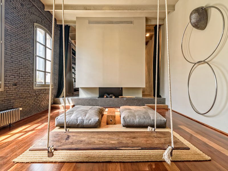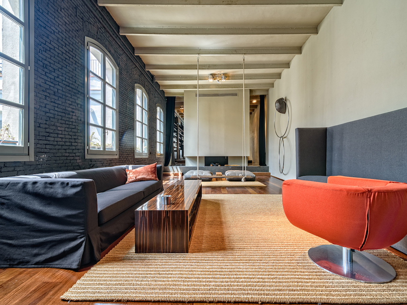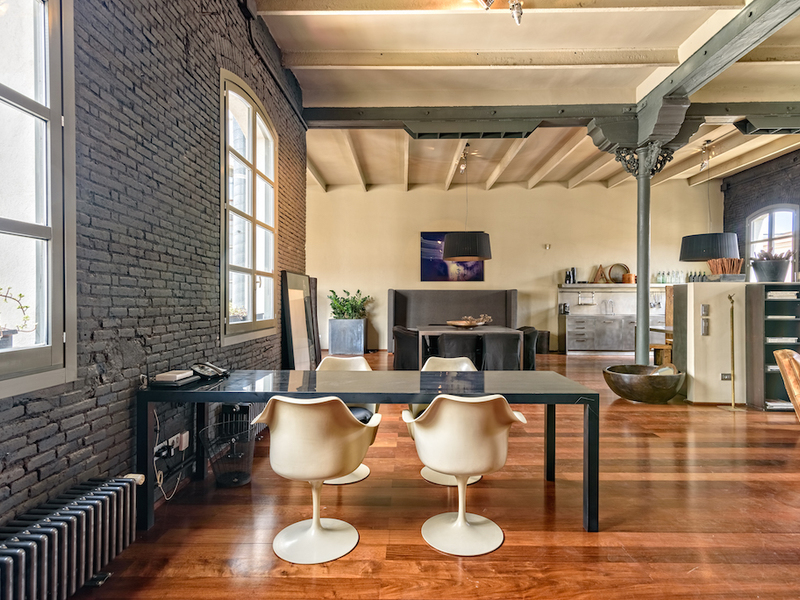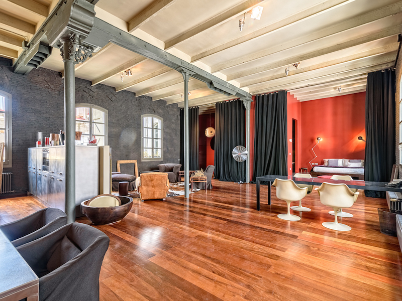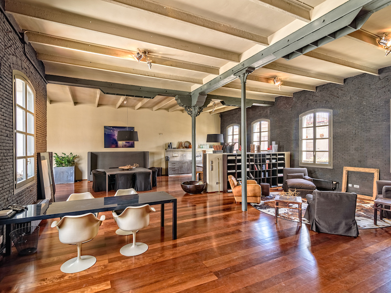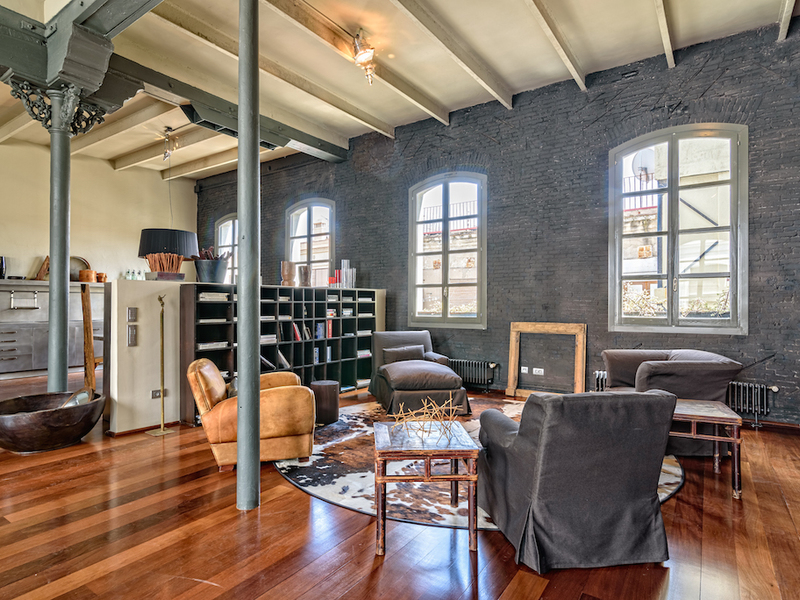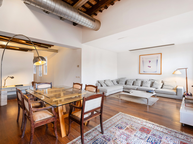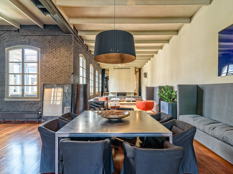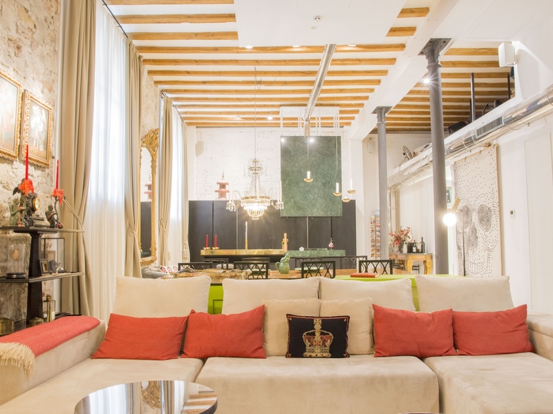 This spectacular designer loft is located on a quieta street, in a former textile factory converted into lofts with exclusive access by walkway of private use, between Eixample and Born areas. The property is 293 sqm, L-shaped, with open and semi-open spaces, which makes it an ideal property to live. It features a beautiful lounge - chill out area with fireplace and small swing, dining area and kitchen as well as other small living area with studio space. It also has two huge suites, each one with large closets and their own bathrooms, one very large with sitting area and bath brick. The place has pretty high ceilings preserving its original structure (Catalan vault and iron beams) which give a true New Yorker loft environment. The property has solid wood parquet flooring , natural gas heating, air conditioning and carpentry. Ideally located, you can enjoy both the near Plaza Catalunya and the beautiful neighborhood of Born area and the Ciutadella Park. Do you love the architecture and history of Barcelona? Our penthouses in Barcelona offer a unique perspective of the city's cultural richness.