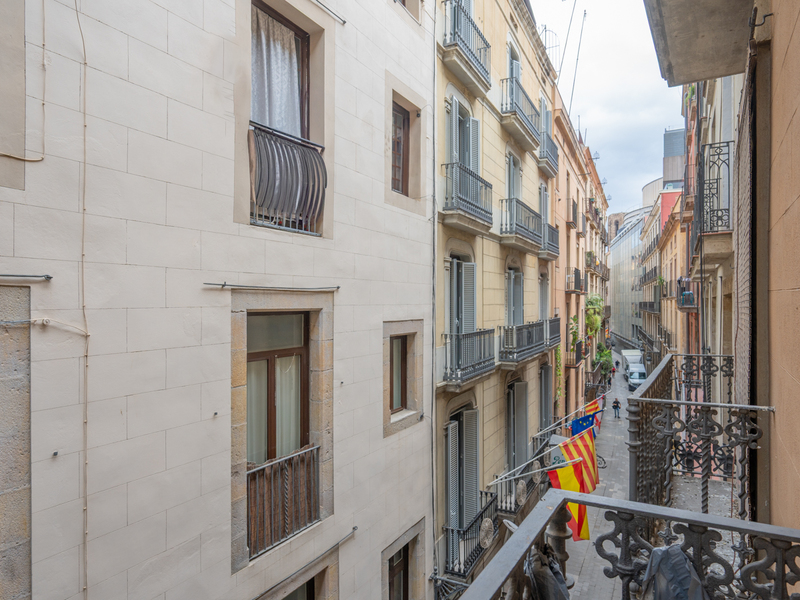 Live the magic of the Gothic Quarter in this 128 built interior sqm apartment plus 2 balconies of 8 sqm and 5.6 smq, located in a stately building with elevator. Located on a true 4th floor, it perfectly blends history and comfort: Catalan vaulted ceilings, exposed brick walls, original hydraulic tiles, and a recent renovation in excellent condition. Upon entering, you are welcomed by a spacious hallway with built-in wardrobes. To the left, the magic begins in a show-stopping living-dining room: flooded with natural light from the balcony and window overlooking the street. Its exposed brick walls and Catalan vaulted ceiling with wooden beams create a warm and sophisticated atmosphere—ideal for dinner parties with friends or quiet afternoons with a book. From the hallway to the right, you’ll find a versatile medium-sized room; a modern fully equipped kitchen designed for those who love cooking; a bright double bedroom with built-in wardrobes, perfect for guests or a home office; a convenient bathroom with walk-in shower; and at the end of the corridor, the master suite with original hydraulic floors, en-suite bathroom, and direct access to a cozy private terrace. A hidden gem for sunny breakfasts or calm nights under the stars. Renovated just a few years ago and in impeccable condition, this apartment combines the essence of historic Barcelona with modern comfort. A true jewel for those who wish to live in style at the very heart of the city, surrounded by life, culture, and authenticity.