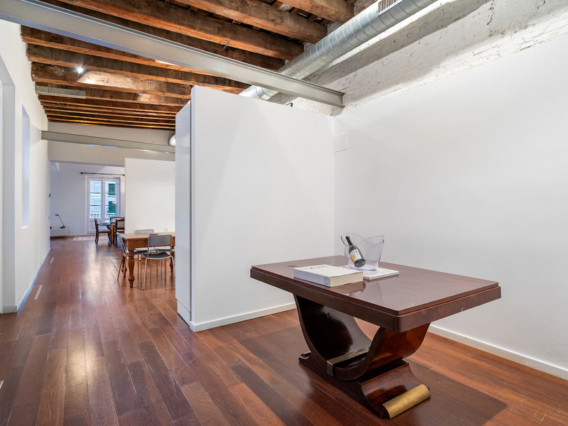 This 220.8 built interior sqm duplex with a 50.7 sqm terrace is located one street away from Plaza Catalunya, in the heart of Barcelona. It's located in a historic building from the beginning of the 18th century and has 3 very spacious bedrooms (that could be 5) and 3 bathrooms. The property is composed of two registry entities and has an entrance on each floor. The first floor has a large living-dining room with an open plan kitchen with custom made stainless steel furniture. It is bright thanks to the windows and quiet as it overlooks the inner courtyard. From here we can access the terrace through a corridor where the laundry area with sink and ample storage space is located. The terrace is very sunny and the perfect place to hold meetings and outdoor meals, or simply to relax. If we go to the entrance hall of this first floor, on the right hand side there is a double bedroom and a medium sized bedroom facing the street. On the left hand side, there is a dressing room with a bathroom and, next to it, a large open space that can be used as an office, with a double door that communicates with a bathroom with double washbasin and shower. The interior stairs lead us to the first floor, where we find a second cosy living room with views to the street and a gallery overlooking the inner courtyard of the building. Then there is a hallway with fitted wardrobes that leads to the master bedroom with views to the terrace and plenty of natural light. On both sides of the corridor there is a bathroom with bathtub and shower and a room used as a dressing room with more wardrobes. The duplex maintains original features such as the wooden ceilings and the restored beams on the first floor. On the first floor, the 18th century wooden ceilings have been restored, combined with skylights that allow natural light to enter. The property is equipped with wooden floors, radiator heating and air conditioning by splits. It occupies the 2nd and 3rd real floor of a building without lift. This property enjoys a privileged location in the heart of Barcelona, where you can enjoy the history of its streets and monuments, numerous shops and services, bars, restaurants and excellent public transport links. Do not hesitate to contact Bcn Advisors to request a visit to this duplex.