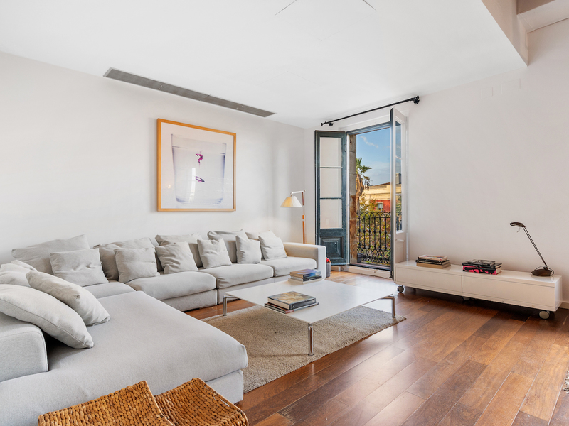 This exclusive flat of 176 sqm according to the Cadastre is located in a charming and quiet square in the heart of the Gothic Quarter, offering an oasis of light and serenity in the city. Completely renovated in 2009, this property has been designed with exquisite taste, achieving a perfect fusion between classic style and modern comforts. The original tiled floors and Catalan vaulted ceiling have been carefully preserved, while wooden double-glazed windows, ducted air conditioning and gas heating have been added, providing comfort in every corner. Located on the fourth and top floor of a corner building, the property has 4 exterior balconies that allow natural light to enter throughout the day. The large 56 sqm living-dining room with integrated kitchen offers a generous space to enjoy and receive your guests. The layout is completed by 2 double bedrooms, a dressing room, a storage room and a light-filled bathroom with bathtub and shower. In addition, there's an independent 30 sqm apartment, with its own living-dining room, an open-plan kitchen, a double bedroom separated by elegant sliding doors, and a bathroom with shower. Currently, this flat is rented out for long periods of time, generating an ideal additional income. It's also perfect for a professional studio or master bedroom, depending on your needs. This division can easily be reversed, transforming the property into one spacious home with 4 double bedrooms, 2 full bathrooms, dressing room, storage room and a guest toilet/laundry room. The owner, an architect, offers to carry out this modification so that the space adapts to your lifestyle. Access to the flat is from a shared hall that connects the three areas independently, with additional access to a toilet-laundry room. The building has a large communal terrace, where each owner has their own storage room, perfect for additional storage. This flat is close to the squares of Sant Miquel and George Orwell, just a few steps from Paseo Colom, the Port Vell and the Cathedral of Barcelona. The area offers numerous shops, services, a shopping centre, Soho House, the charm of Barcelona's history and public transport options. All just a 15 minute walk from Plaza Catalunya. Take advantage of this opportunity to live in an architectural gem in the heart of Barcelona! Contact Bcn Advisors to visit this flat.