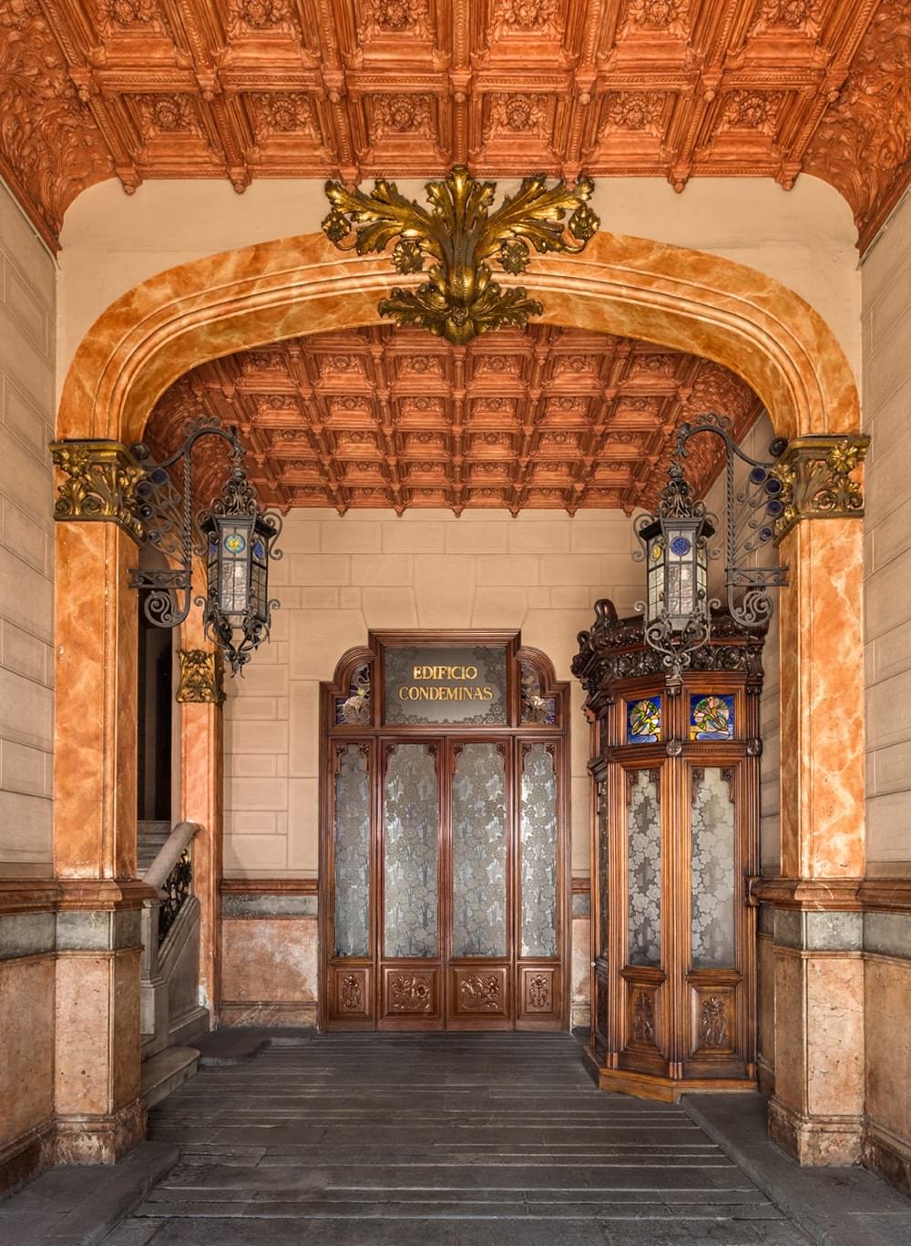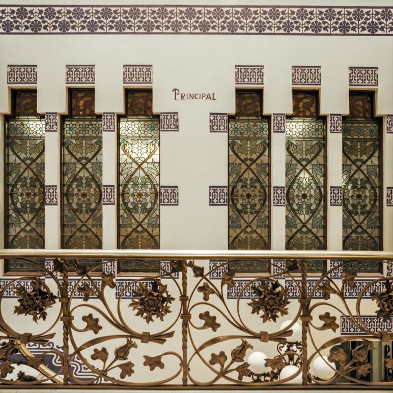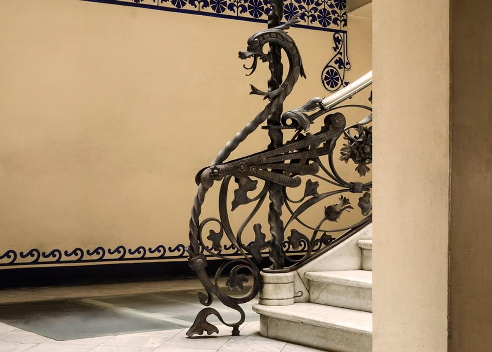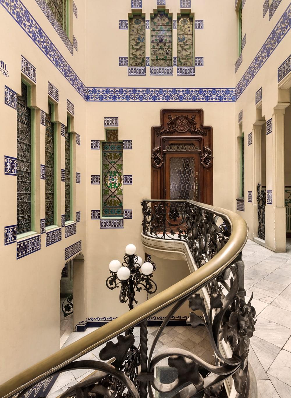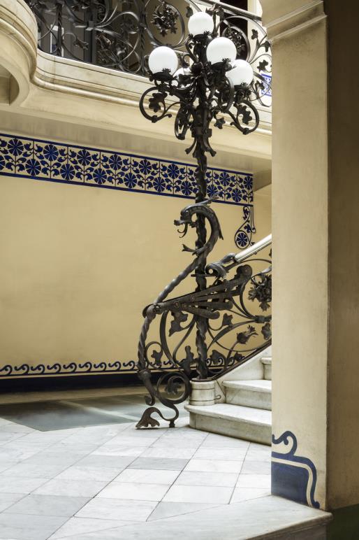 The flat conserves the beautiful original hydraulic floors and has all the comforts of the 21st century in a magnificent modernist building. Beautiful ironwork, stained glass windows, unique hydraulic floors, carved woodwork, all original, combined with the most modern building technologies and the most up to date equipment.