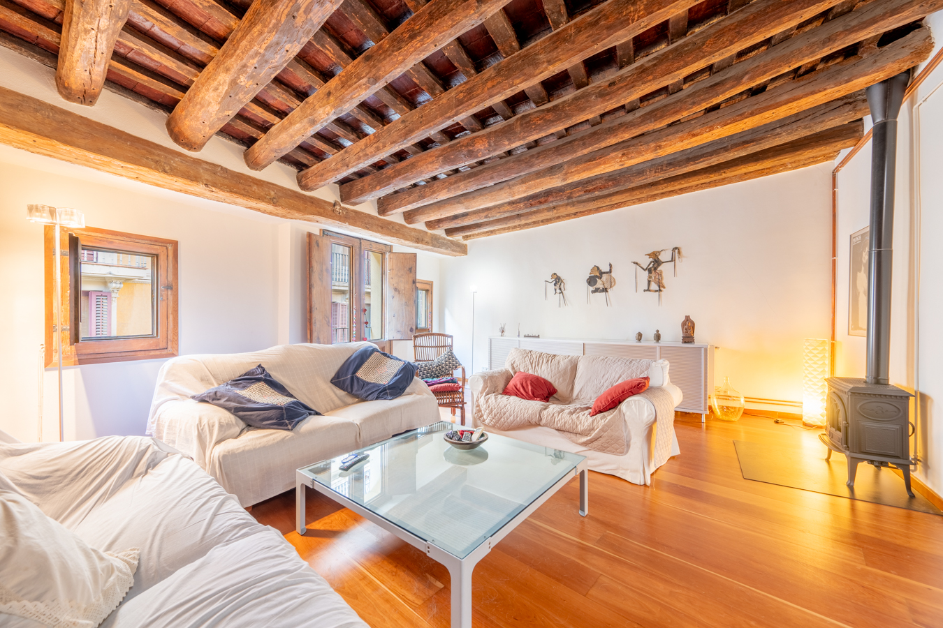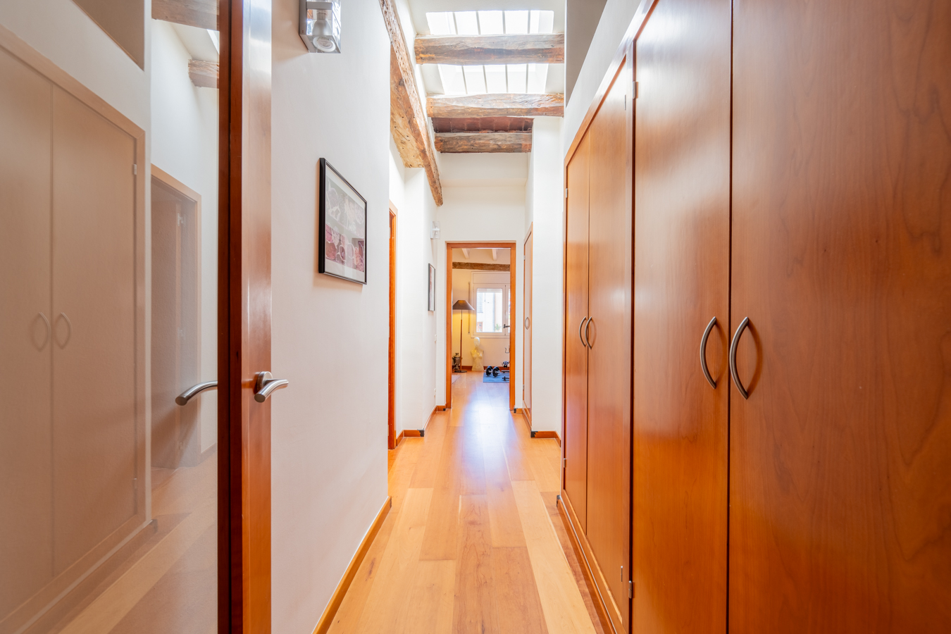 This penthouse is just one street away from Plaza Catalunya, right in the heart of Barcelona. It’s located in a historic building dating back to the early 18th century. Its privileged location allows you to enjoy the history of Barcelona’s iconic streets and monuments, numerous shops and services, bars, restaurants and excellent public transport links.