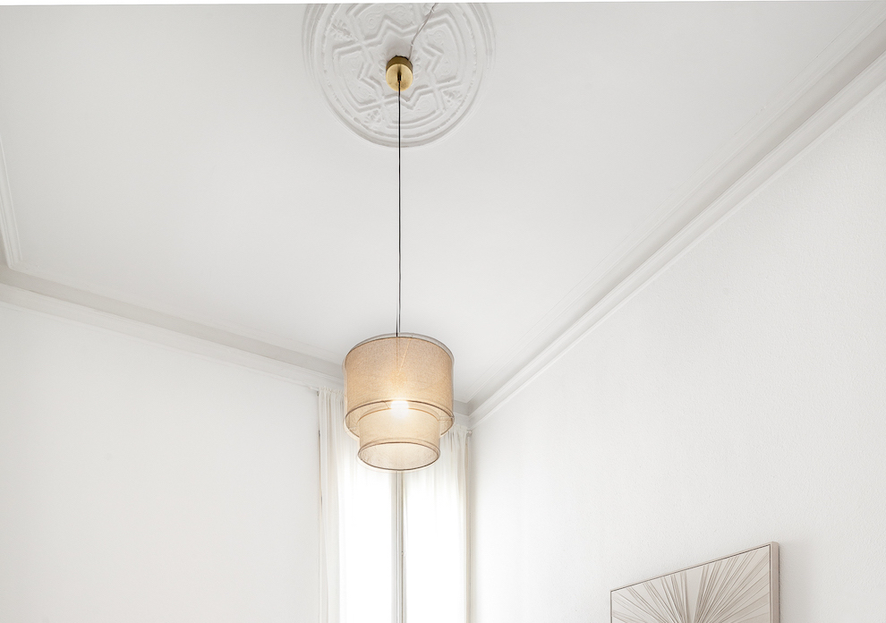 The flat is on the real 2nd floor and stands out for its high ceilings of 4 metres that give a great sensation of spaciousness and luminosity. It maintains original period features such as hydraulic floors and wooden beams and rosettes on the ceilings. It’s equipped with radiator heating.