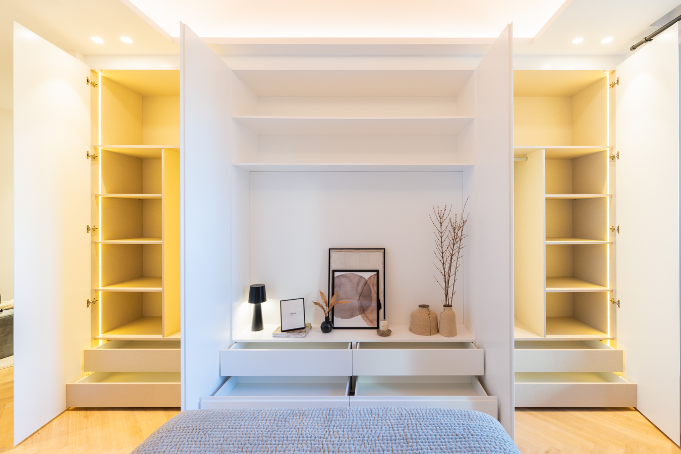 This wonderful property has an excellent location in Barcelona and is part of a comprehensive refurbishment project in a regal 1910 building with luxury flats. The building is on the corner of Carrer Girona, which is already being transformed into a pedestrian street and the works are almost finished, and Avenida Diagonal, which is being converted into a boulevard-like avenue with a large pedestrian area, green areas and cycle lanes, greatly reducing vehicle traffic. You will be able to enjoy the best of Barcelona in an incomparable location: in the heart of Eixample, very close to Paseo de Gracia, the city centre and all the shops and services. This property on the real second floor has 137.2 sqm of interior space and 2 balconies totalling 3 sqm. A private entrance hall leads to the entrance hall and the hallway, which leads to the large living-dining room of 45 sqm with balcony. It is corner, has great natural light, which is atypical in the Eixample, and unique views with a lot of depth. Thus, it creates an extraordinary atmosphere that allows us to clearly differentiate several areas. The kitchen is semi-open but occupies a very independent space, and next to it there is a laundry room. The night area features three bedrooms. The outstanding master suite has an office area at the entrance, which divides the private bathroom and the bedroom. It has a balcony overlooking the street. In addition, there is an interior double bedroom and a medium-sized bedroom and a separate bathroom. This flat is scheduled to be completed in the fourth quarter of 2024 and the keys will be handed over in the first quarter of 2025. It will have materials and finishings of the highest quality, as well as an interior design that will combine the classic elements of the royal estates with the most modern. Large spaces and luminosity will be important, achieving a balance between traditional elements such as the restored Catalan vaulted ceilings and the comfort and amenities of a new building: underfloor heating, hot and cold air conditioning powered by aerothermics (the latest technology in air conditioning systems that produces energy savings of between 60% and 70% compared to conventional systems), top-of-the-range electrical appliances, natural wood floors, entrance door with security lock, built-in wardrobes, porcelain tiling on the bathroom walls, LED lighting, fibre optic connection, Internet and television signal sockets, etc. The building, which will be fully refurbished, will have 2 lifts (the original one restored respecting its wooden cabin with a new mechanism and a completely new one), a concierge, an area for charging electric bicycles and a private modernist-vintage style gym with 2 toilets. The large main façade of the building, as well as the numerous inner courtyards and the rear façade, provide the building with excellent lighting and ventilation. The unusual distance to the buildings parallel to the façade further enhances the feeling and perception of spaciousness. As this is a modernist building with important historical value, the interior design team has prioritised the recovery of some of the original features. For example, a complete restoration and rehabilitation of the modernist stuccoes of the staircase core has been carried out; and in the independent vestibules, recovered hydraulic mosaic tiles will be installed to maintain the historical value of the property. In addition, the exterior joinery has been replaced with wooden windows and balconies with thermal break and laminated insulating glass. This new development has 1, 2 and 3 bedroom apartments with prices starting at 522.000 €, 626.000 € and 958.000 €, respectively. Do not hesitate to contact Bcn Advisors for more information. * The renderings and square metres in this listing may be subject to change. These images are merely informative and may change depending on the needs of the clients or changes that may be made during the execution process of the refurbishment project and/or project works. * The floorplan and the content of this listing are not a contractual document, it's part of the executive project and may be subject to modifications due to technical requirements, administration or public organisations. The surfaces will be provisional. The furniture (including the kitchen), gardening and accessory elements are only illustrative.