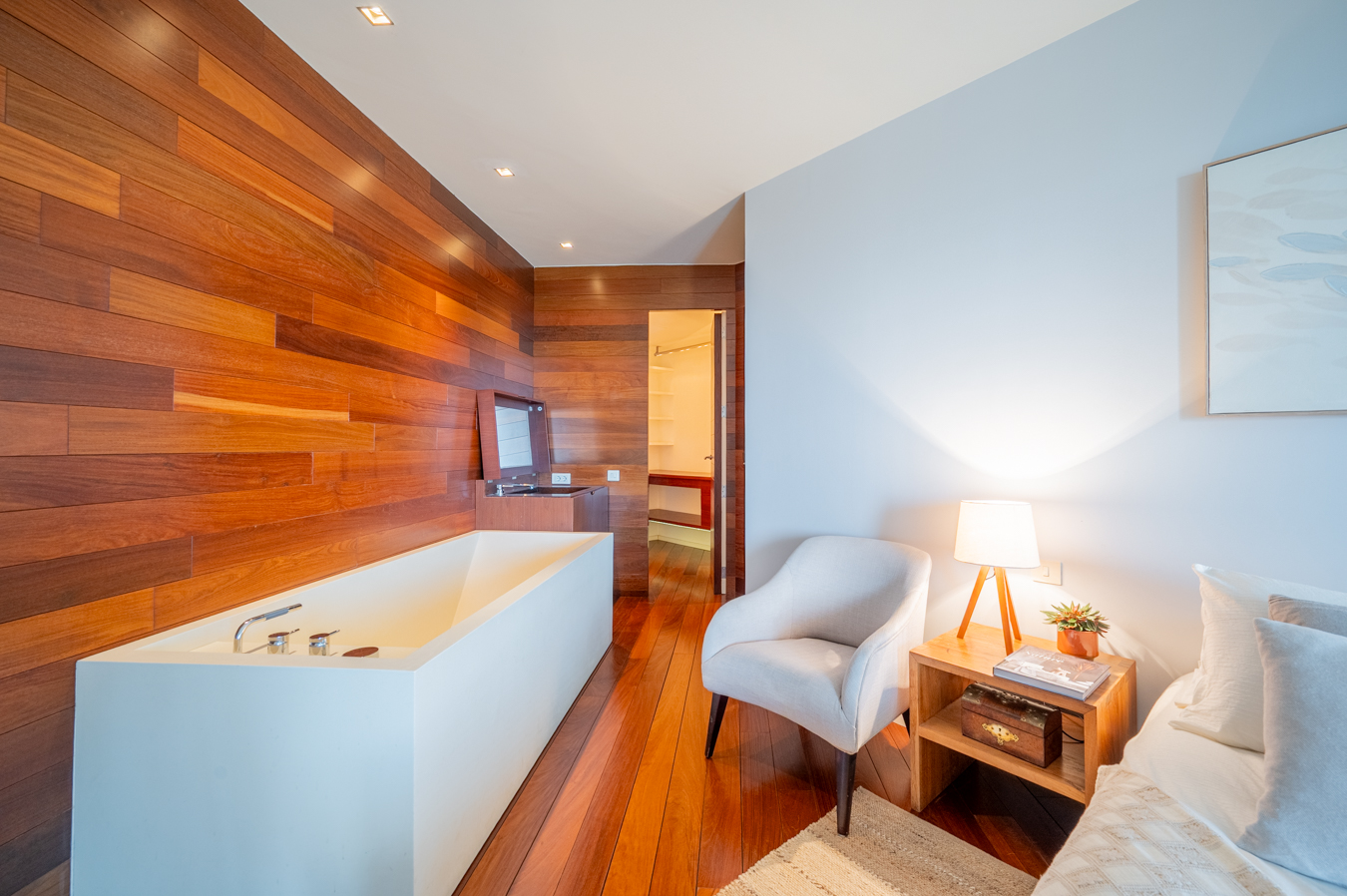 The interior of the property has been designed with top quality materials and finishings, guaranteeing elegance and distinction. It is equipped with Indonesian wooden parquet flooring and ducted hot/cold air conditioning. It also includes a home cinema entertainment system with state-of-the-art projector, retractable screen and professional sound system.
