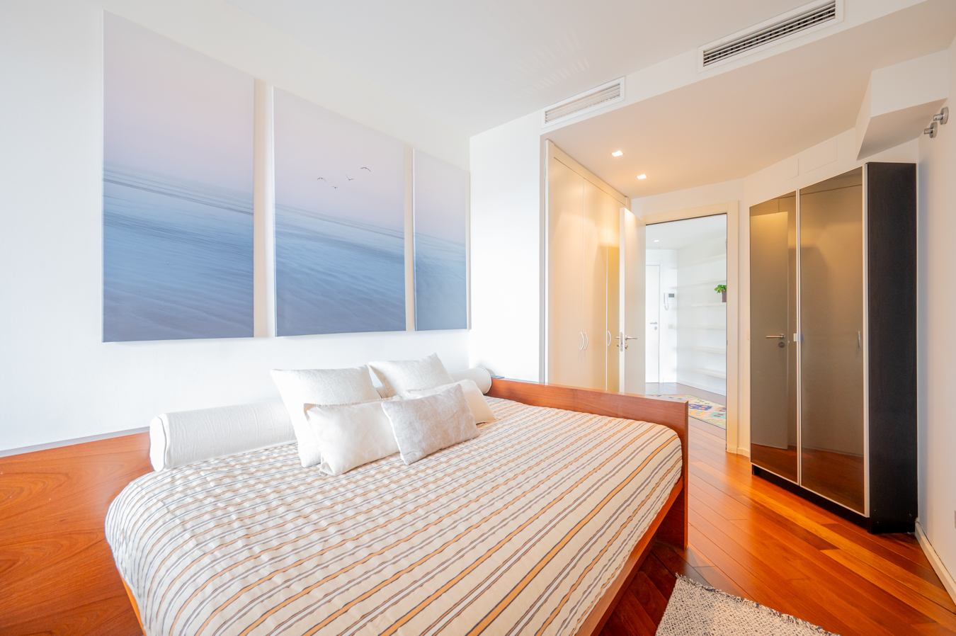 The flat is located in the modern neighbourhood of Diagonal Mar, an exceptional environment where luxury buildings and tranquillity coexist with beaches and green areas. In the surrounding area there is a large shopping centre, numerous services, restaurants and shops, metro line 4 and the Avenida Diagonal tramway, which also ensures a quick connection by car with the rest of the city.