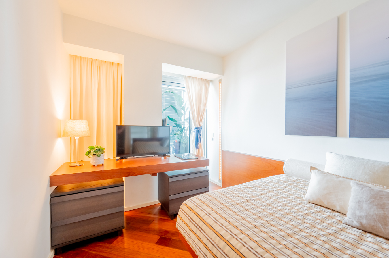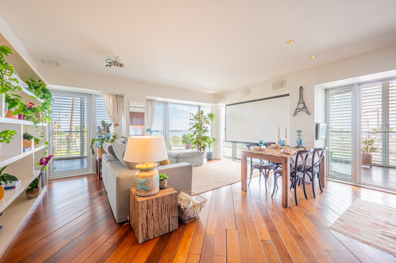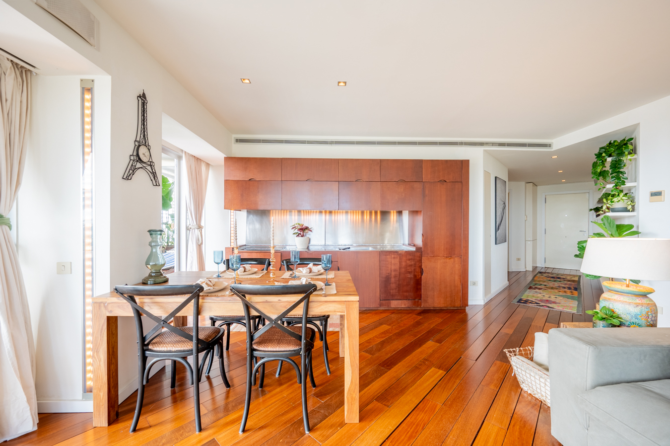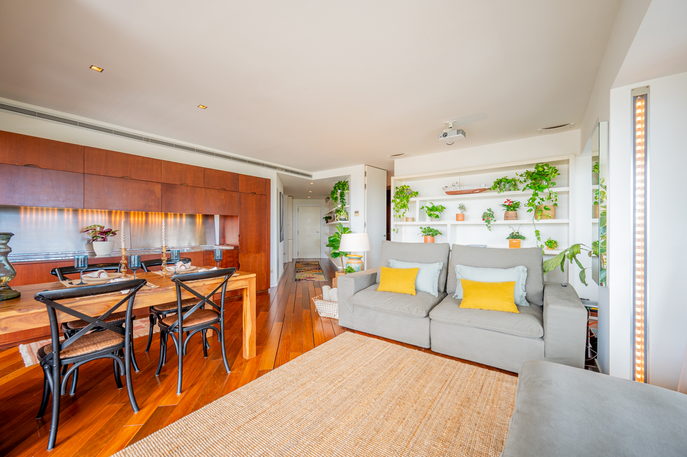 The jewel of this flat is the terrace that surrounds the entire exterior. Its large 56 sqm surface area allows you to create various ambiences, from a chill-out area to enjoy with friends, a dining area to enjoy your meals outdoors and a relaxation area with hammocks to escape in Barcelona’s pleasant climate all year round.