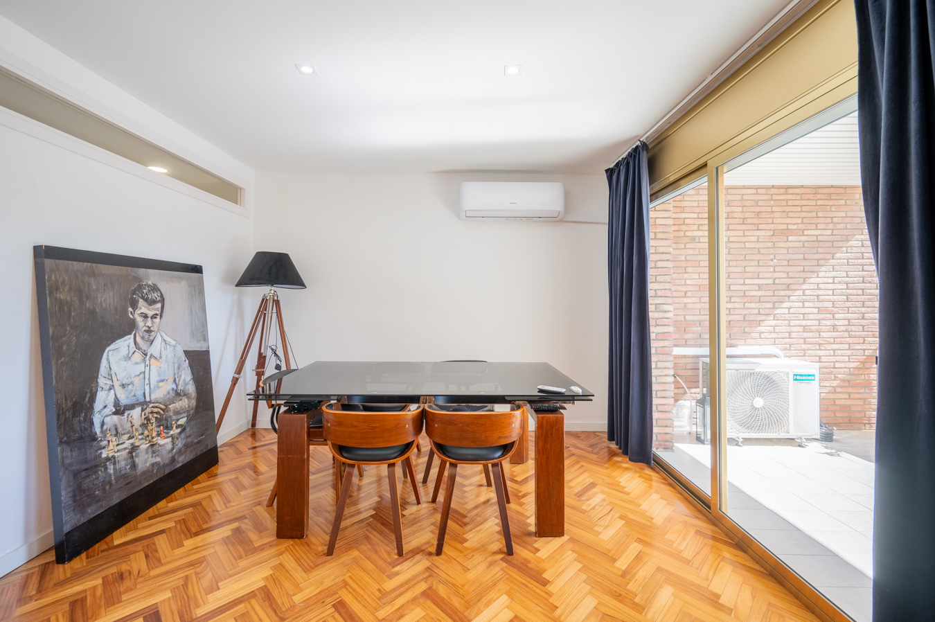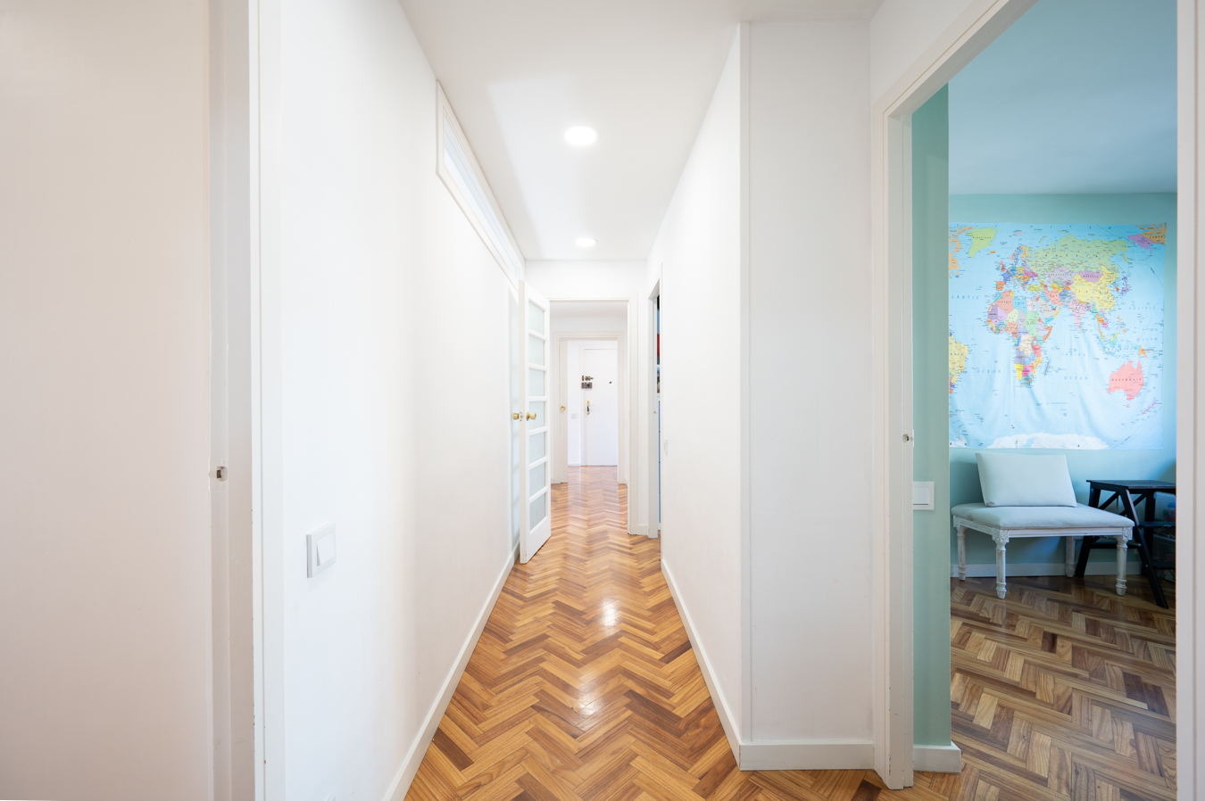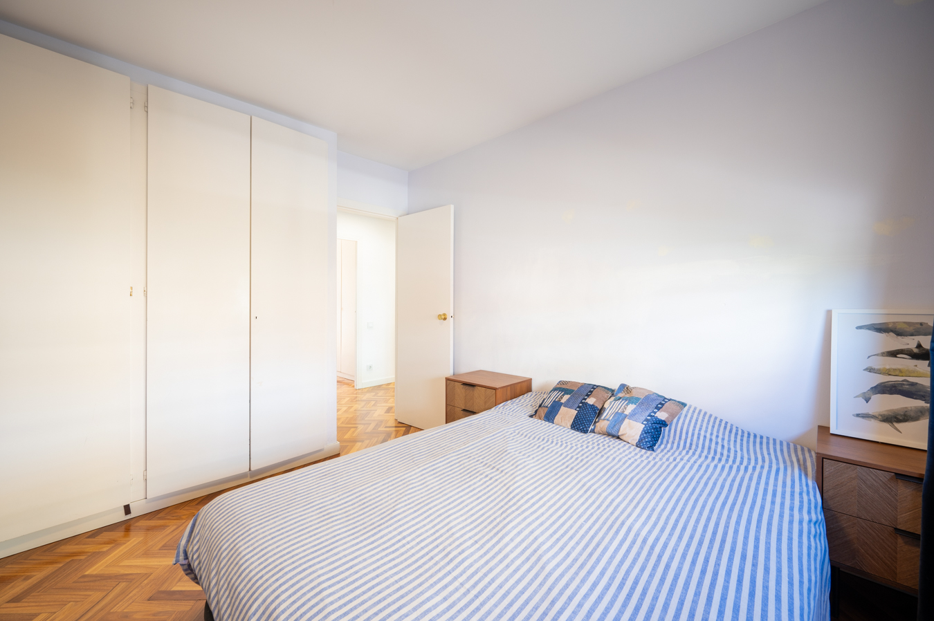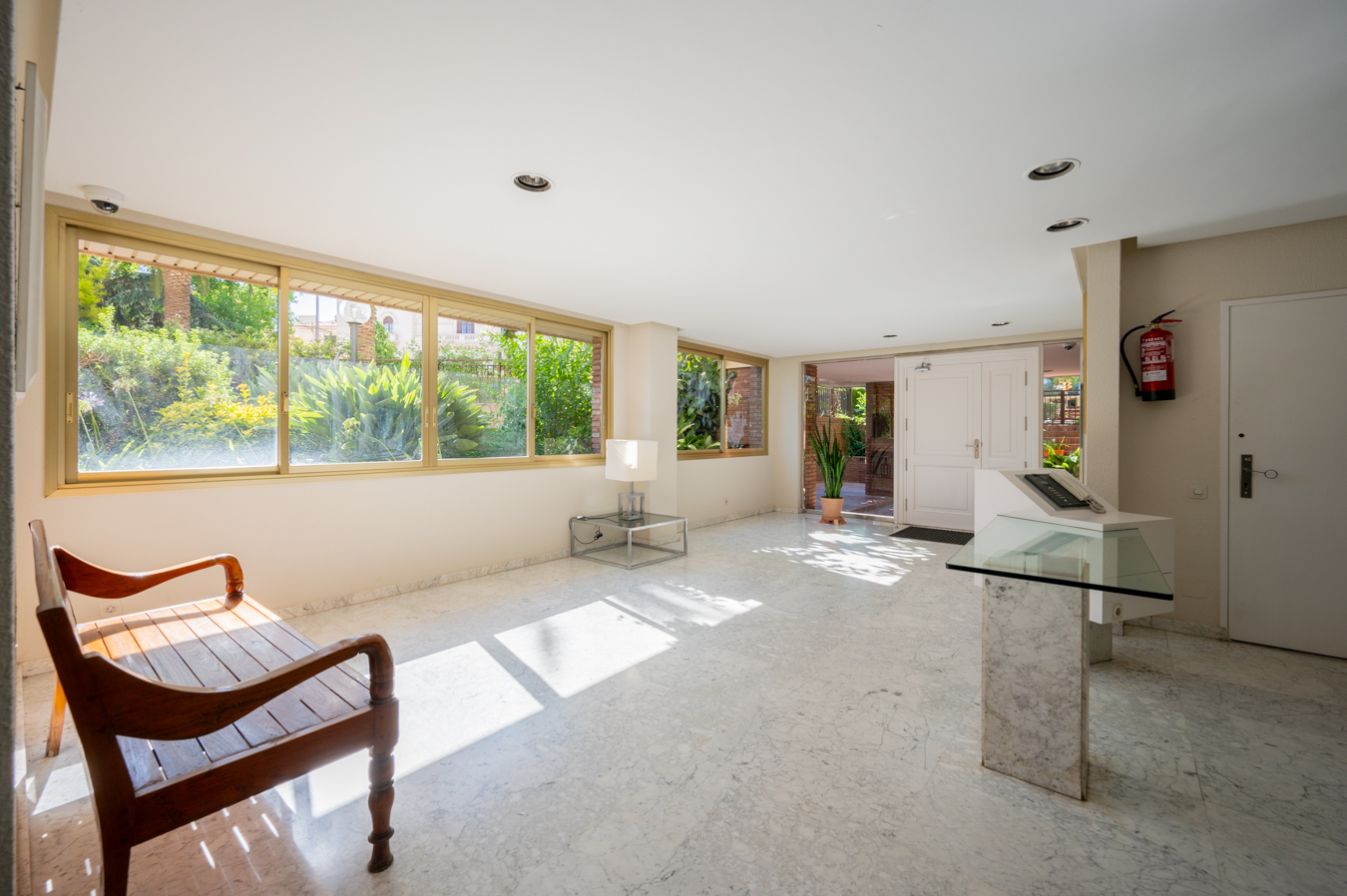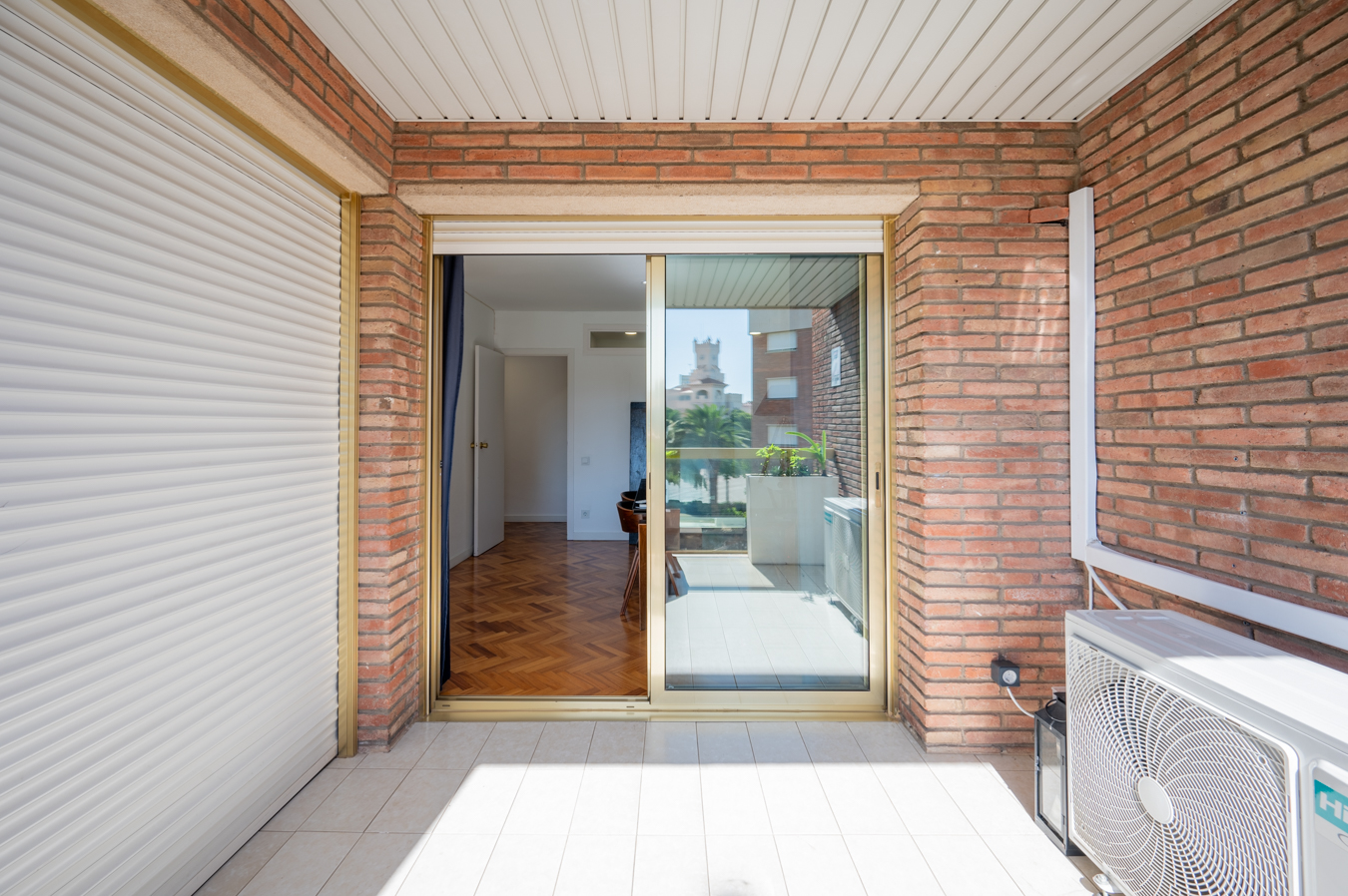 The flat was modernised 4 years ago, refurbishing the kitchen and bathrooms with high quality finishes. It’s equipped with herringbone parquet floors, high capacity air conditioning, newly installed electric boiler and electric blinds. The community of neighbours is very cosy and friendly, with only 8 neighbours, and the communal area is shared with 2 other blocks.