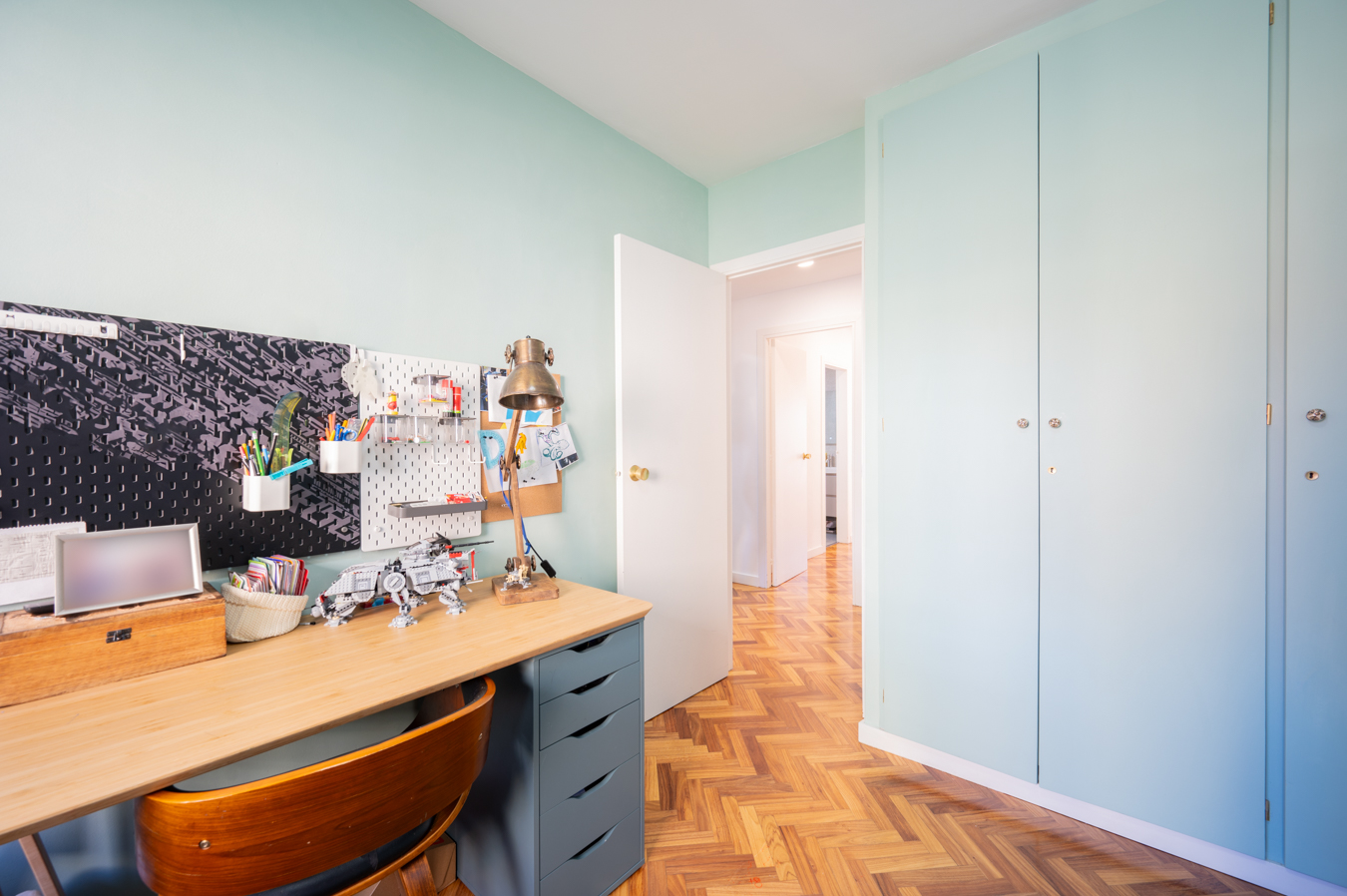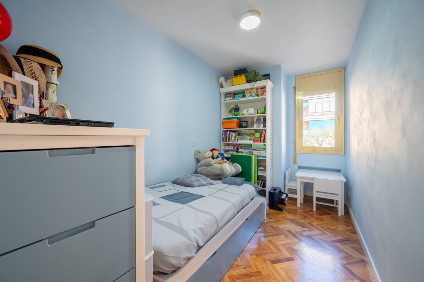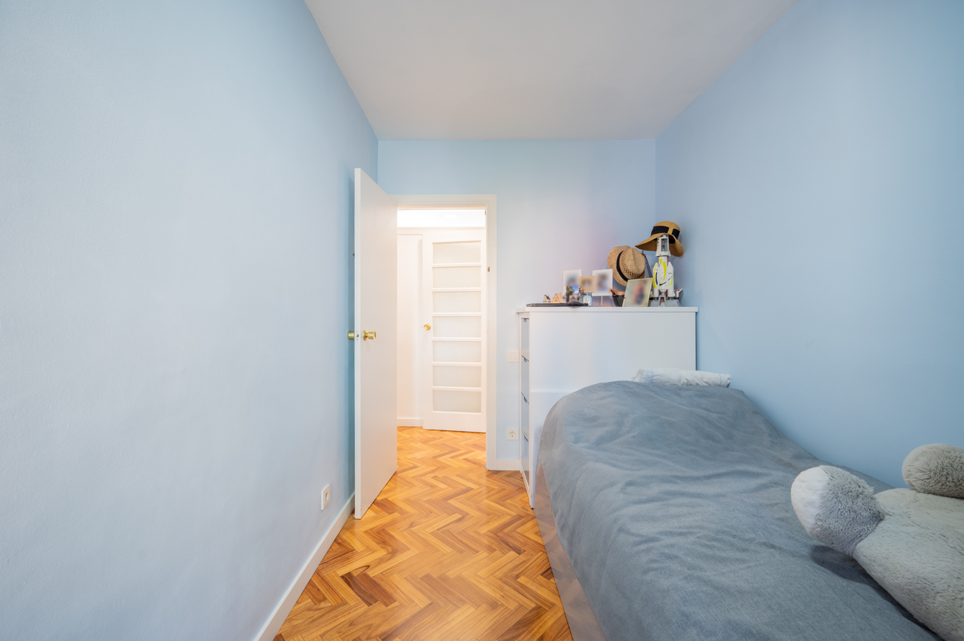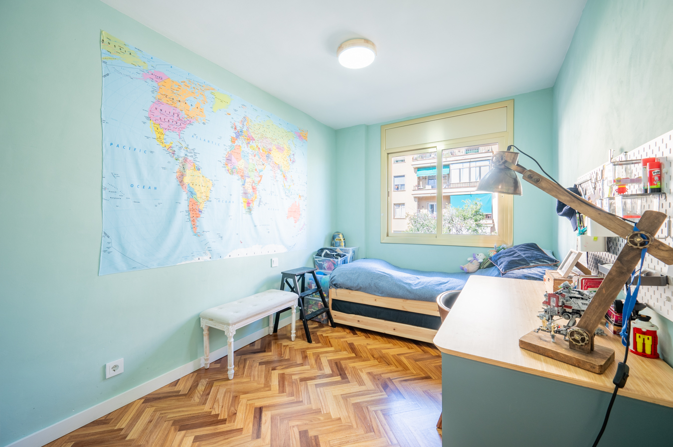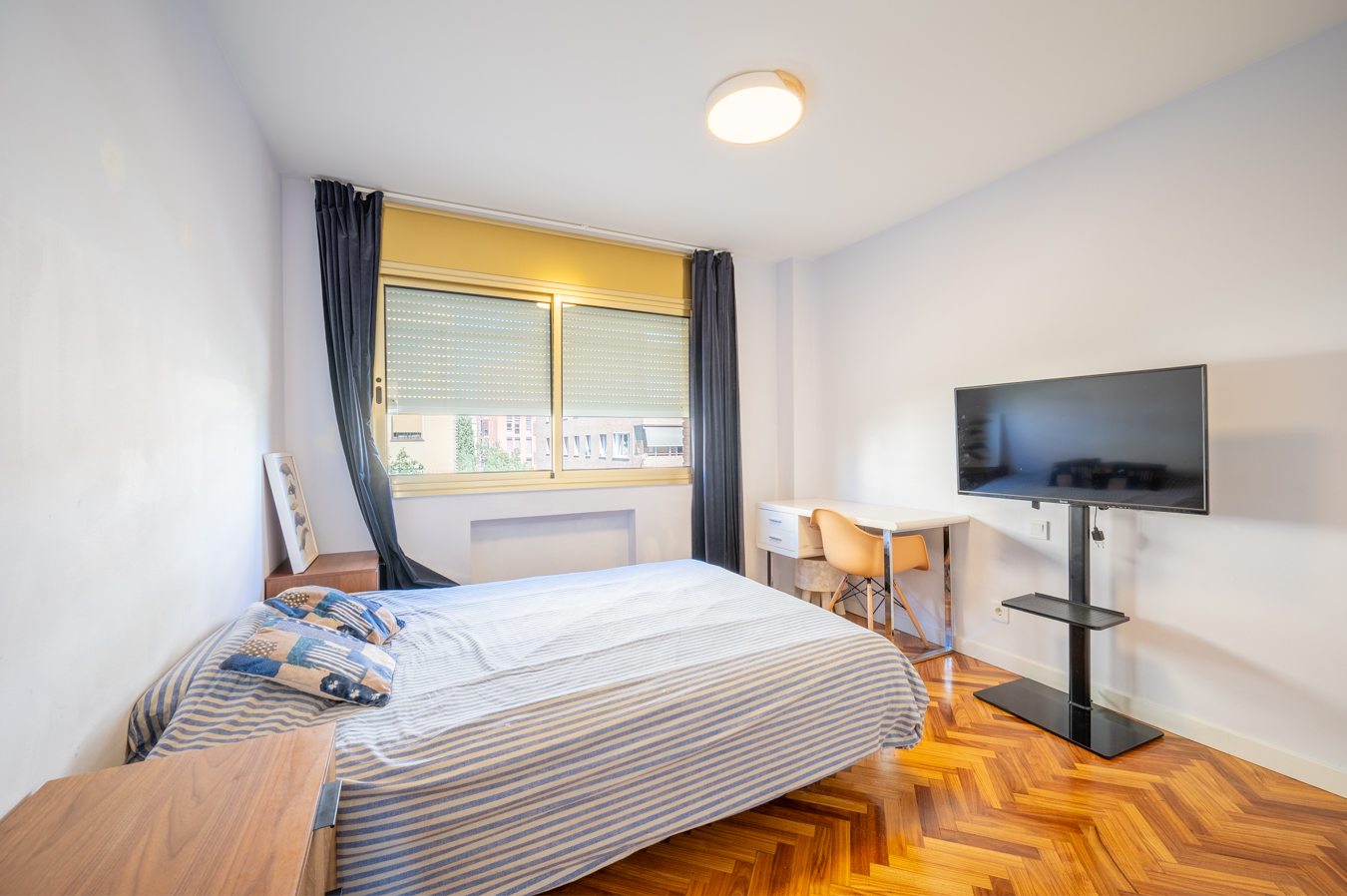 The flat was modernised 4 years ago, refurbishing the kitchen and bathrooms with high quality finishes. It’s equipped with herringbone parquet floors, high capacity air conditioning, newly installed electric boiler and electric blinds. The community of neighbours is very cosy and friendly, with only 8 neighbours, and the communal area is shared with 2 other blocks.
