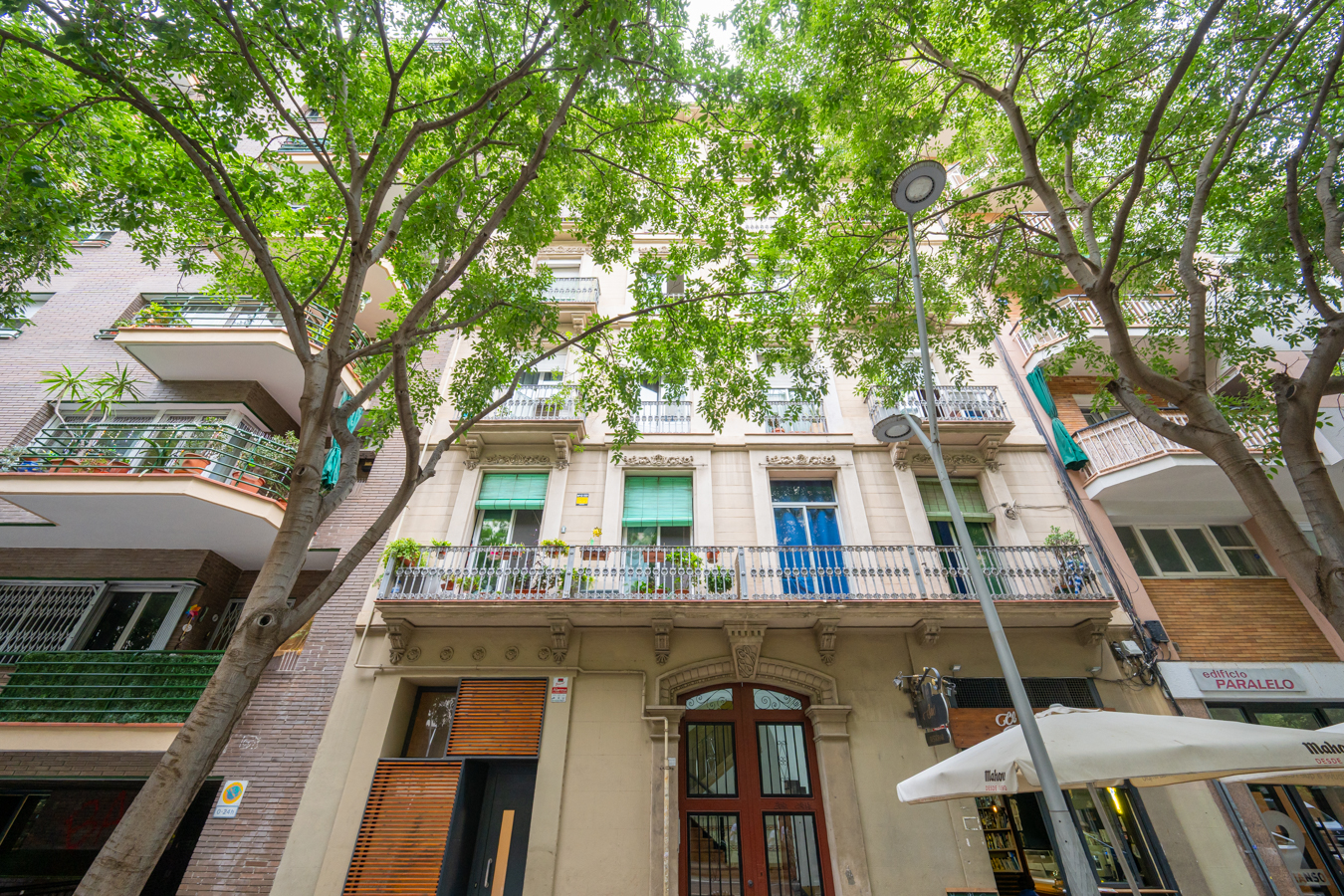 This property is unique in Poble-sec: an exclusive duplex with a separate street-level entrance that combines historic character with contemporary comfort in a listed, stately building dating from 1890, which has been fully refurbished. The property comprises 174 built interior sqm and 40 sqm across two private terraces, offering a versatile layout full of character, as it is the result of combining two properties. Its layout allows for distinct spaces and great flexibility of use, whilst maintaining a cosy and elegant atmosphere. On the ground floor, comprising 82 built interior sqm plus a 20 sqm terrace, we find the living area. Access is directly from the street via a reinforced door fitted with a video surveillance system and video intercom, ensuring a high level of security and privacy. An entrance hall leads to a fully equipped open-plan kitchen that flows into a spacious living-dining room with Catalan vaulted ceilings, lending character and authenticity. From this space, there is access to a pleasant private terrace that serves as a natural extension of the home. Here, there is a separate guest bedroom with a toilet and built-in wardrobe, ideal as an additional or utility space. This floor also features a full bathroom with a shower. The property has a private lift leading to the mezzanine and the main floor. Furthermore, the upper floor can also be accessed from the terrace via a spiral staircase. The mezzanine, measuring approximately 15 sqm, is currently used as an office and is perfect as a workspace or separate study. The main floor, comprising 77 built interior sqm plus a 20 m² terrace, houses the living area. Here you will find the master bedroom with a walk-in wardrobe and access to an external balcony, alongside a cosy living room with a fireplace that adds warmth to the atmosphere. There is also a spacious bathroom with a jacuzzi and ventilation to an internal courtyard, as well as a second double bedroom with direct access to the terrace. This floor stands out for its ceilings with original mouldings, which enhance the elegance and stately character of the property. The property has been recently renovated and is in excellent condition, combining original features such as the Catalan vaulted ceiling and wooden joinery with modern solutions. It features triple-A energy-efficient hot/cold air conditioning, its own power generator, stoneware flooring and fitted wardrobes. Located on one of the most attractive streets in Poble-sec, the property enjoys an authentic and vibrant setting, with a wide range of cultural and gastronomic offerings, and excellent connections to the centre of Barcelona. A unique property, ideal for those seeking privacy, outdoor spaces and historic character. Please do not hesitate to contact Bcn Advisors to arrange a viewing.