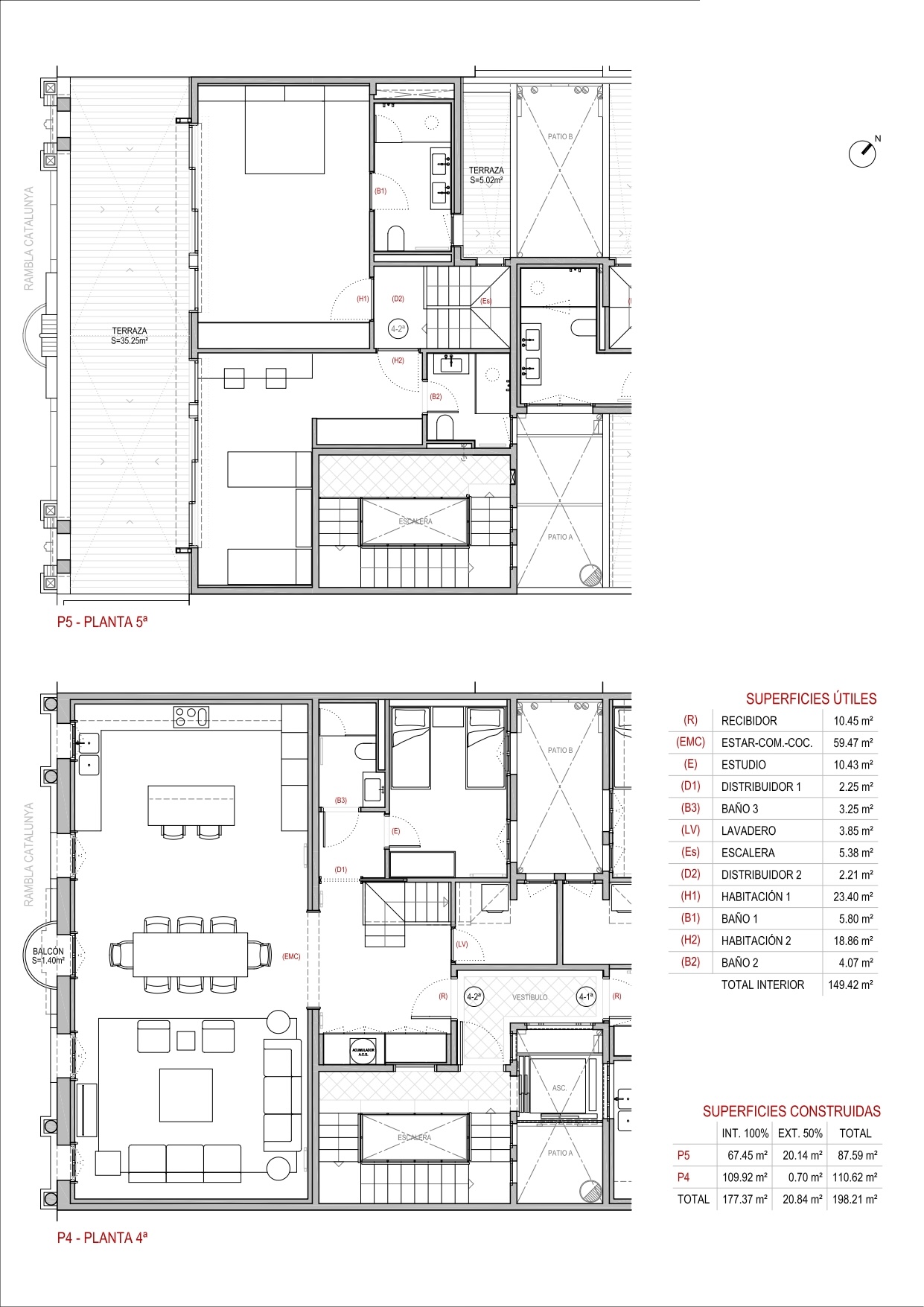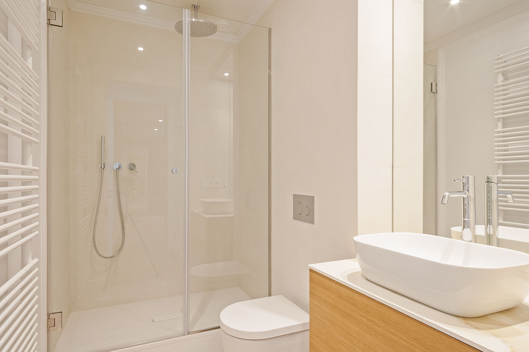 The upper floor has 67.4 built interior sqm and 2 terraces. Here we find 2 sensational en-suite bedrooms with their own bathrooms. Both have access to the jewel of this floor: a 35 m² terrace overlooking Rambla Catalunya, where you can enjoy al fresco dining, chatting with your loved ones, playing games or simply relaxing in the city’s pleasant Mediterranean climate. There is also another 5 m² interior terrace.