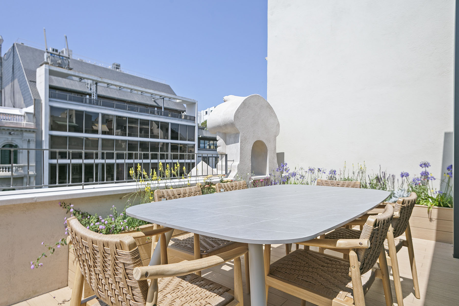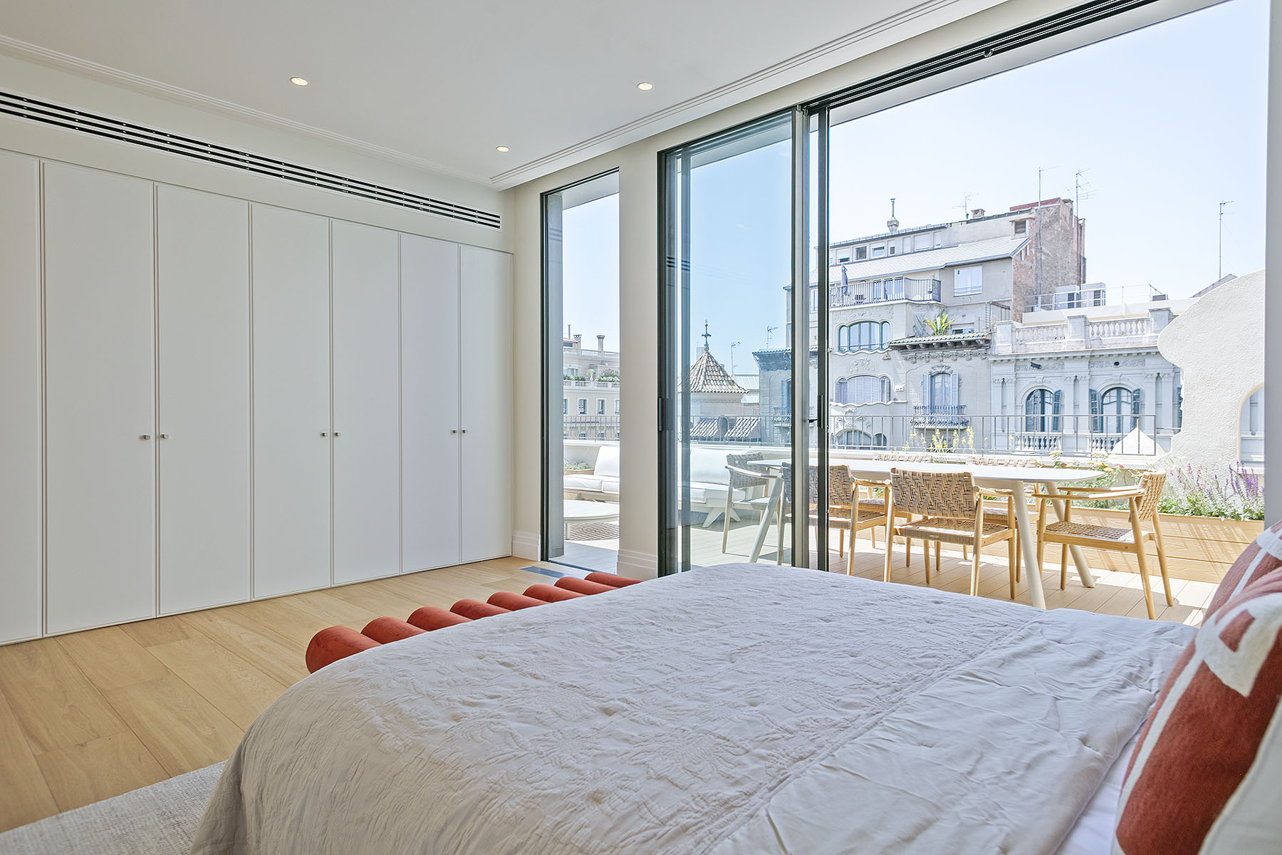 Living in this penthouse means living in a privileged area of Barcelona. The surrounding area offers a wonderful range of cultural, shopping and other services, with all the prestigious establishments and top brand boutiques of Paseo de Gracia just a few steps away. Public transport links to anywhere in the city and the metropolitan area are excellent, as are connections to the AVE high-speed train station and the airport.