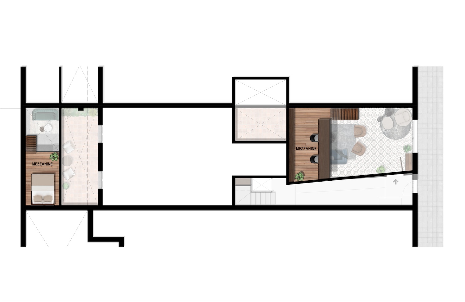With a built surface of 114.91 m², a cozy mezzanine of 10 m², and two outdoor patios — one lateral (5.66 m²) and one at the rear (11.81 m²) —, this loft stands out for its high ceilings, abundant natural light, and excellent distribution potential. The project allows for the creation of three to four bedrooms along with two full bathrooms, adapting perfectly to the needs of anyone looking for a distinctive home.