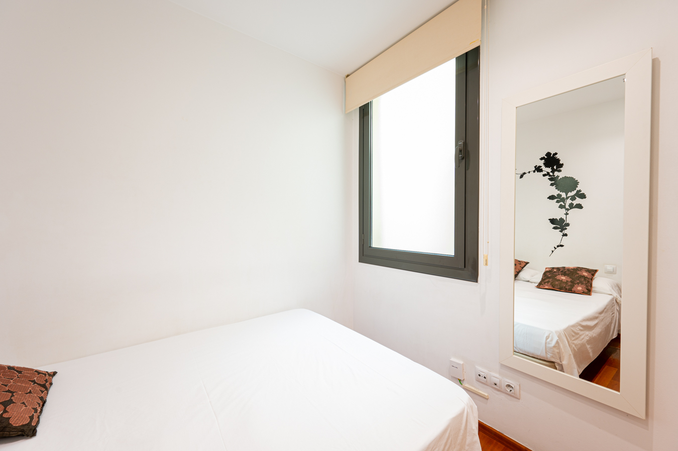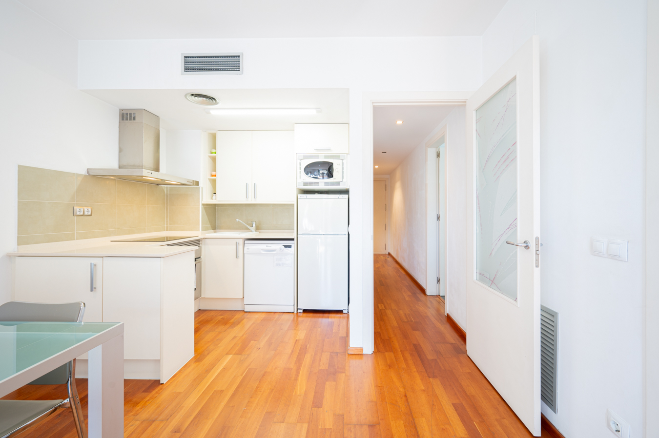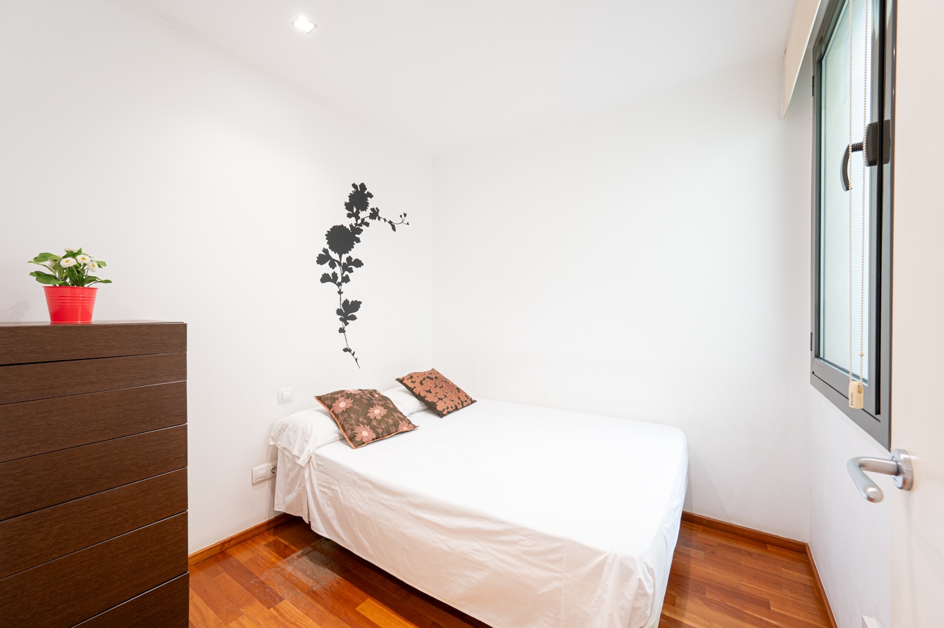 This flat is in a building from 2020 with only 10 apartments, just a few metres from the city center, Plaza Catalunya, Plaza Universitat, Las Ramblas and Ronda Sant Antoni. It enjoys an enviable location in the centre of Barcelona, with all kinds of shops, services and public transport nearby. This flat is on the first floor of the building and has 65 built interior sqm and a 9 sqm patio. It includes a storage room in the basement of the building. The living-dining room is spacious and bright, with integrated kitchen and exit to the pleasant patio, ideal to have a drink outdoors. The sleeping area consists of a double bedroom and a single bedroom, both facing the street, and a bathroom. The second bedroom can be a support to the living-dining room, or be converted into a more private space for reading, working, music, dressing room... The living room and the bedrooms have large floor-to-ceiling windows that give spaciousness and let in natural light. The building's installations are designed for comfort and the optimisation of resources and sustainability. Domestic hot water production, underfloor heating and air conditioning control are supplied through ducts, which are linked to an aerothermal system, with electricity and water being the only supplies. The property also has a home automation system that is controlled via a Gira touchscreen, which incorporates a video entry system and exterior cameras on the roof. The kitchen is equipped with Bosch appliances, including an integrated washer-dryer. The building has a lift and a communal rooftop solarium terrace. Do not hesitate to contact Bcn Advisors to visit this flat.