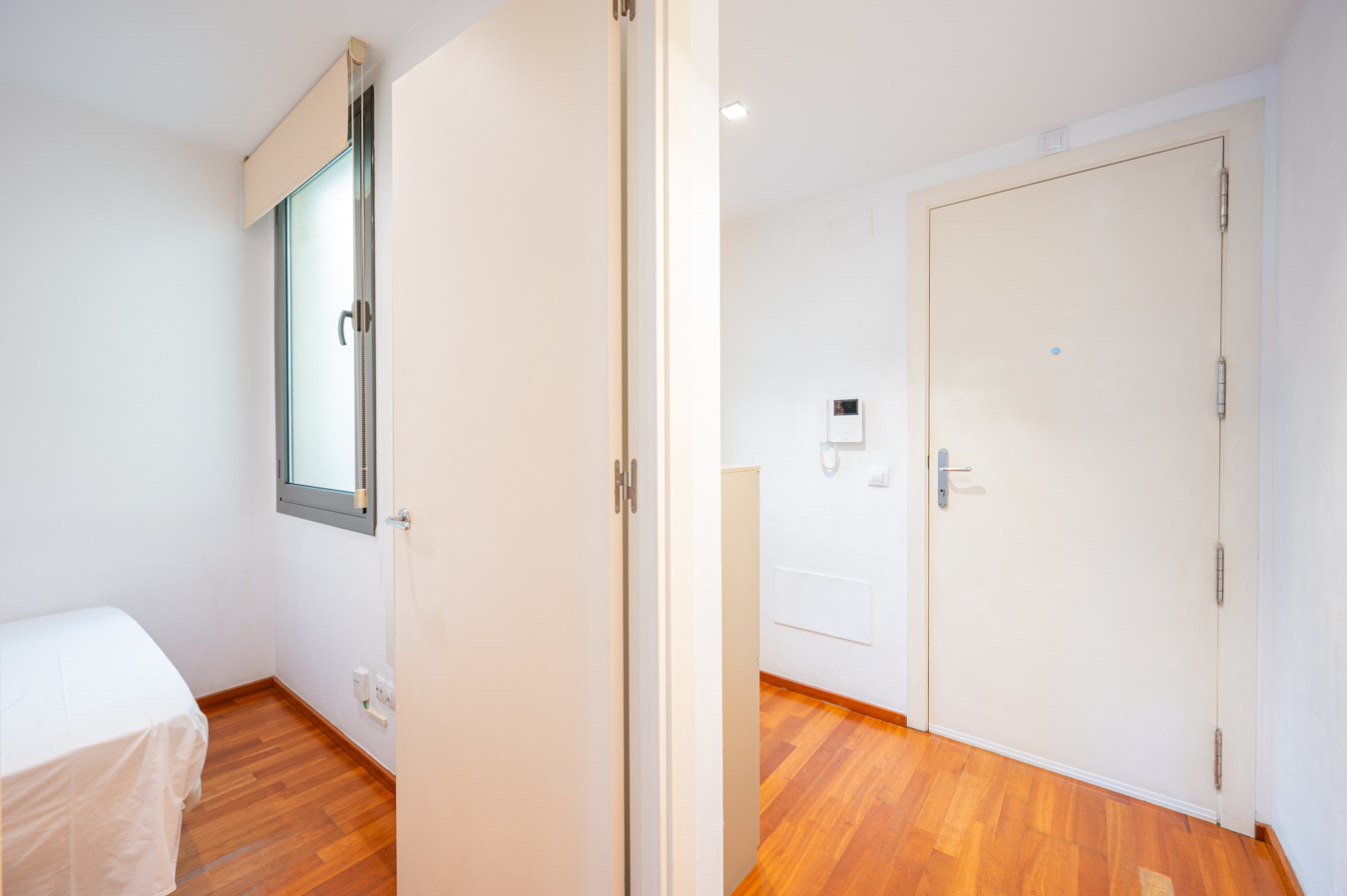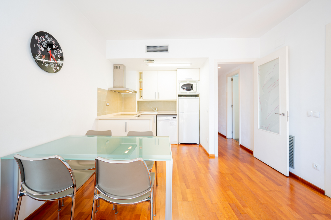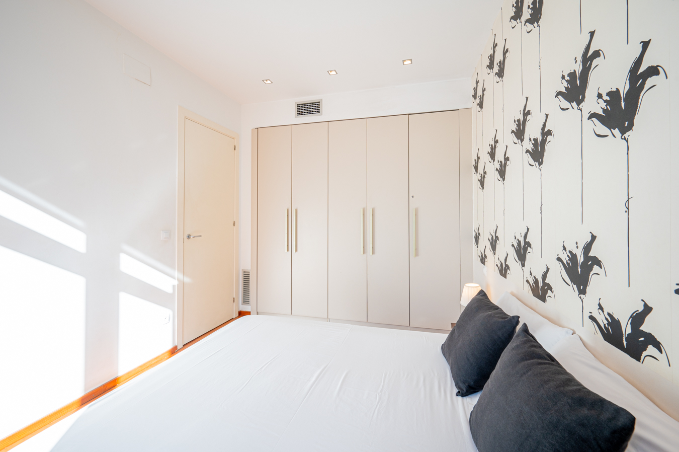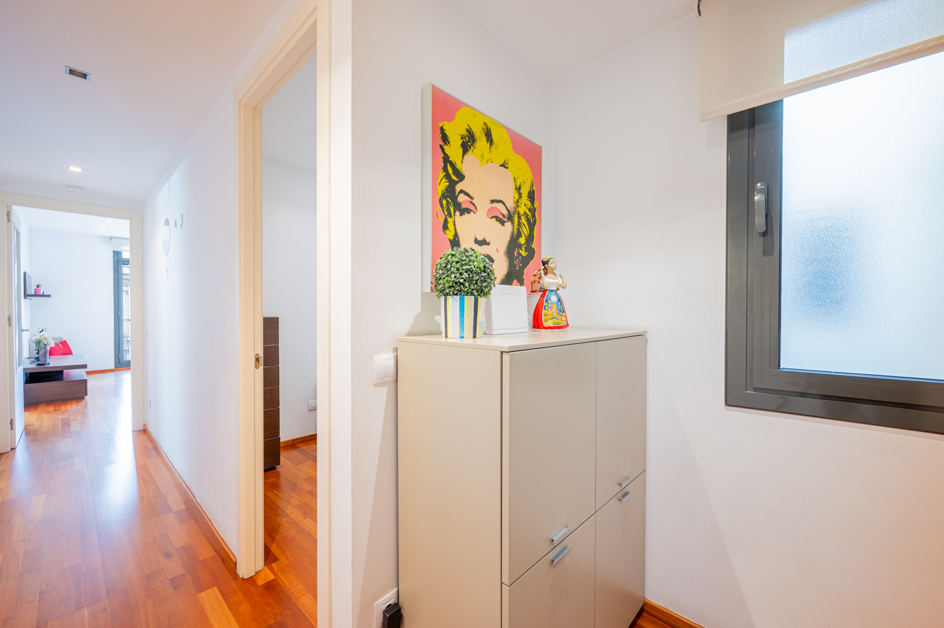 This flat is in a building from 2020 with only 10 apartments, just a few metres from the city center, Plaza Catalunya, Plaza Universitat, Las Ramblas and Ronda Sant Antoni. It enjoys an enviable location in the centre of Barcelona, with all kinds of shops, services and public transport nearby. This flat is on the first floor of the building and has 65 built interior sqm and a 9 sqm patio. It includes a storage room in the basement of the building. The living-dining room is spacious and bright, with integrated kitchen and exit to the pleasant patio, ideal to have a drink outdoors. The sleeping area consists of a double bedroom and a single bedroom, both facing the street, and a bathroom. The second bedroom can be a support to the living-dining room, or be converted into a more private space for reading, working, music, dressing room... The living room and the bedrooms have large floor-to-ceiling windows that give spaciousness and let in natural light. The building's installations are designed for comfort and the optimisation of resources and sustainability. Domestic hot water production, underfloor heating and air conditioning control are supplied through ducts, which are linked to an aerothermal system, with electricity and water being the only supplies. The property also has a home automation system that is controlled via a Gira touchscreen, which incorporates a video entry system and exterior cameras on the roof. The kitchen is equipped with Bosch appliances, including an integrated washer-dryer. The building has a lift and a communal rooftop solarium terrace. Do not hesitate to contact Bcn Advisors to visit this flat.