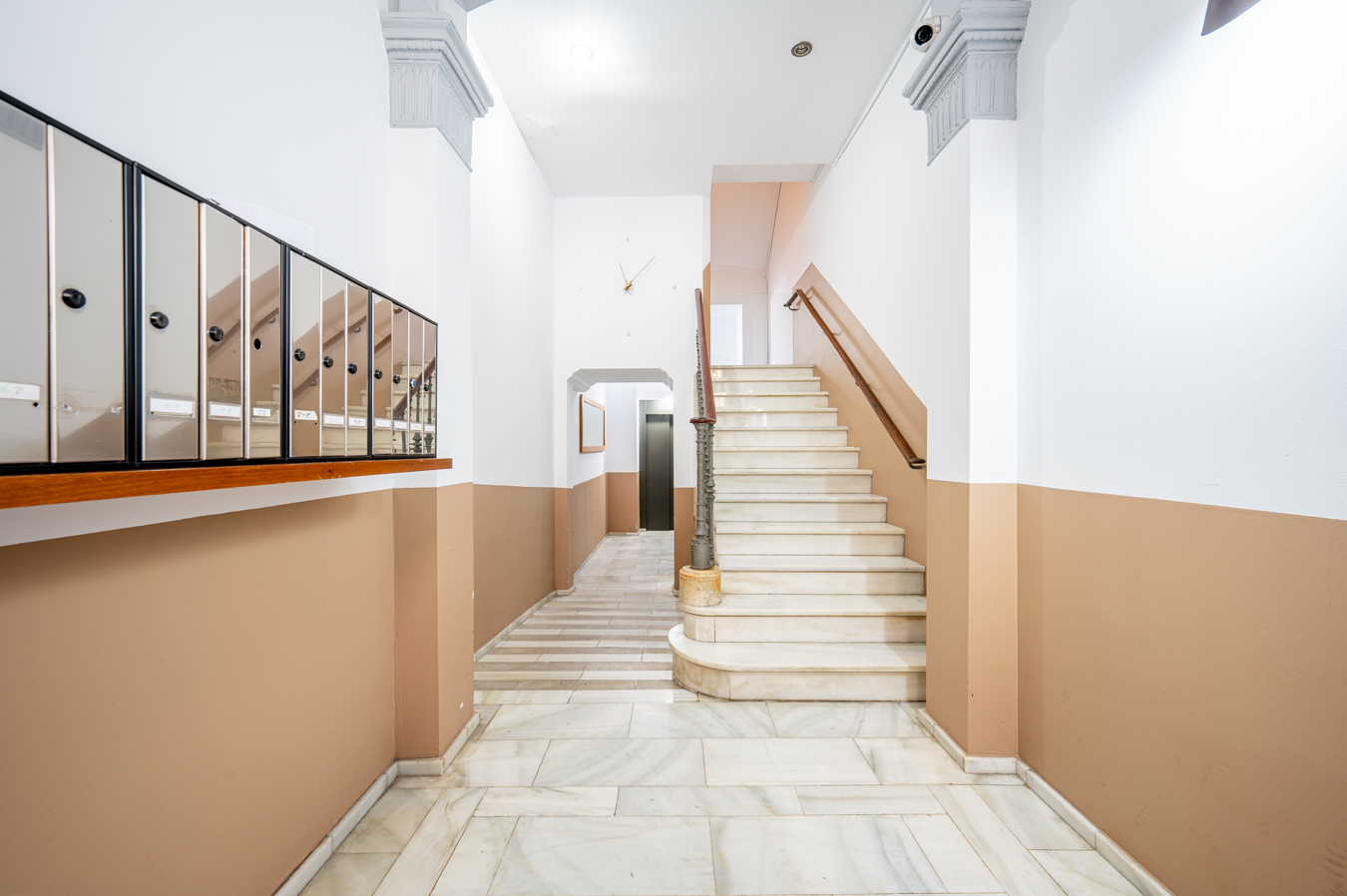 The property has 58,5 built interior sqm and 2 balconies that add up to 2 sqm. It’s on the real fifth floor of a regal estate building with a lift. The living-dining room with open kitchen is very bright and has access to a balcony with pleasant views of the city and its renowned architecture.