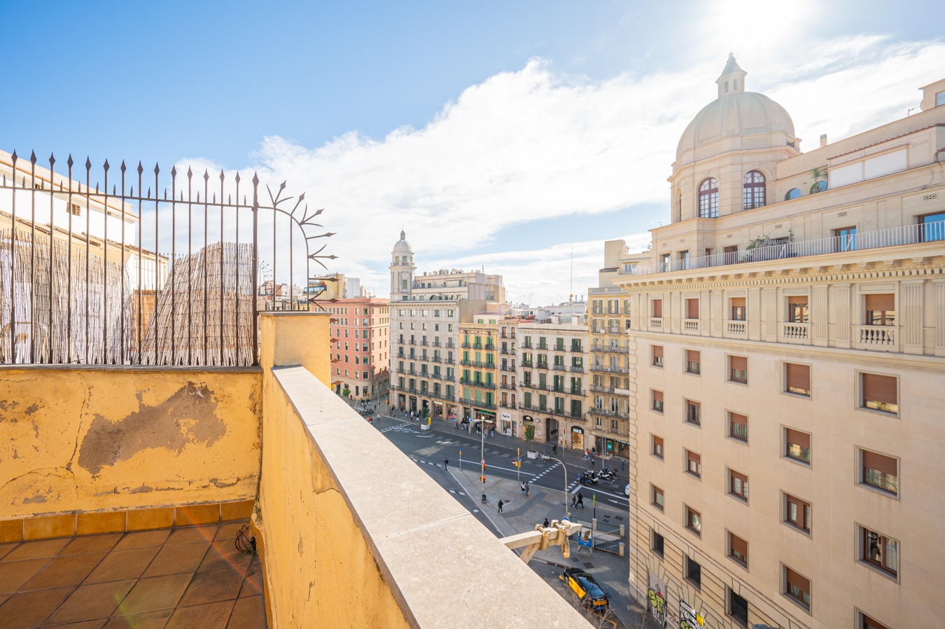 This fabulous penthouse in a building with a lift stands out for its spacious and sunny terraces with breathtaking 360º views of the whole city and great calmness. They are the perfect place to relax, eat or meet outdoors and enjoy Barcelona's pleasant weather all year round. In addition, it's only a 15-minute walk from the city centre, an enviable location. The property has 56 sqm according to the Cadastre, a 100 sqm terrace on the same level and a private 50 sqm solarium terrace on the upper floor. It has a living room, a kitchen equipped with household appliances and a dining area, a bedroom and a bathroom. The penthouse has been refurbished and maintains the Catalan vault on the ceiling as a charming traditional touch. It has a 6 sqm storage room. It's equipped with parquet floors and ducted hot/cold air conditioning. It is on the real 6th floor of a historic building with lift. This penthouse is located in the historic centre of Barcelona, very close to the Rambla del Raval, the Ronda de Sant Antoni and the Liceu theatre. The area has all the shops and services for the day, as well as a perfect connection with the rest of the city by public transport. Moreover, you will be able to enjoy the advantages of both the Eixample and the city centre just a few steps away. Do not hesitate to contact us to visit this penthouse.