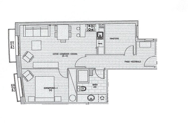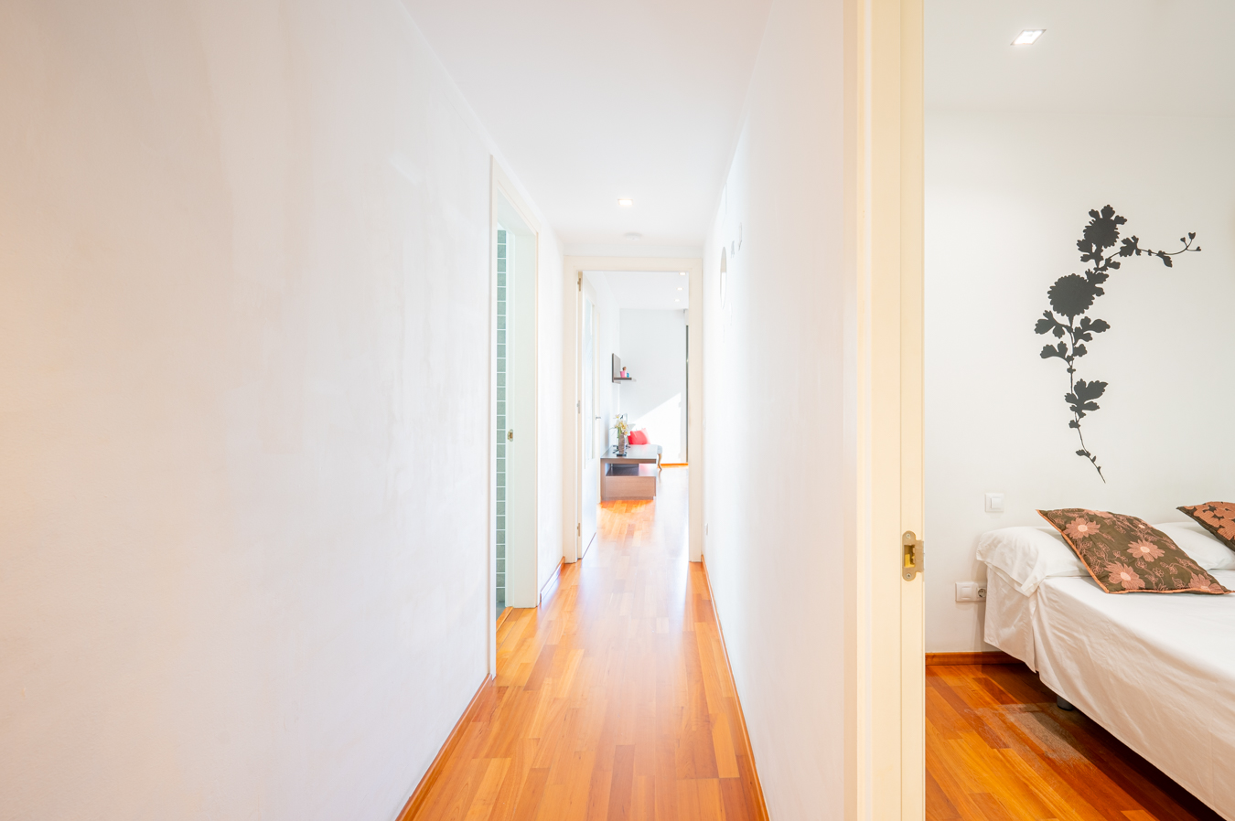 The flat has 2 double bedrooms. The main bedroom is exterior to the street with a balcony and has a built-in wardrobe, while the other one is interior.