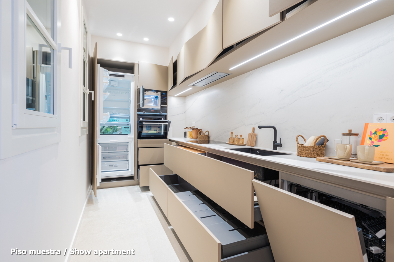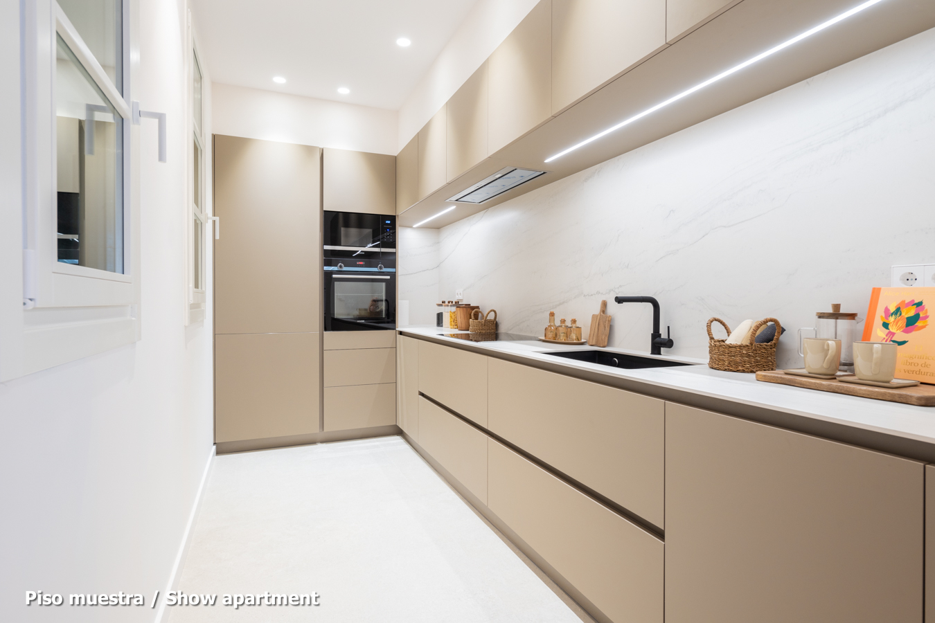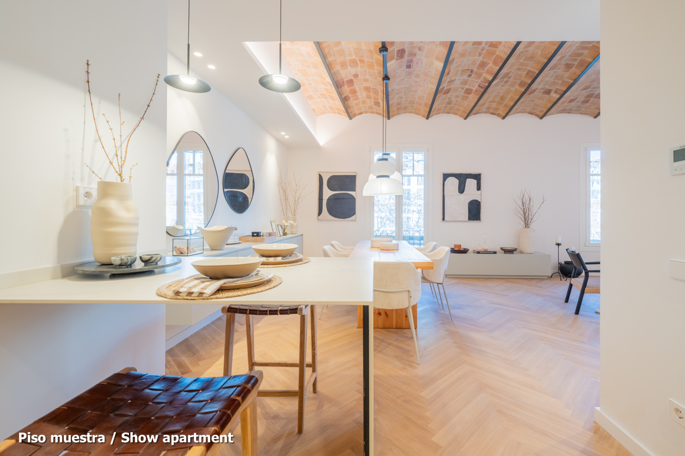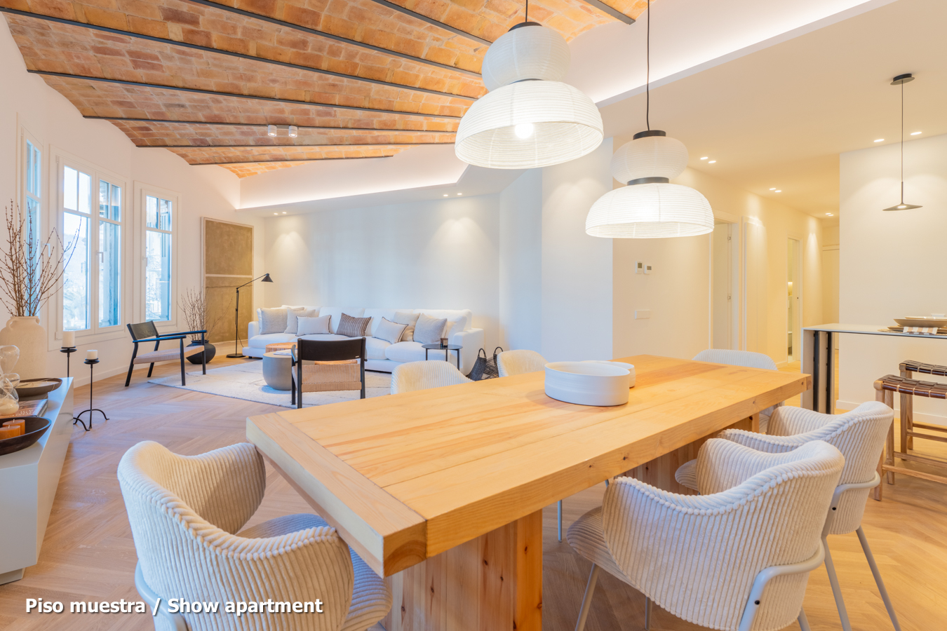 The flat, which is scheduled to be completed in the last quarter of 2024 and handed over in the first quarter of 2025, will have the highest quality materials and finishings, as well as an interior design with attention to detail that will combine the classic elements of the regal estate buildings with the most modern. Large spaces and brightness will be important, achieving a balance between traditional elements such as the restored Catalan vaulted ceilings and the comfort and amenities of a new building: underfloor heating and hot-cold air conditioning powered by aerothermics (the latest technology in air conditioning systems that produces energy savings of between 60% and 70% compared to conventional systems), top-of-the-range Siemens appliances, natural wood parquet floors, entrance door with security lock, built-in wardrobes, porcelain tiling on the bathroom walls, Italian designer taps, LED lighting, fibre optic connection, Internet and TV signal sockets, etc.
