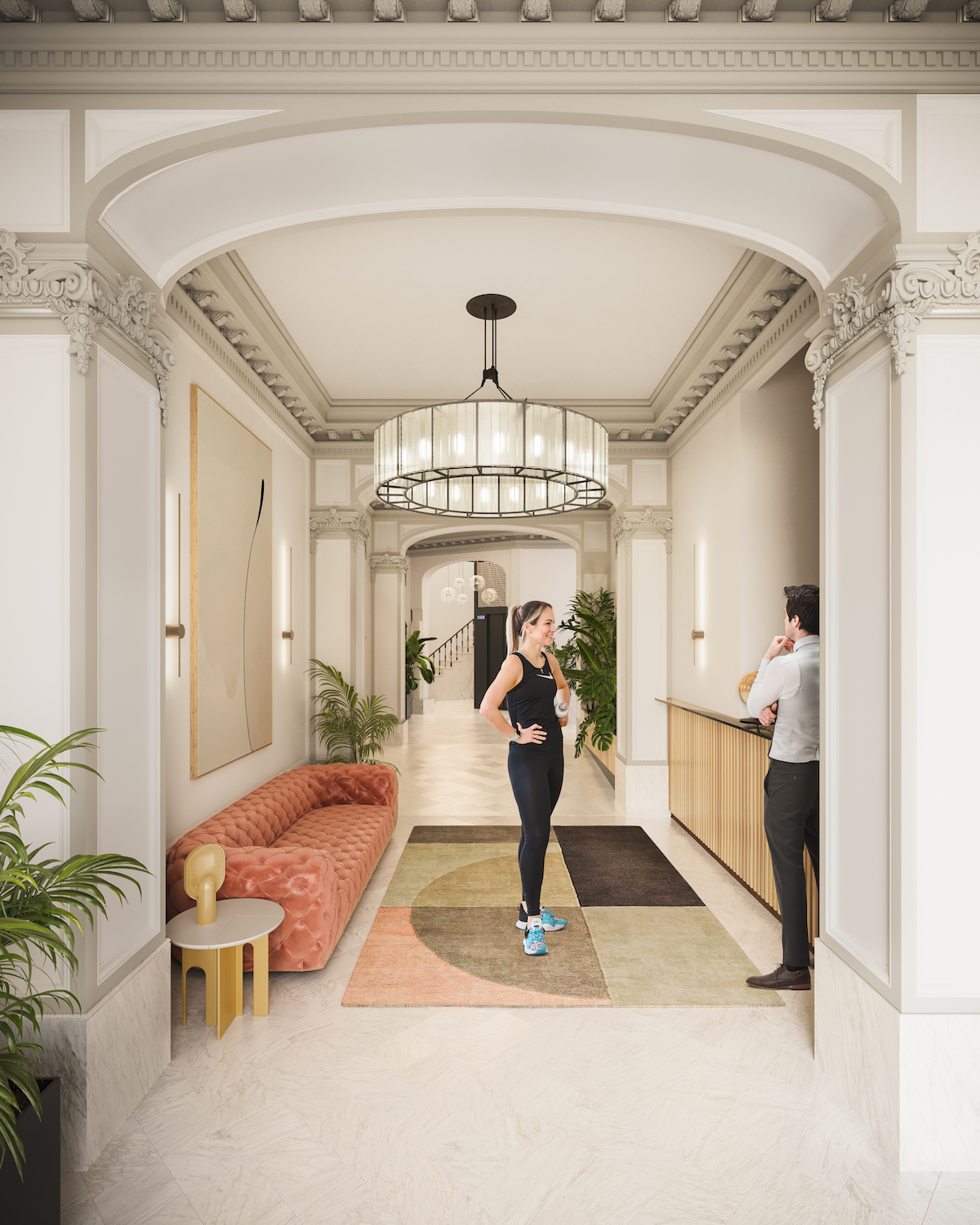 The building, which will be fully refurbished, will have 2 lifts (the original one restored respecting its wooden cabin with a new mechanism and a completely new one), a concierge, an area for charging electric bicycles and a private modernist-vintage style gym with Catalan vault, hydraulic floors and a full bathroom.