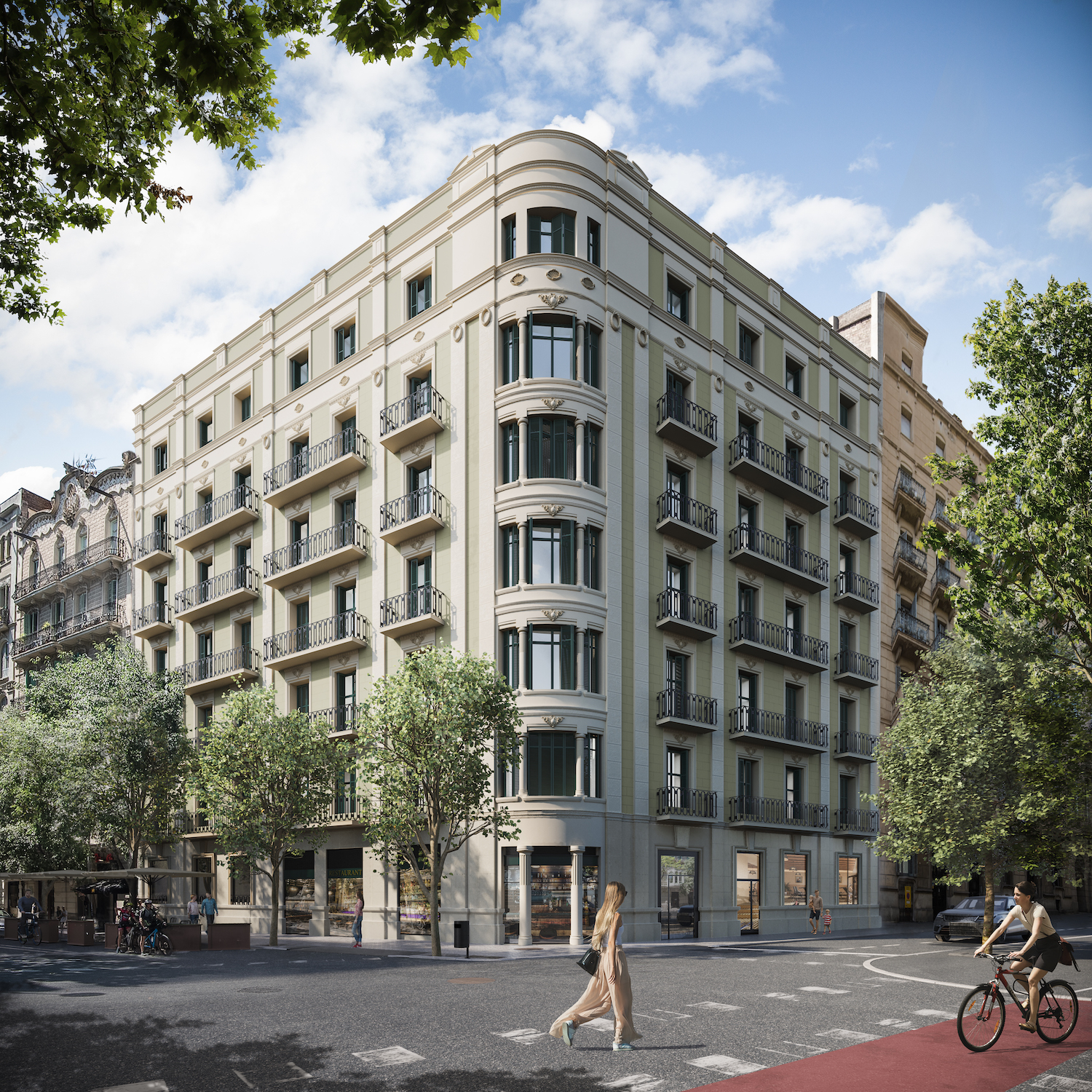 This fantastic property has an excellent location in Barcelona and is part of a comprehensive refurbishment project in a 1910 regal estate building with exclusive luxury flats. The building is on the corner of Carrer Girona, which is already being transformed into a pedestrian street and the works are practically finished, and Avenida Diagonal, which is being transformed into a boulevard-type avenue with a large pedestrian area, green areas and bicycle lanes, significantly reducing car traffic. You will be able to enjoy the best of Barcelona in an incomparable setting: in the heart of Eixample, very close to Paseo de Gracia, the city centre and countless shops and services. This property is located on the second real floor. It has 69 built interior sqm and two balconies totalling 3.25 sqm. As it is a corner building, it offers great natural light, which is atypical in the area, and unique views with a lot of depth. An entrance hall gives way to the entrance hall, which leads us to the cosy 31 sqm living-dining room with open plan kitchen, which is very bright and has a balcony facing the street. There's also a separate utility room. The night area has a double bedroom with dressing room and a separate bathroom. The property has the highest quality materials and finishings, as well as an interior design that will combine the classic elements of the regal estate buildings with the most modern. Large spaces and luminosity are important, achieving a balance between traditional elements such as the restored Catalan vaulted ceilings and the comfort and amenities of a new building: underfloor heating, hot and cold air conditioning powered by aerothermics (the latest technology in air conditioning systems that produces energy savings of between 60% and 70% compared to conventional systems), top-of-the-range electrical appliances, natural wood floors, entrance door with security lock, built-in wardrobes, porcelain tiling on the bathroom walls, LED lighting, fibre optic connection, Internet and TV signal sockets, etc. The building, which has been fully refurbished, has 2 lifts (the original one restored respecting its wooden cabin with a new mechanism and a completely new one), a concierge, an area for charging electric bicycles and a private modernist-vintage style gym with 2 toilets. The extensive main façade of the building, as well as the numerous inner courtyards and the rear façade, provide the building with outstanding light and ventilation. The unusual distance to the buildings parallel to the façade further enhances the feeling and perception of spaciousness. As it is a modernist estate with extraordinary historical value, the interior design team has prioritised the recovery of some of the original elements. For example, there has been a complete restoration and rehabilitation of the modernist stuccoes of the staircase core; and in the independent vestibules there will be hydraulic mosaic tiles recovered to maintain the historical value of the property. The exterior joinery has also been replaced with wooden windows and balconies with thermal break and laminated insulating glass. Please do not hesitate to contact Bcn Advisors to arrange a viewing of this flat.