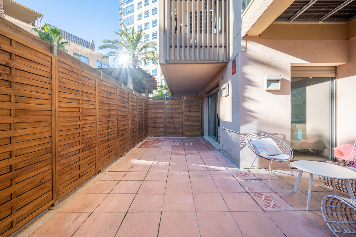 This sensational flat has a fantastic 65 sqm private terrace and is located in a building with a communal pool, so you can enjoy the outdoors without having to leave home. It's located next to Parc de la Ciutadella and a 20-minute walk from the beach, an ideal setting for enjoying nature in Barcelona. The property has 83.5 built interior sqm and 2 bedrooms. It's on the first floor of a building with a lift. It's very quiet and peaceful, as it overlooks the interior courtyard between buildings. An entrance hall welcomes us and leads directly to the living area, which is a spacious living-dining room with an open-plan kitchen. The living room has direct access to the terrace, the oerfect place to eat, meet or relax outdoors. Currently, there's a 25 sqm shed installed here, included in the price. It is very practical as an additional room, office, games room or even a guest room. It has its own WC, air conditioning and laundry/storage area. Through a door on the terrace, a ramp leads to the communal area of the building, with a terrace and communal swimming pool to enjoy on summer days. The night area has a double bedroom with en-suite bathroom and access to the terrace, a double bedroom overlooking the terrace and a separate bathroom. Both bedrooms have fitted wardrobes. The flat includes furniture and household appliances, and is equipped with parquet flooring, ducted air conditioning and radiator heating. Optionally, a parking space for a car, a space for a motorbike and a storage room can be purchased in the same building. The building was completely refurbished in 2008. This property is surrounded by green areas and the surrounding area has all the shops and services you need for your daily life. It is also close to the Arc de Triomf train and underground station for quick connections to anywhere in the city. Please do not hesitate to contact Bcn Advisors to view this flat.