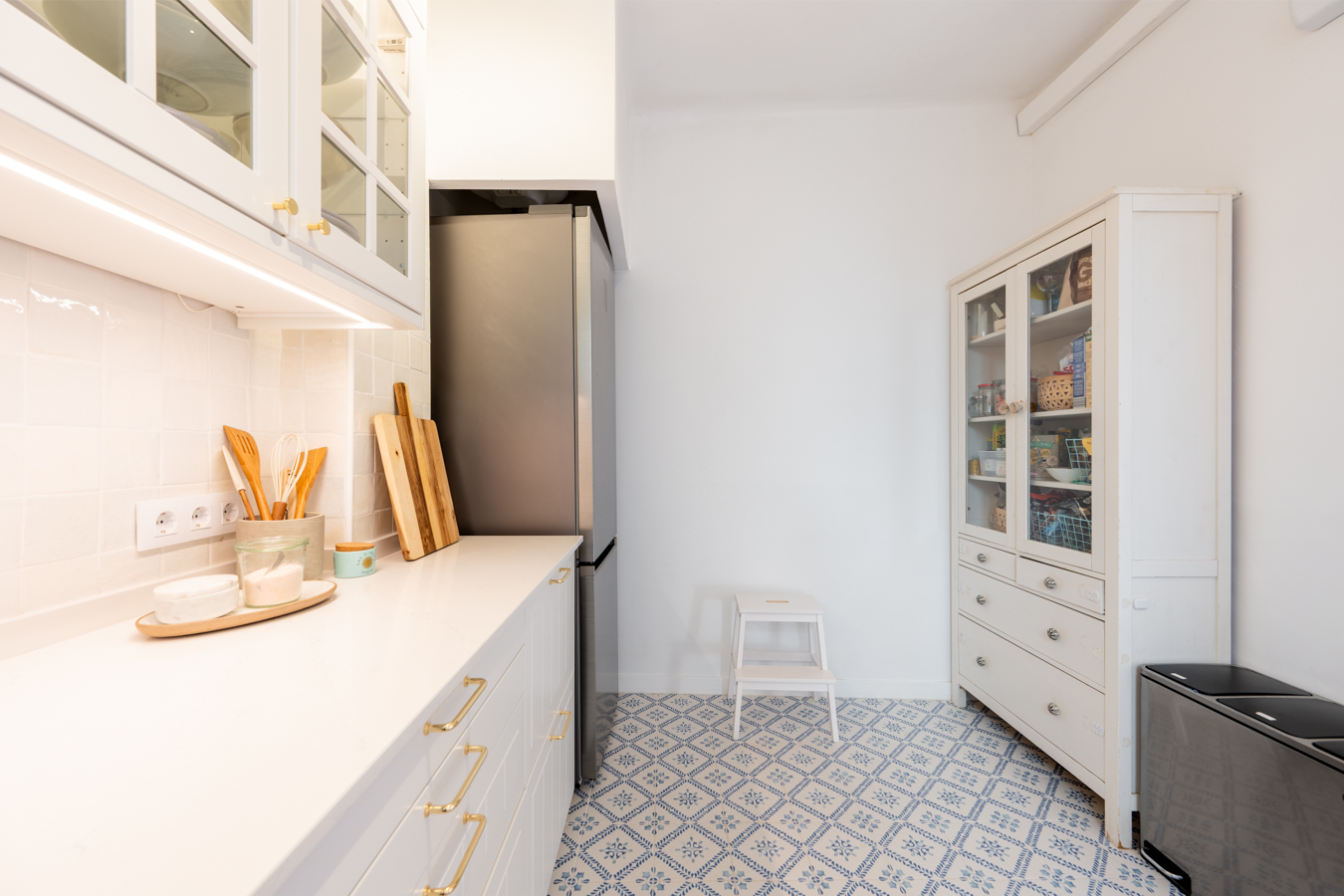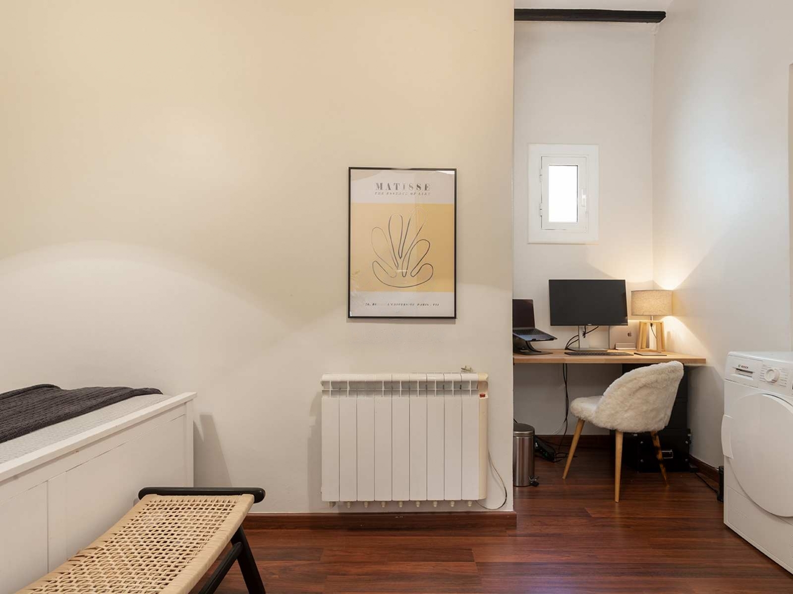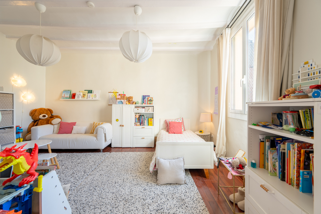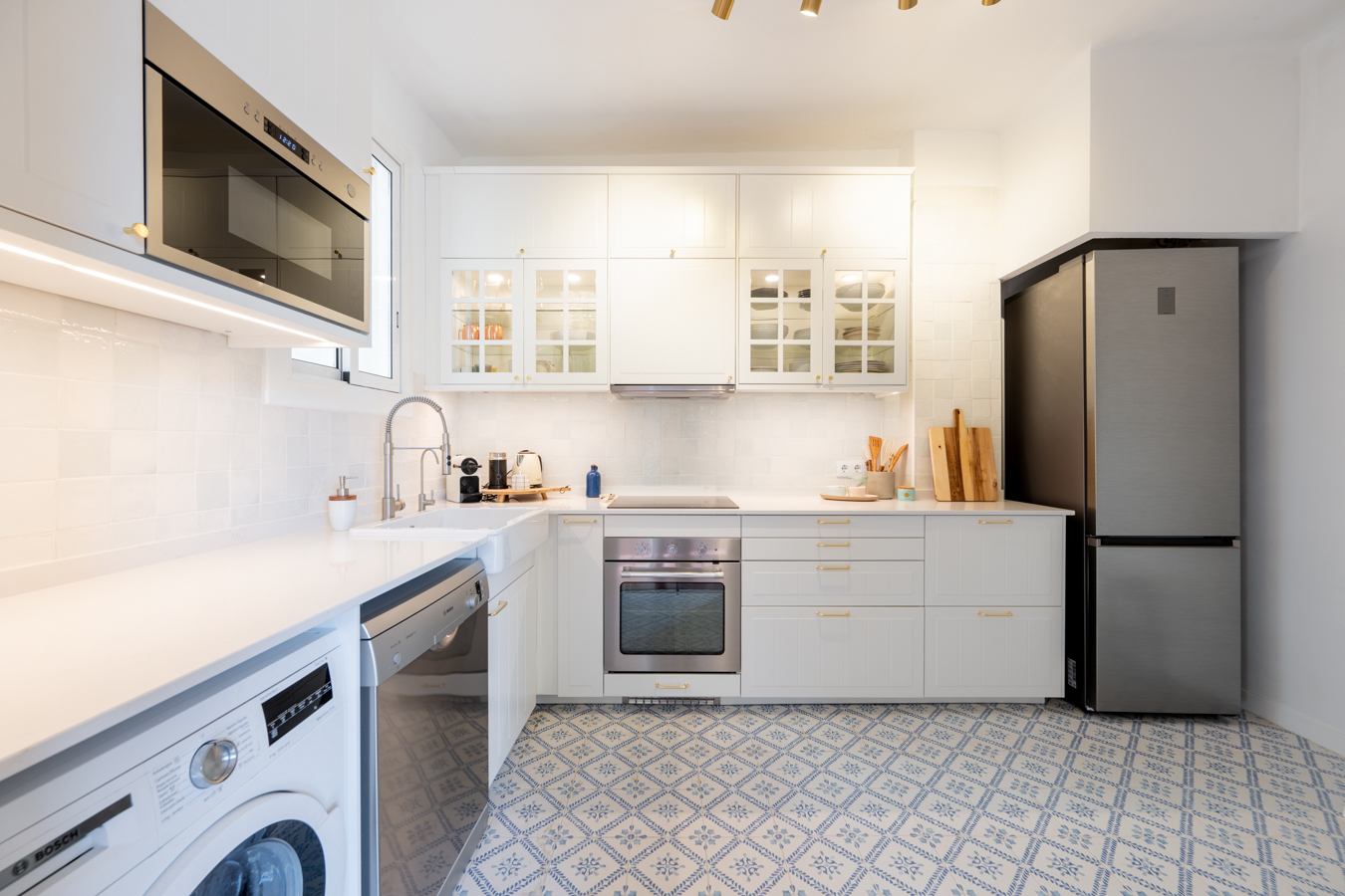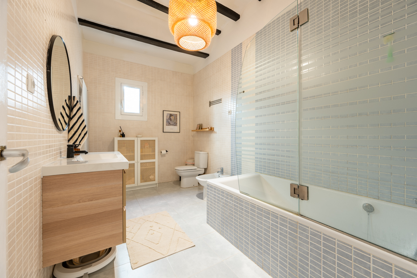 The renovation was designed around a single concept: open the space, let the light flow, and create a rare sense of volume in the heart of El Born. The high Catalan vaulted ceilings pay tribute to Barcelona’s architectural heritage, while the open-plan layout creates a warm, contemporary atmosphere.