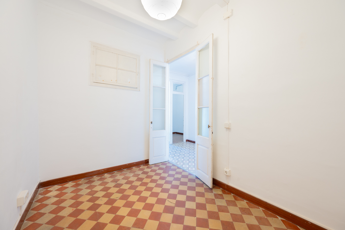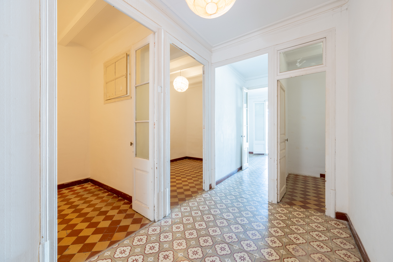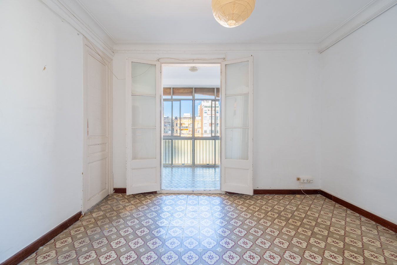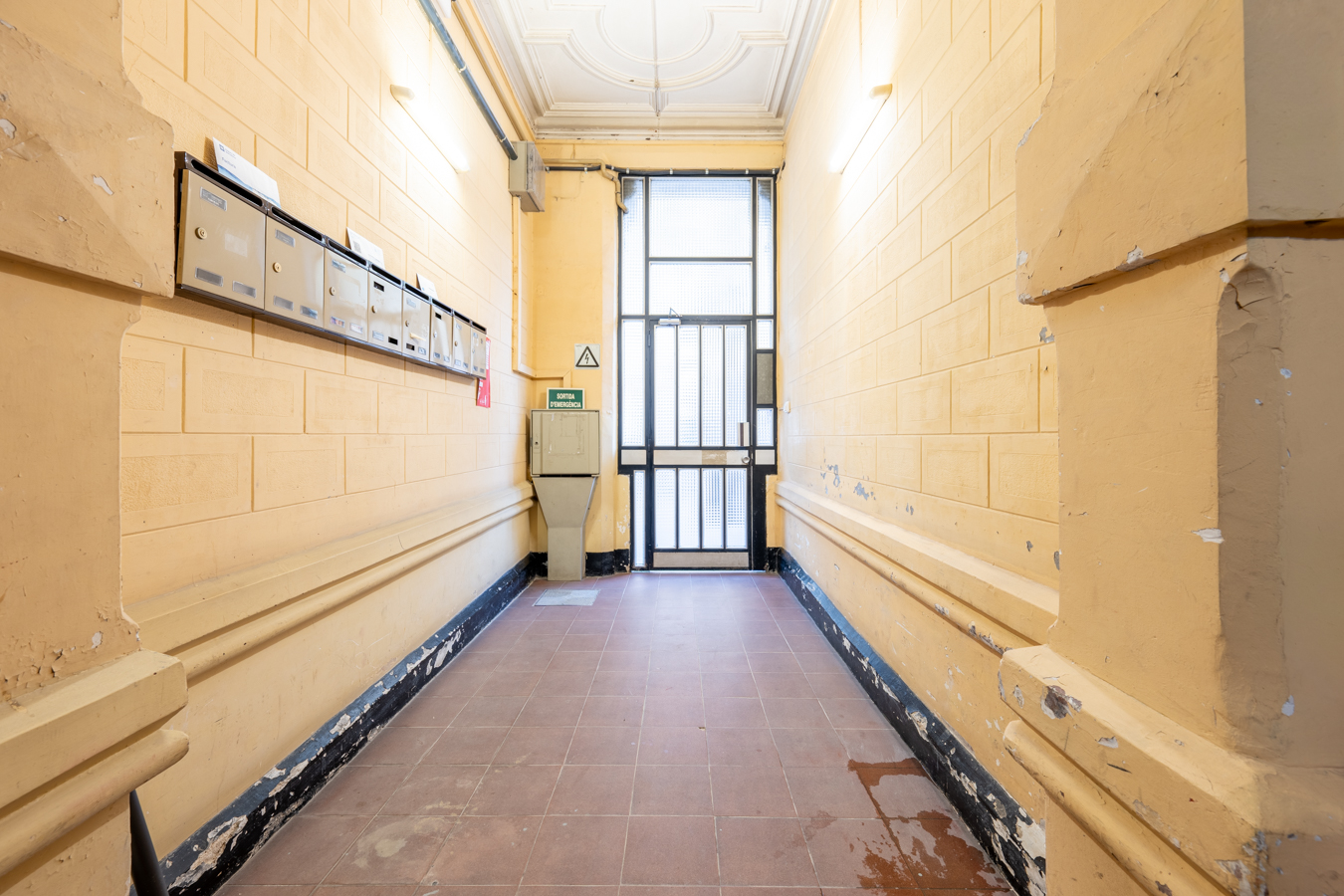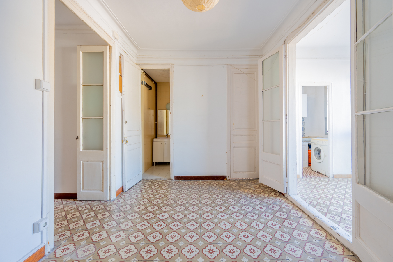 This apartment in need of renovation is located on the 4th floor of a stately building in L’Antiga Esquerra del Eixample, with only one flat per floor. It faces both the street and the block courtyard, making it very bright. It also retains original features from the period in which it was built, such as hydraulic floors, Catalan vaulted ceilings and wooden beams.