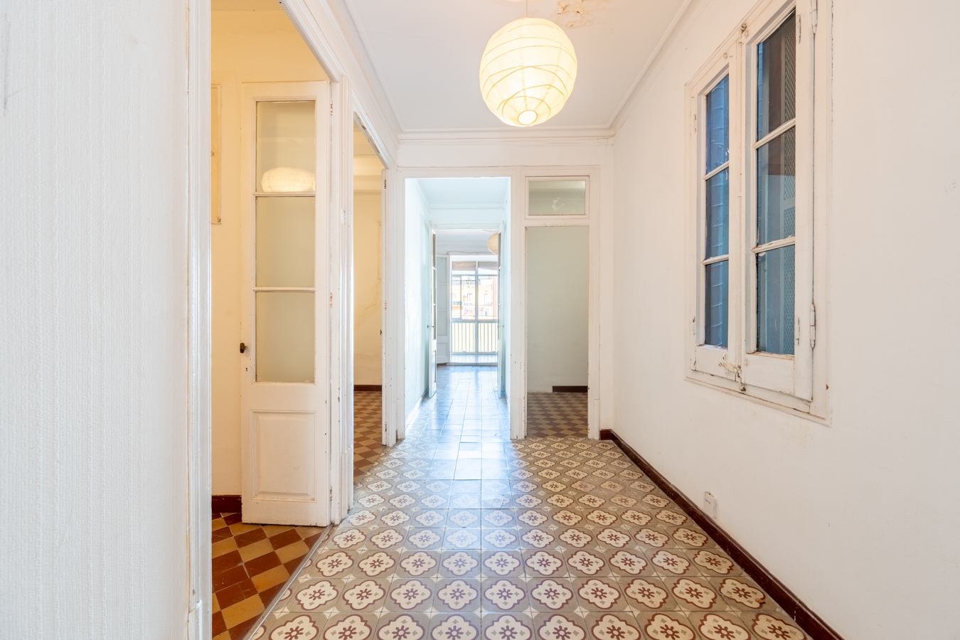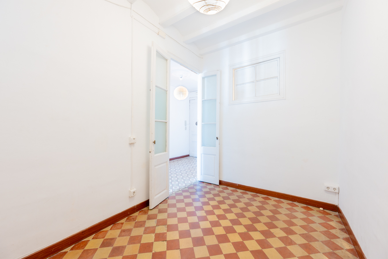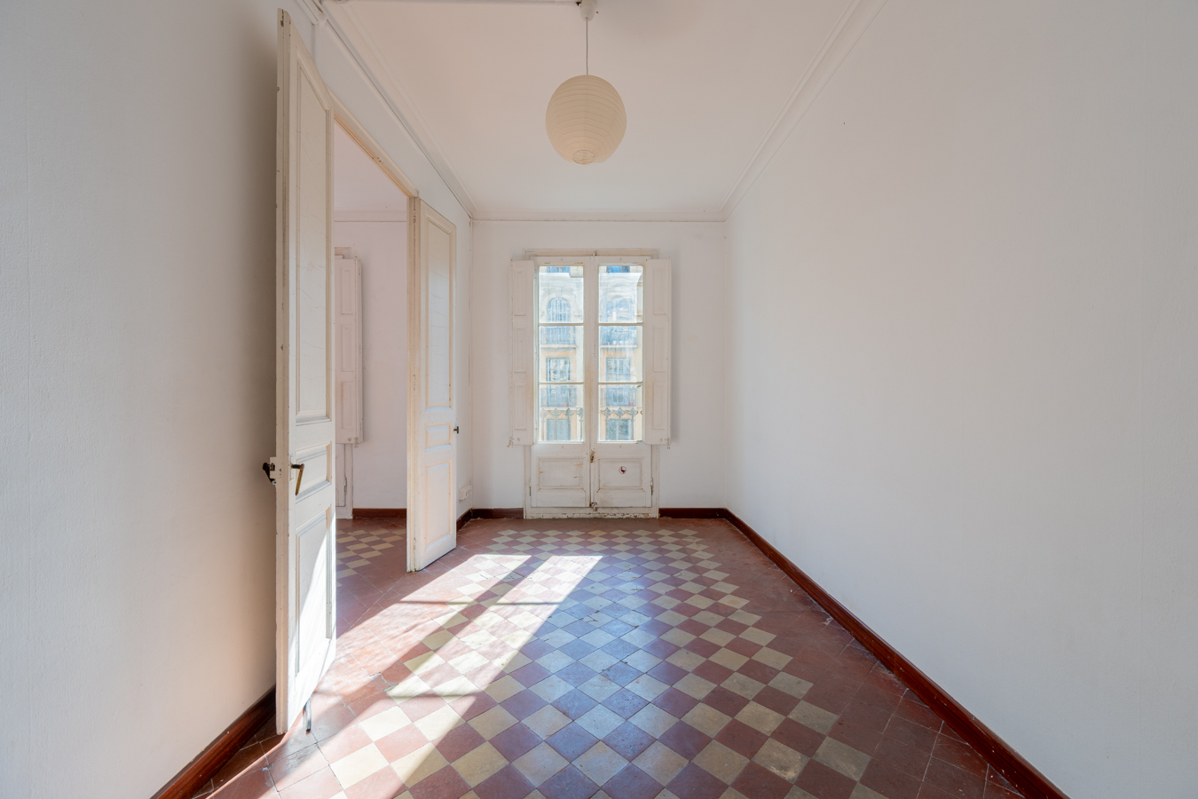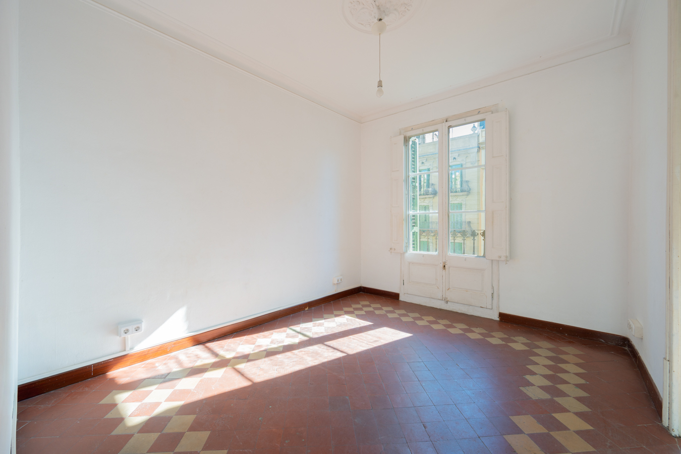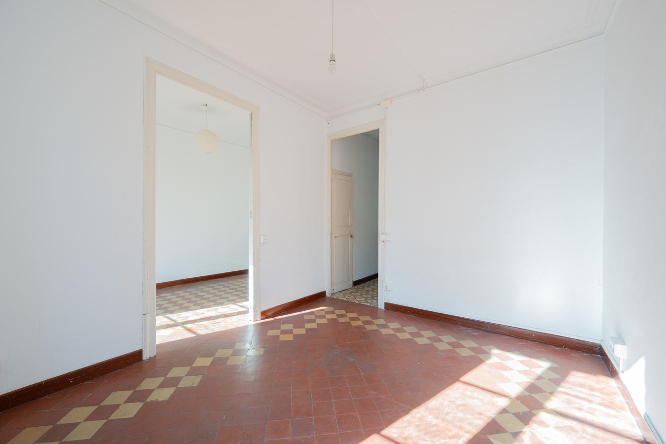 This apartment in need of renovation is located on the 4th floor of a stately building in L’Antiga Esquerra del Eixample, with only one flat per floor. It faces both the street and the block courtyard, making it very bright. It also retains original features from the period in which it was built, such as hydraulic floors, Catalan vaulted ceilings and wooden beams.