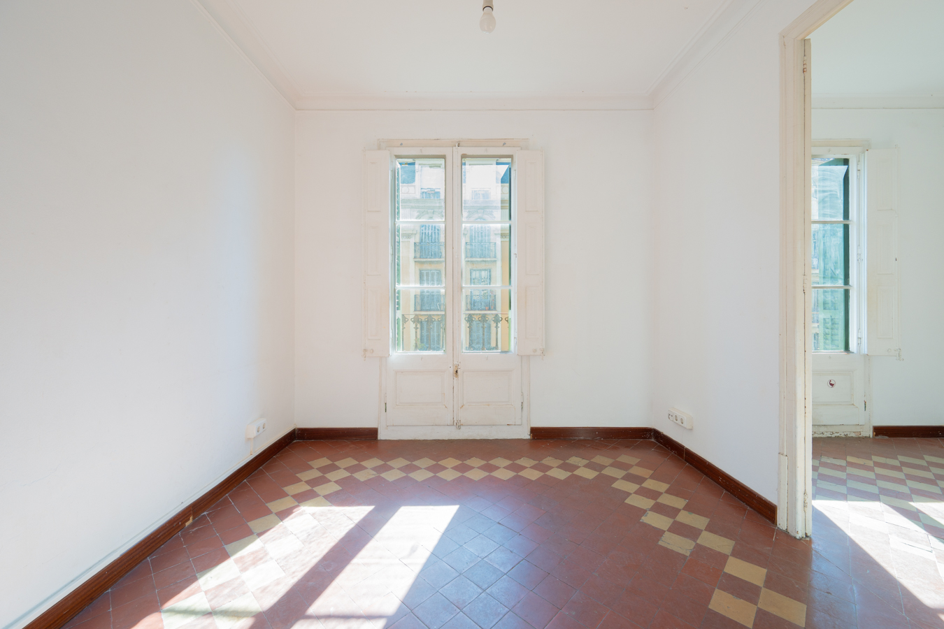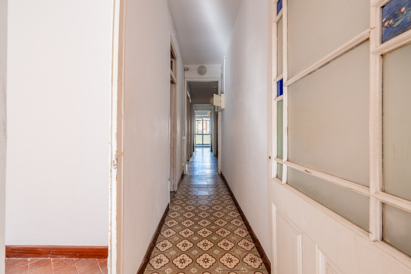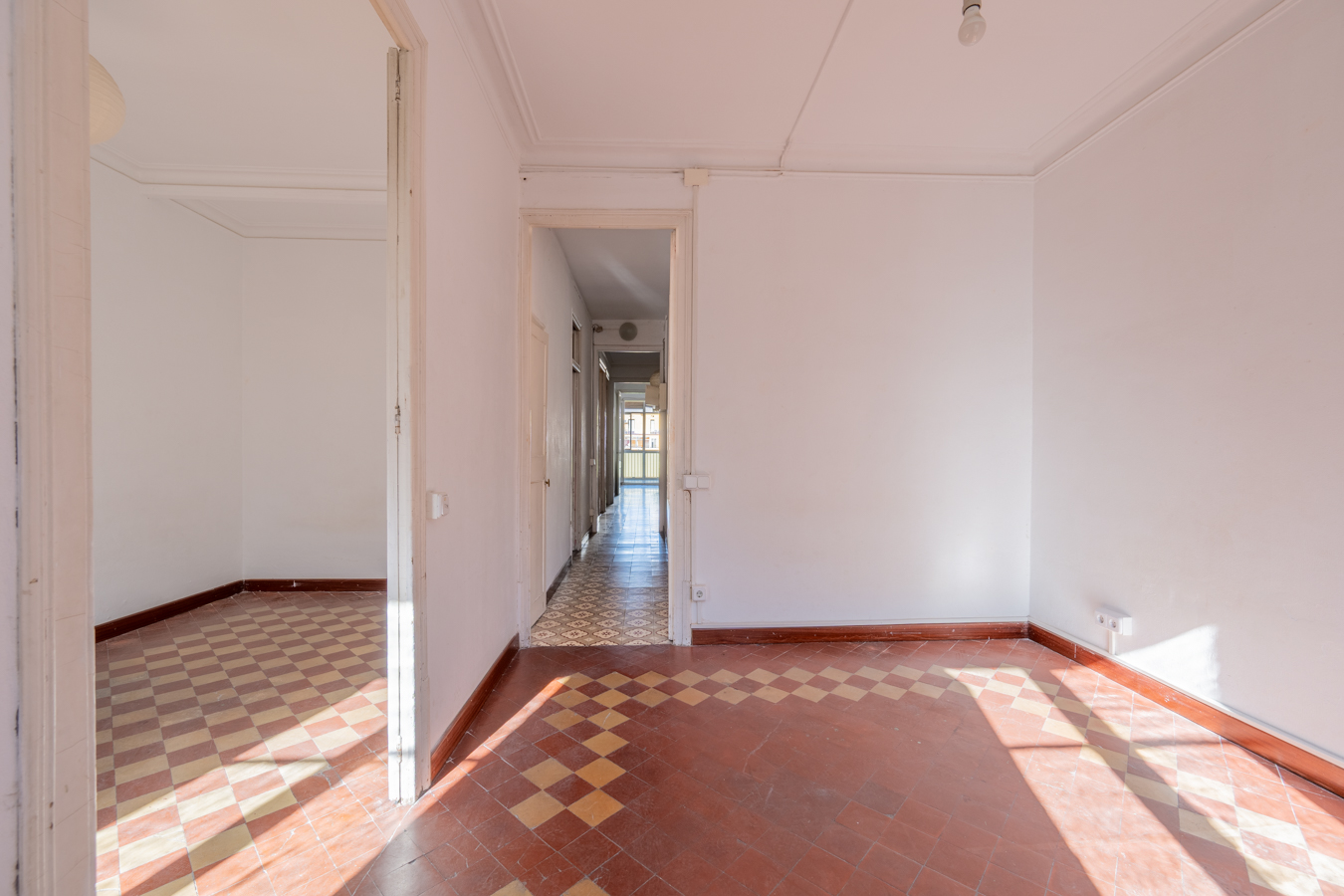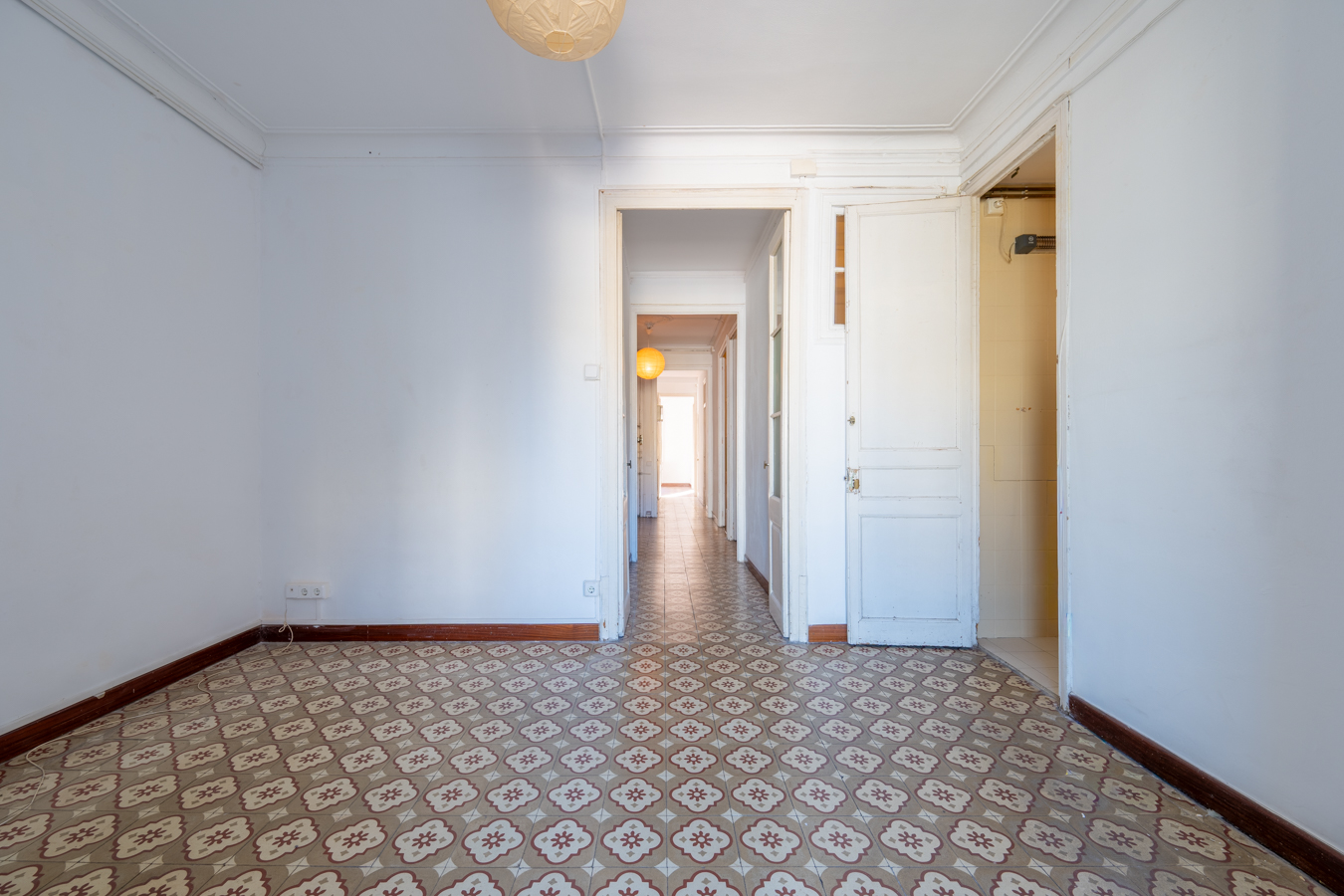 This apartment in need of renovation is located on the 4th floor of a stately building in L’Antiga Esquerra del Eixample, with only one flat per floor. It faces both the street and the block courtyard, making it very bright. It also retains original features from the period in which it was built, such as hydraulic floors, Catalan vaulted ceilings and wooden beams.