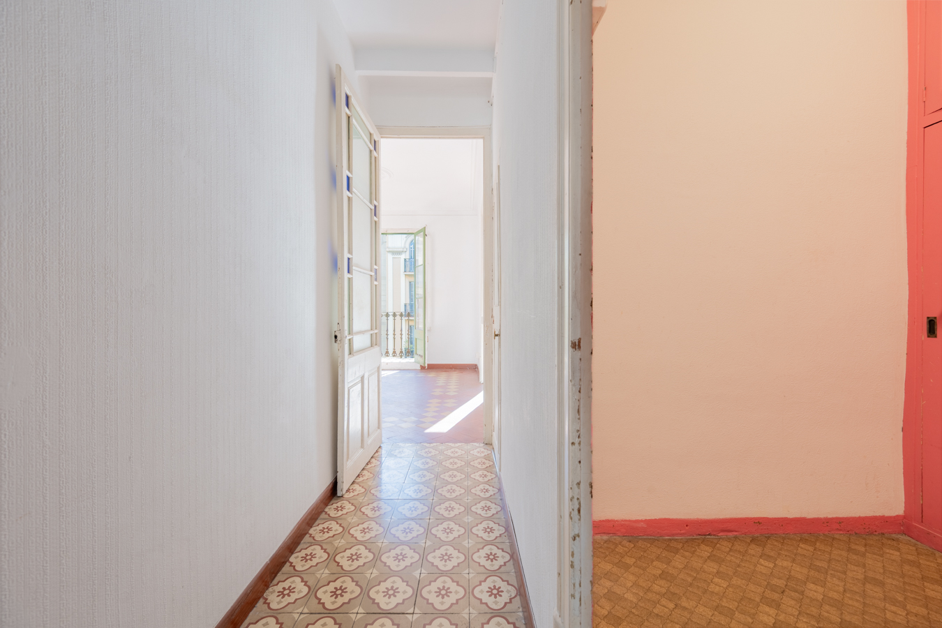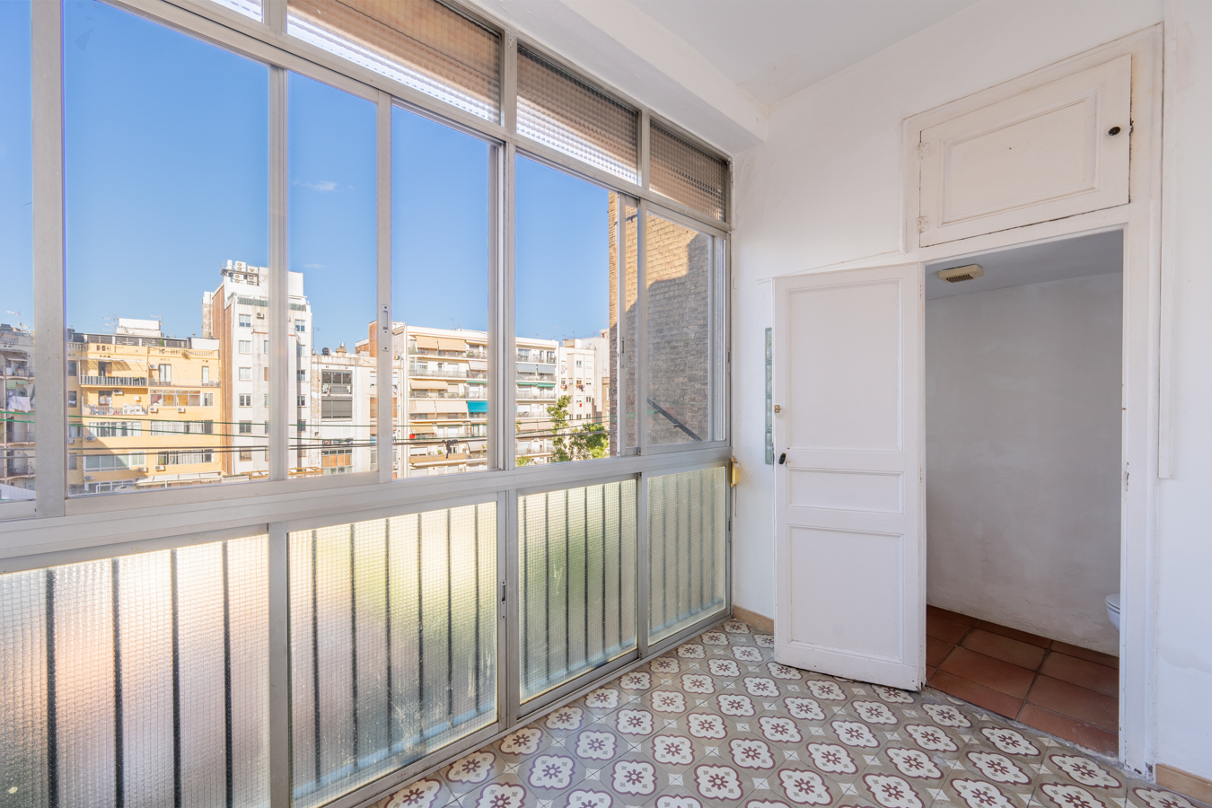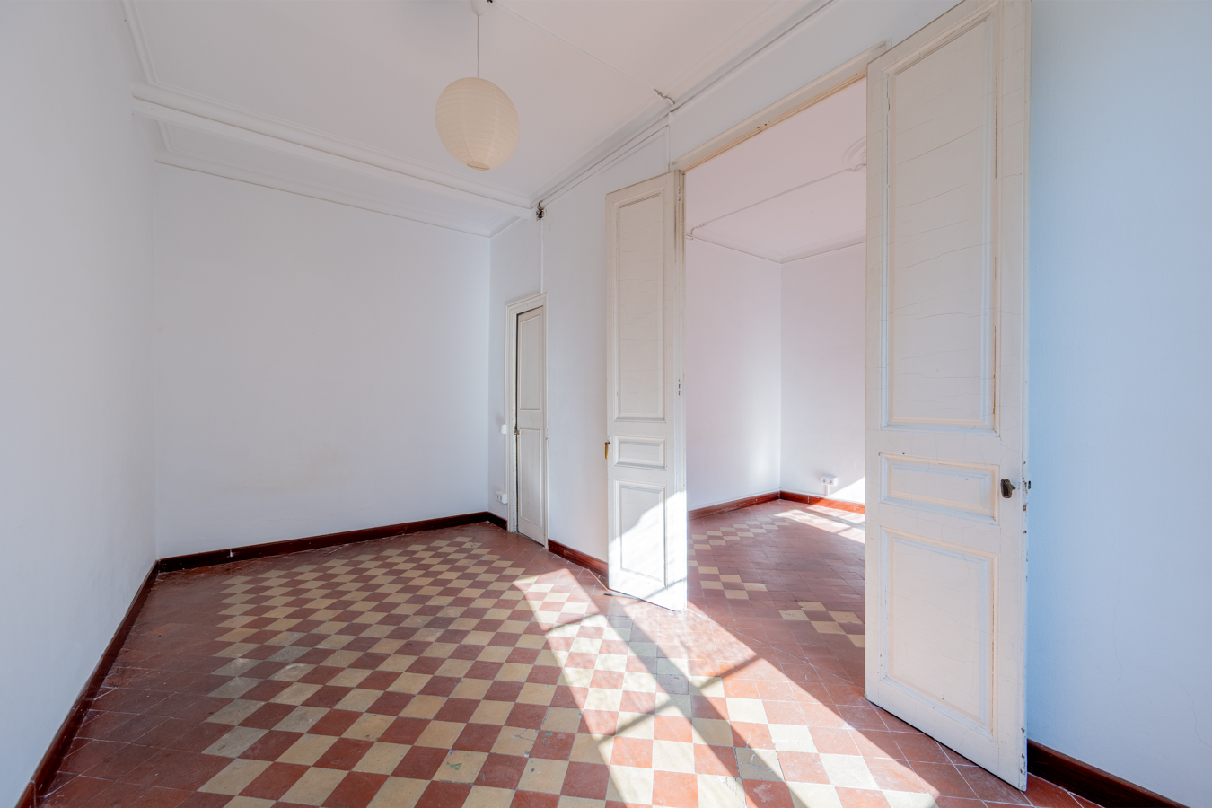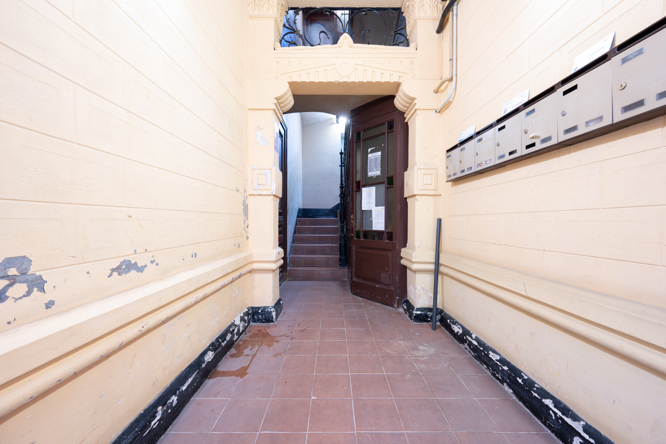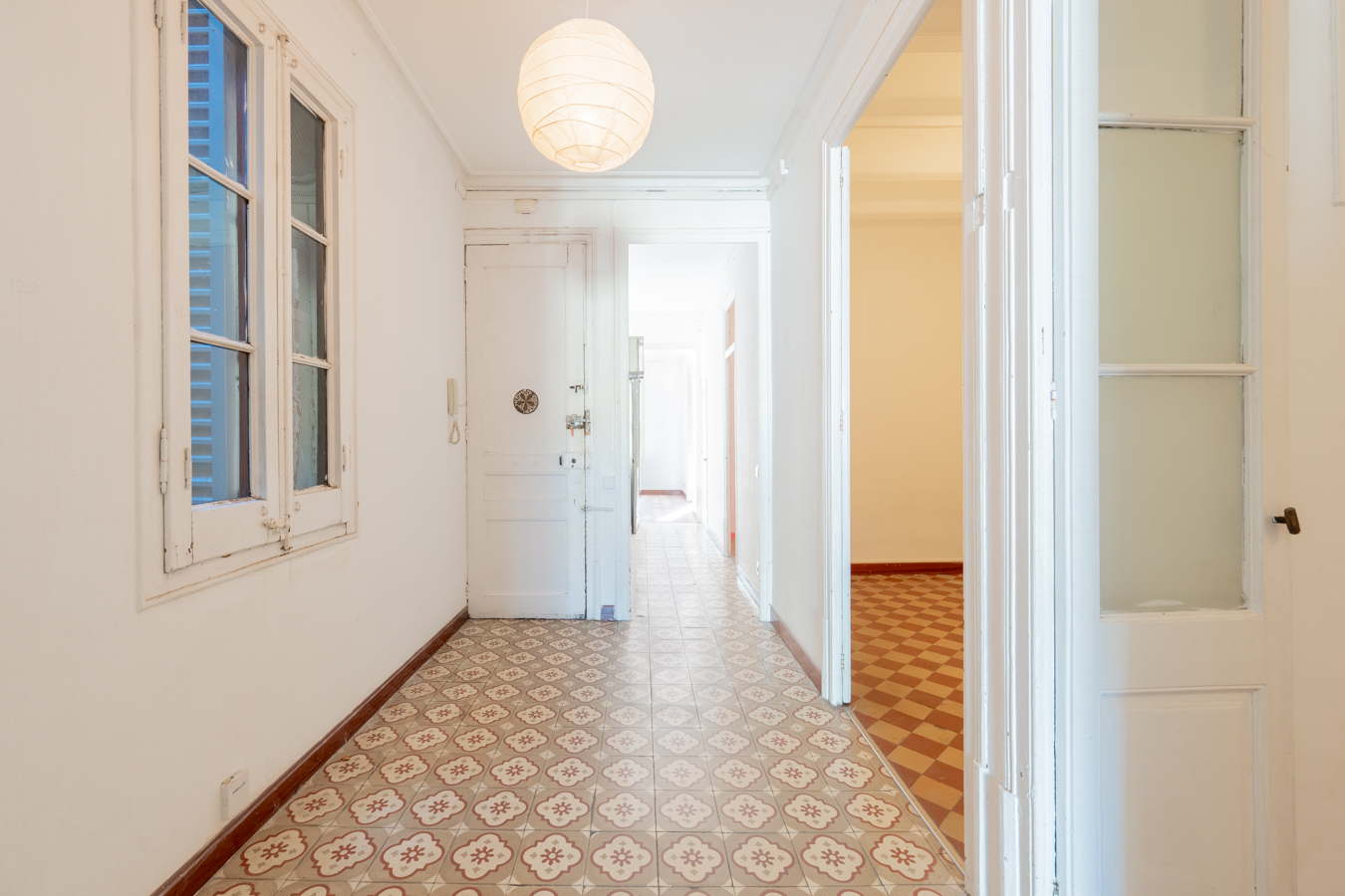 This apartment in need of renovation is located on the 4th floor of a stately building in L’Antiga Esquerra del Eixample, with only one flat per floor. It faces both the street and the block courtyard, making it very bright. It also retains original features from the period in which it was built, such as hydraulic floors, Catalan vaulted ceilings and wooden beams.