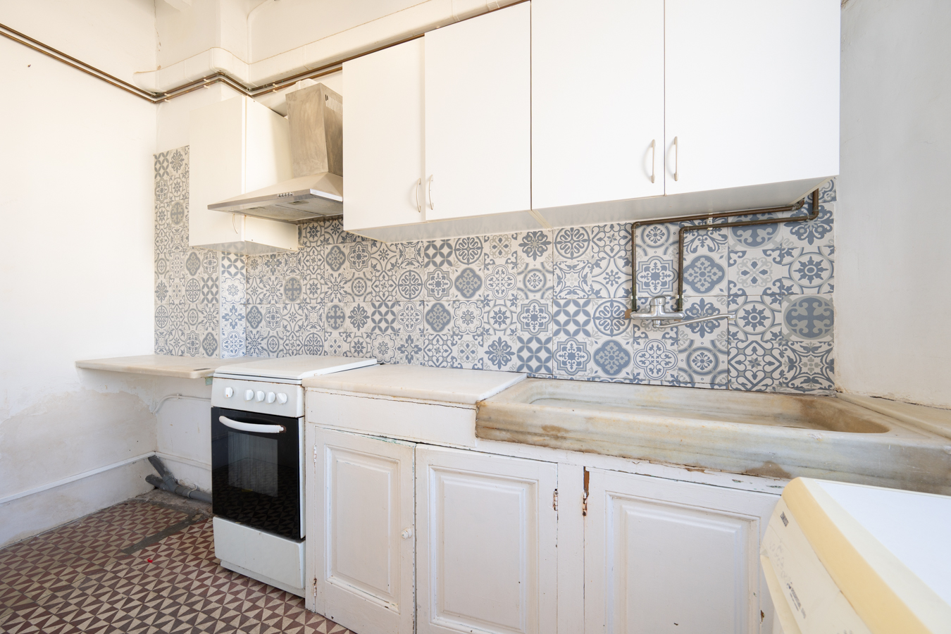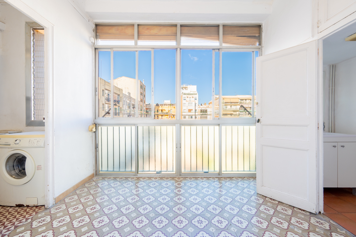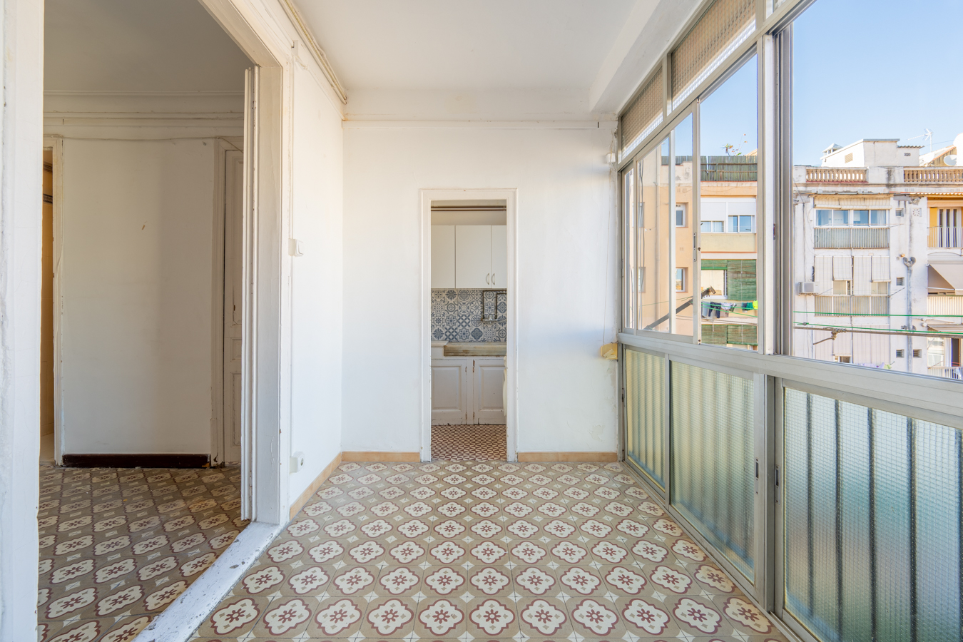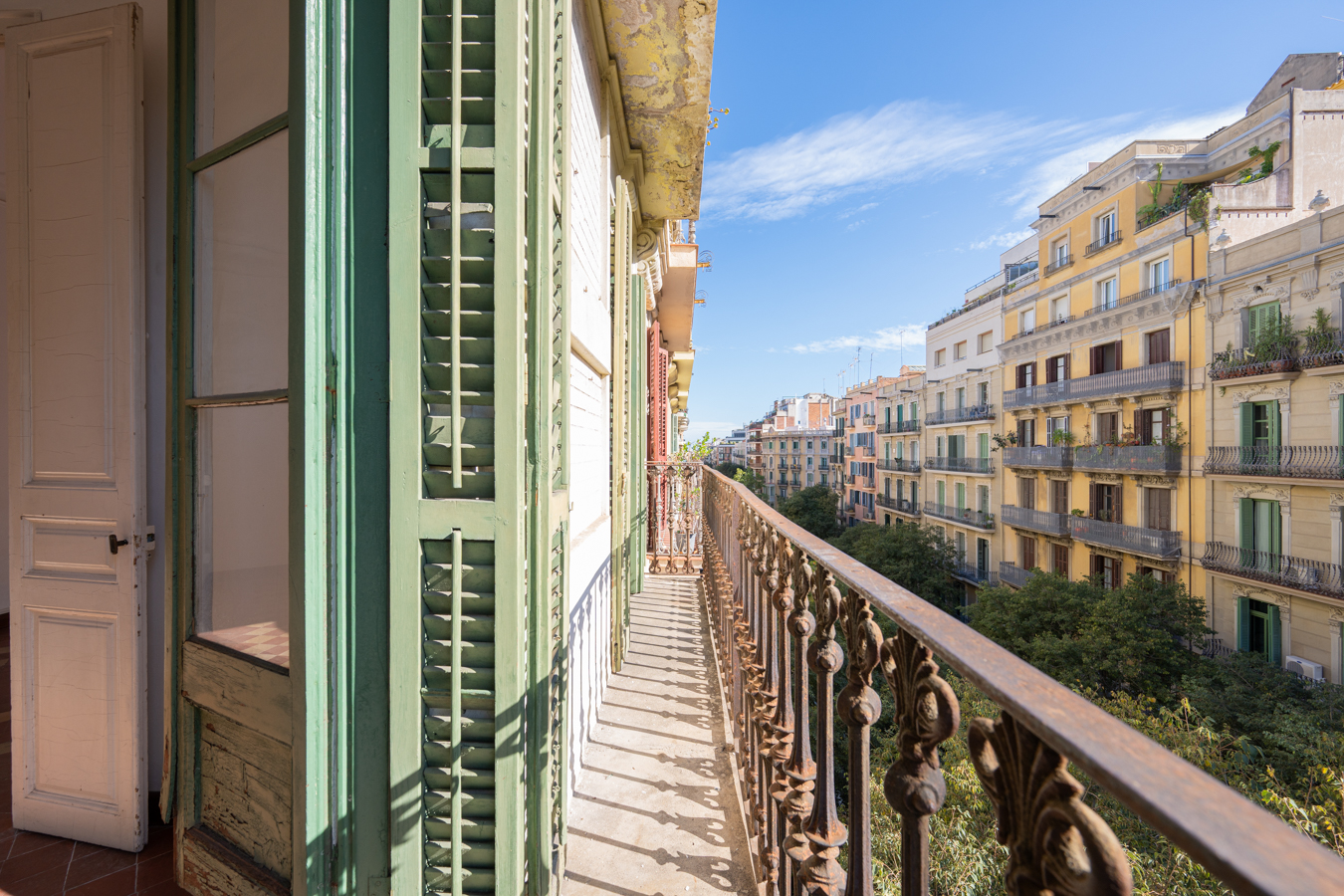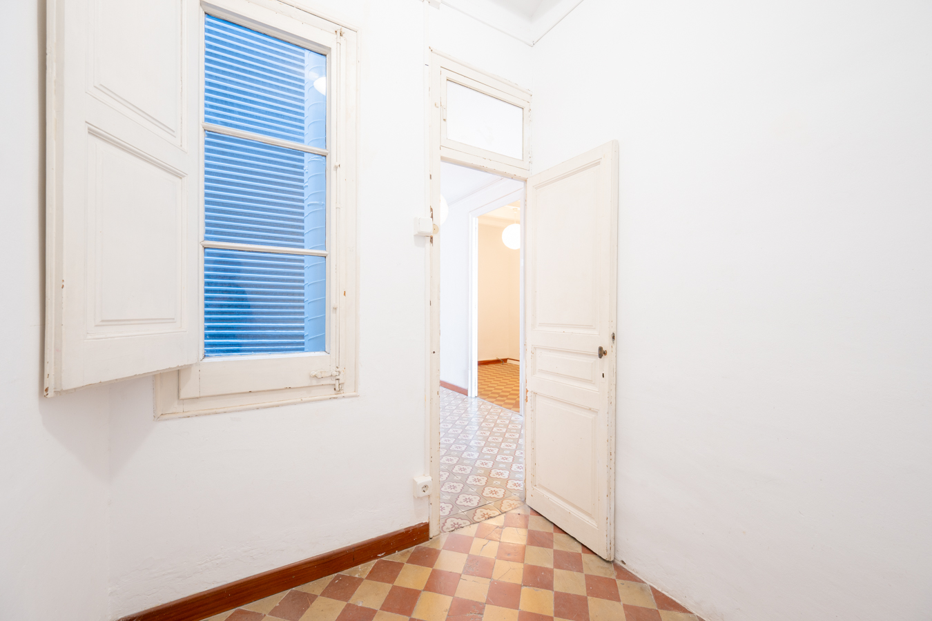 This apartment in need of renovation is located on the 4th floor of a stately building in L’Antiga Esquerra del Eixample, with only one flat per floor. It faces both the street and the block courtyard, making it very bright. It also retains original features from the period in which it was built, such as hydraulic floors, Catalan vaulted ceilings and wooden beams.