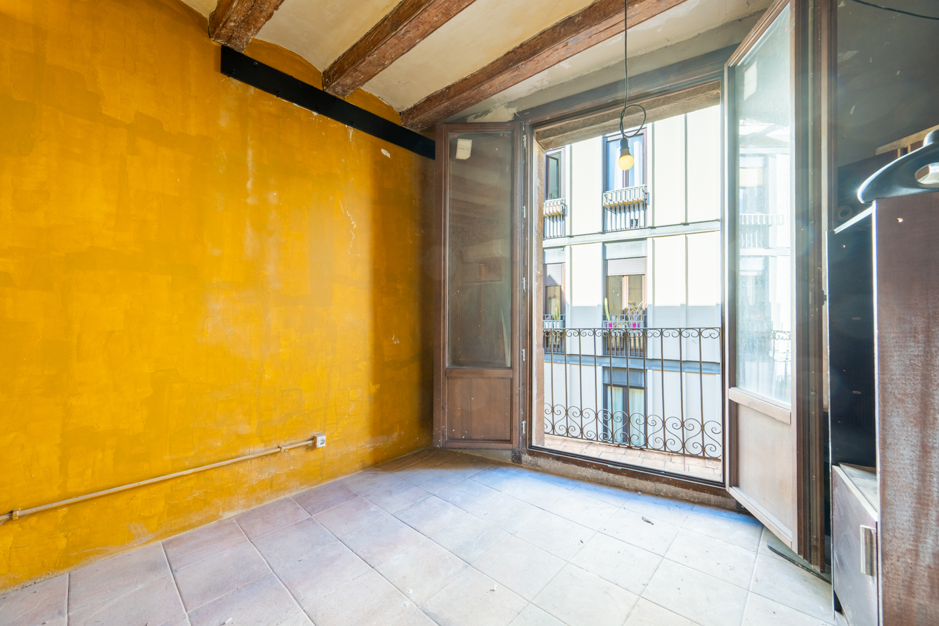 This penthouse apartment to renovate is a unique opportunity to create your home in an enviable area of Barcelona, just a few steps from Plaza Catalunya and Plaza Universitat. Its great advantage is that it’s located in a building that has been completely refurbished recently, including the installation of a lift. The buyer will not have to pay any additional costs for this work.