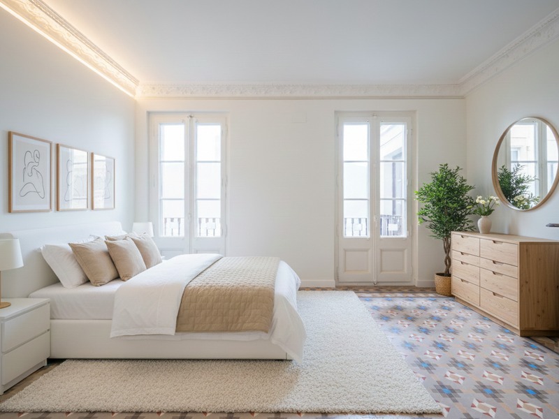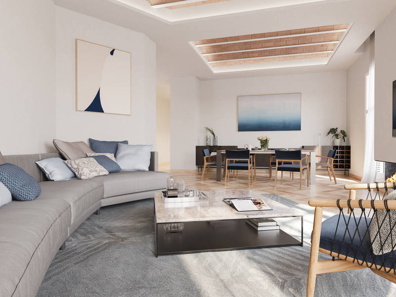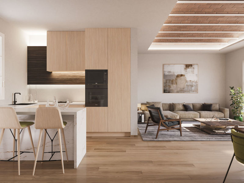 This superb apartment has an excellent location in Barcelona and is part of an integral renovation in a regal estate building dating back to 1910 with upscale properties. The building is on the corner of Carrer Girona, which is planned to be converted into a pedestrian street. You will be able to enjoy the best of Barcelona in an incomparable setting: in the heart of the Eixample, very close to Paseo de Gracia, the city centre and all the shops and services. This fifth-floor property has 140.5 built interior sqm and 2 balconies totalling 3 sqm. A private entrance hall leads to the entrance hall and the hallway, which leads to the large 46 sqm living-dining room with a balcony. It's corner and very bright, creating an exceptional ambience that allows us to clearly differentiate several areas. The kitchen is semi-open but occupies a separate space, and next to it there is a laundry room. The night area features 3 bedrooms. The excellent master suite has an office area at the entrance, which distributes the private bathroom and the bedroom. It has a balcony overlooking the street. In addition, there is a double bedroom and an interior bedroom and a separate bathroom. It's expected that work on this flat will be completed in the second half of 2024. The highest quality materials and finishings will be used, as well as a meticulous interior design that will combine the classic elements of the regal estate buildings with the most modern. Ample space and light will be important, striking a balance between traditional elements such as high ceilings and the comfort and amenities of a new build. In the initial phase of the project, the buyer will be able to make some changes and modify the finishes to their taste, tailor made. The building will favour the presence of vegetation and plants to achieve a green concept and will have an area for charging electric bicycles. There will also be a private gym with a modernist-vintage style. This new development has 1, 2 and 3 bedroom apartments with prices starting at 522.000 €, 626.000 € and 958.000 €, respectively. Do not hesitate to contact Bcn Advisors for more information. * The renderings and square metres in this listing may be subject to change. These images are merely informative and may change depending on the needs of the clients or changes that may be made during the execution process of the refurbishment project and/or project works. * The floorplan and the content of this listing are not a contractual document, it's part of the executive project and may be subject to modifications due to technical requirements, administration or public organisations. The surfaces will be provisional. The furniture (including the kitchen), gardening and accessory elements are only illustrative.