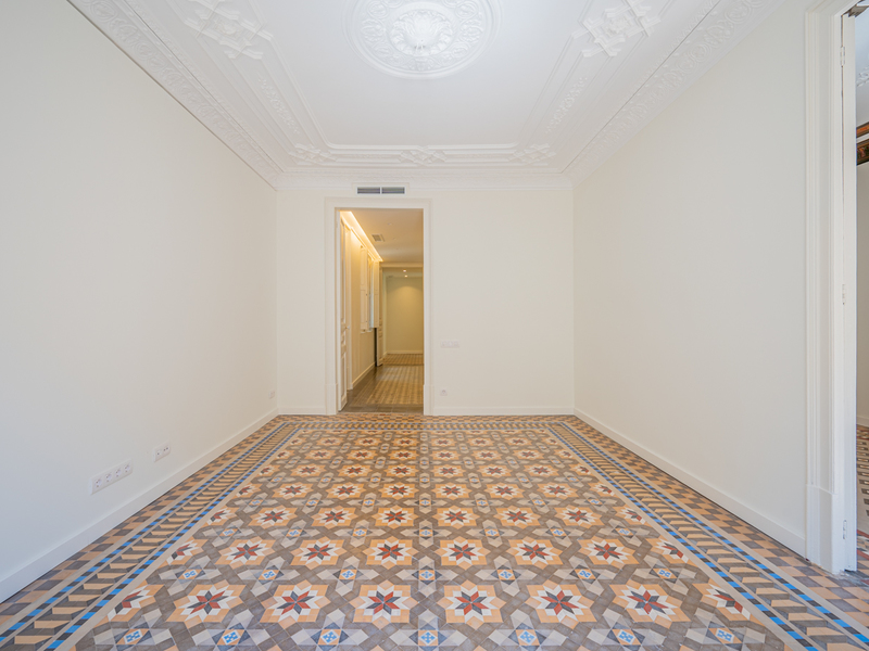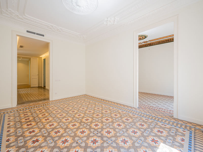 This fantastic refurbished flat combines the charm of the traditional with the luxury comfort you need today. Its location is exceptional, just a few steps from Paseo Gracia, Avenida Diagonal and Rambla Catalunya. Therefore, you will be able to enjoy all the advantages of the Eixample, the uptown area and Gràcia. The flat has 131 built interior sqm and a 6 sqm terrace. It's on the real second floor of a regal estate building with a lift. It stands out for the beauty of its original elements such as the hydraulic floors with a variety of mosaics, the Catalan vaulted ceilings, exposed brick walls and original stripped doors. A large entrance hall divides the day and night areas on both sides. The wonderful living-dining room with integrated kitchen and central island is very bright, as it has 3 balconies overlooking the street, with northeast orientation. The kitchen is fully equipped with Bosch appliances: ceramic hob with integrated smoke extraction, oven, microwave, fridge-freezer and dishwasher. The night area has 3 bedrooms (2 are double with access to an interior terrace and a single bedroom that could also be used as an office). The master bedroom has a double en-suite bathroom: one with shower and WC and the other with freestanding bathtub and washbasin. The other double bedroom has a walk-in wardrobe next to it. The terrace, with a 2-metre high lattice to ensure privacy, is an ideal place to unwind outdoors over a coffee or aperitif. It has access to a laundry room. Finally, there is a separate bathroom. The flat is equipped with ducted hot/cold air conditioning for total well-being all year round and LED lighting. The surrounding area has a wide variety of services, neighbourhood shops, luxury boutiques, restaurants, leisure options, green areas and public transport connections so that you can enjoy all of Barcelona to the full. Do not hesitate to contact Bcn Advisors to visit this property.
