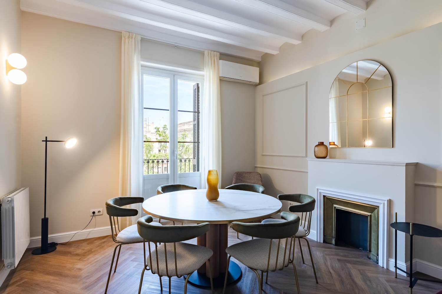 The property offers a great sense of space and light thanks to its 3-metre-high ceilings with Catalan vaulting. It is equipped with designer furniture, high-end appliances, herringbone parquet flooring, ducted hot/cold air conditioning, natural gas radiator heating, high-speed monitored communal Internet connection, digital access control and security system, and double-glazed aluminium windows. The building has a lift, concierge service and surveillance cameras in the common areas.