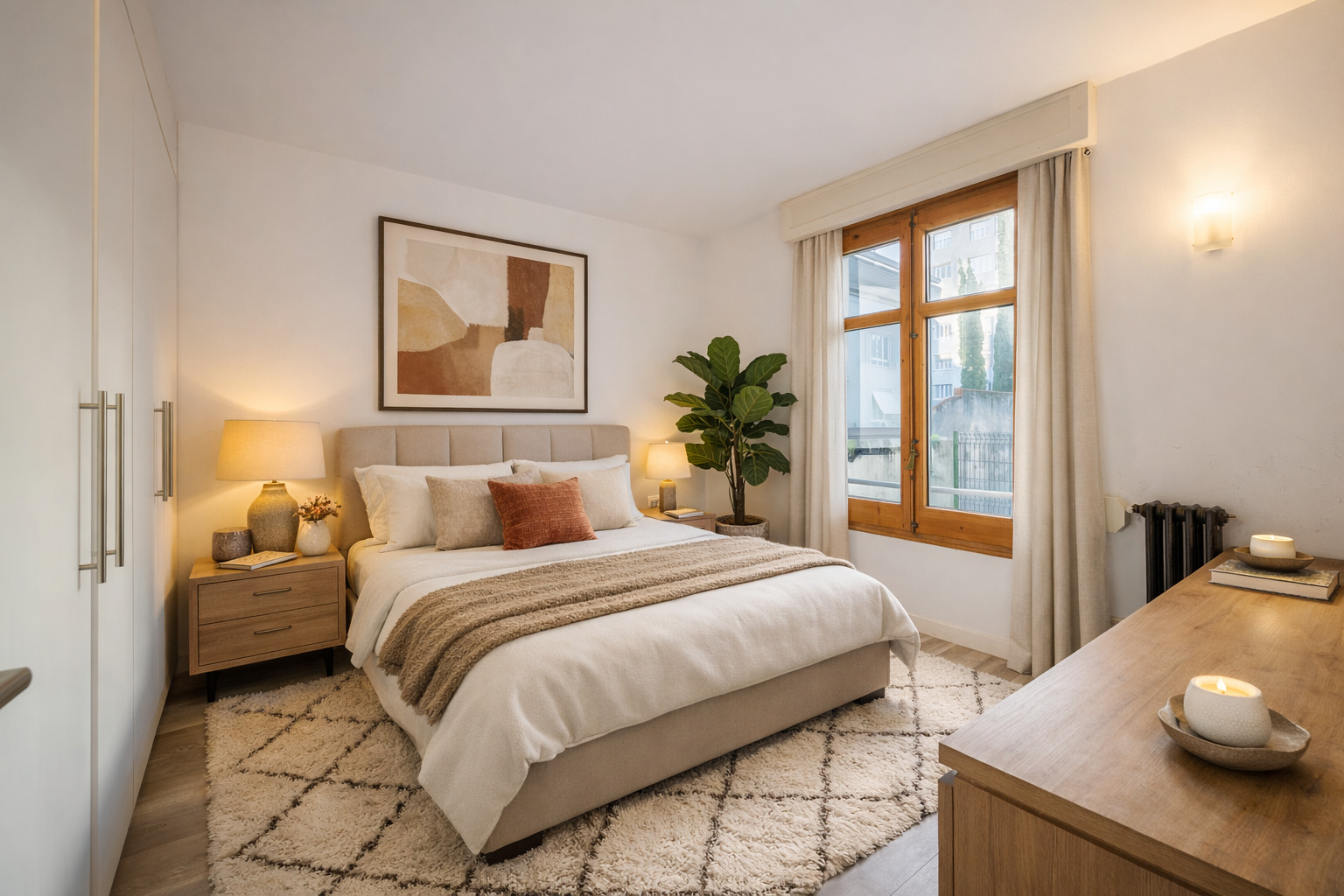 This magnificent apartment has an enviable location in Barcelona and is part of a comprehensive rehabilitation project in a royal estate of 1910 with high-end apartments. The building is on the corner with Girona street, which is already becoming a pedestrian street and the works are almost finished, and Diagonal Avenue, which is being transformed into a boulevard with a large pedestrian area, green areas and bike lane, greatly reducing car traffic. You can enjoy the best of Barcelona in an incomparable setting: in the heart of Eixample, very close to Paseo de Gracia, the city center and a wide variety of stores and services. This flat, on the 2nd floor, has 87.95 built sqm. As it is a corner building, it has great natural light, which is atypical in the Eixample, and unique views with a lot of depth. An entrance hall gives way to the hallway, which leads to the spacious living-dining room with an open-plan kitchen of 20 m2. Next to it there is a gallery space, ideal for creating a more relaxed atmosphere, which is very quiet. The day area overlooks one of the best courtyards in the Eixample, which is an oasis in the big city. In addition, its south orientation guarantees sun all day long. The night area is made up of 2 bedrooms: the fantastic master suite, which has a private bathroom and access to the 6 sqm south-facing porch terrace, and a medium-sized bedroom. In addition, there’s a separate bathroom. The flat, which is scheduled to be completed in the last quarter of 2024 and handed over in the first quarter of 2025, will have the highest quality materials and finishings, as well as an interior design with attention to detail that will combine the classic elements of the regal estate buildings with the most modern. Large spaces and brightness will be important, achieving a balance between traditional elements such as the restored Catalan vaulted ceilings and the comfort and amenities of a new building: underfloor heating and hot-cold air conditioning powered by aerothermics (the latest technology in air conditioning systems that produces energy savings of between 60% and 70% compared to conventional systems), top-of-the-range Siemens appliances, natural wood parquet floors, entrance door with security lock, built-in wardrobes, porcelain tiling on the bathroom walls, Italian designer taps, LED lighting, fibre optic connection, Internet and TV signal sockets, etc. The building, which will be fully refurbished, will have 2 lifts (the original one restored respecting its wooden cabin with a new mechanism and a completely new one), a concierge, an area for charging electric bicycles and a private modernist-vintage style gym with Catalan vault, hydraulic floors and a full bathroom. The extensive main façade of the building, as well as the many interior courtyards and the rear façade, provide the building with excellent lighting and ventilation. The unusual distance to the buildings parallel to the façade further enhances the feeling and perception of spaciousness. As this is a modernist building with important historical value, the interior design team has prioritised the recovery of some of the original elements. For example, a complete restoration and rehabilitation of the modernist stuccoes of the staircase core has been carried out; and in the independent vestibules, recovered hydraulic mosaic tiles will be installed to maintain the historical value of the property. In addition, the exterior joinery has been replaced with wooden windows and balconies with thermal break and laminated insulating glass. This development has 1, 2 and 3 bedroom flats with prices starting at 511,560 €, 603,480 € and 938,840 €, respectively. Contact Bcn Advisors for more information. * Renderings and square metres in the advert may be subject to change. These images are merely informative and may change depending on the needs of the clients or changes that may be made during the process of execution of the refurbishment project and/or project works. * The plan and content of the advertisement is not a contractual document, it is part of the executive project and may be subject to modifications due to technical requirements, administration or public bodies. The surfaces will be provisional. The furnishings (including the kitchen), gardening and accessory elements are for guidance only.