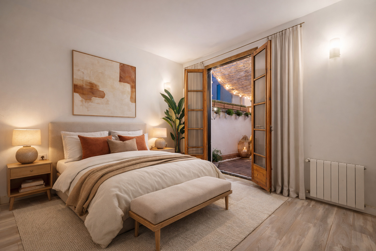 The night area has 2 very quiet double bedrooms. The master bedroom overlooks the block courtyard, while the other bedroom has access to the patio. It’s an interior lightwell with space for a table and chairs, where you can enjoy breakfast, an aperitif, lunch or a drink outdoors. The flat currently has a separate bathroom, but with a simple modification it could be converted into an additional toilet.