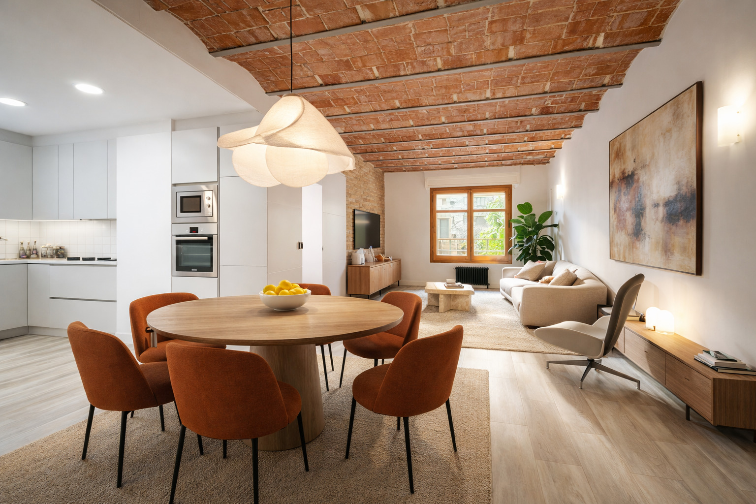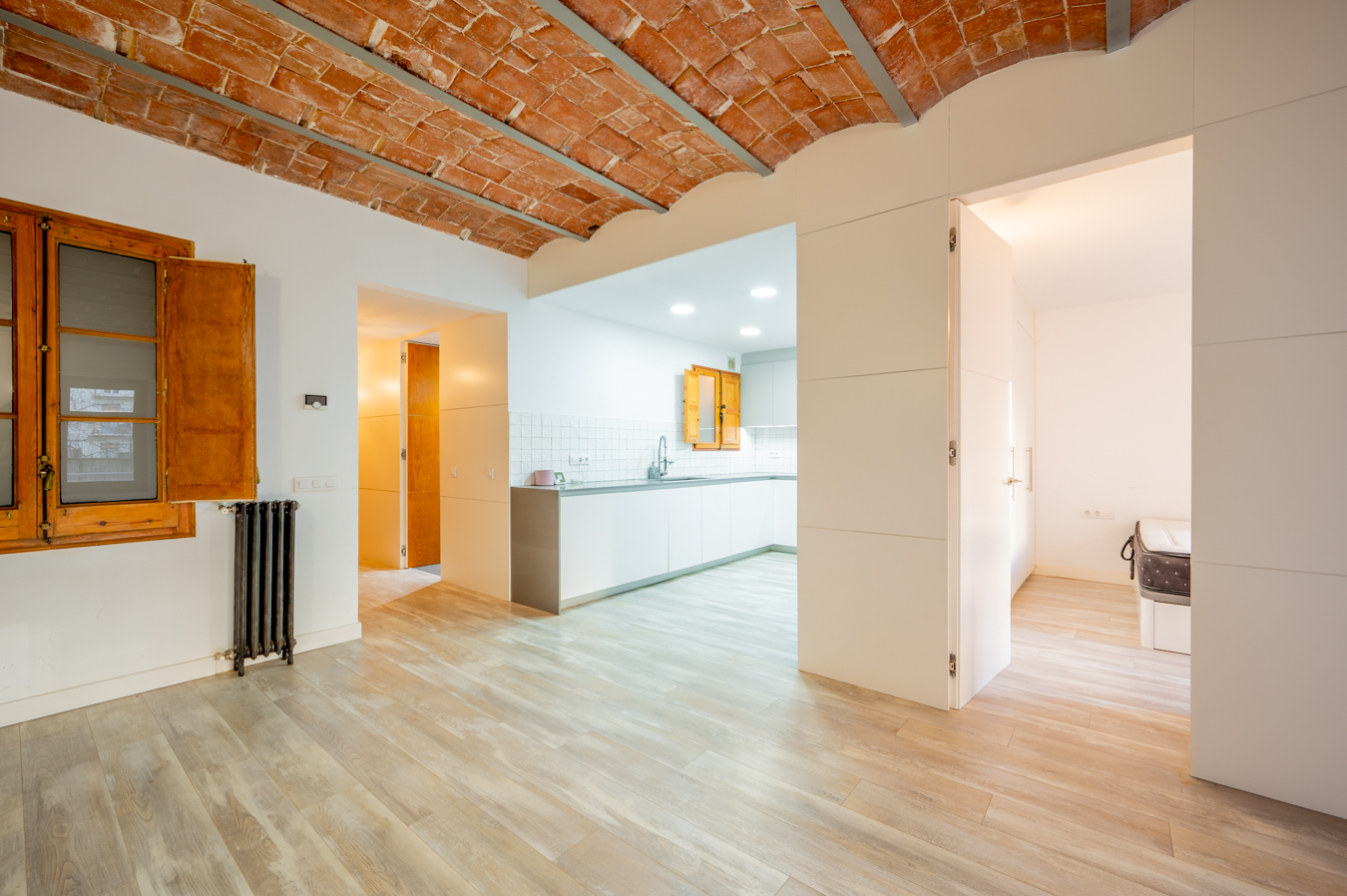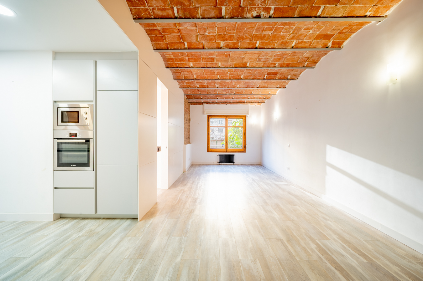 The property was recently renovated with high-quality materials and finishings and is in perfect condition. It stands out for its original features such as high ceilings with Catalan vaulting, restored exposed brick walls and restored original woodwork. It is on the first floor of a classic building with a lift. It enjoys plenty of natural light and is very quiet, as it overlooks the inner courtyard.
