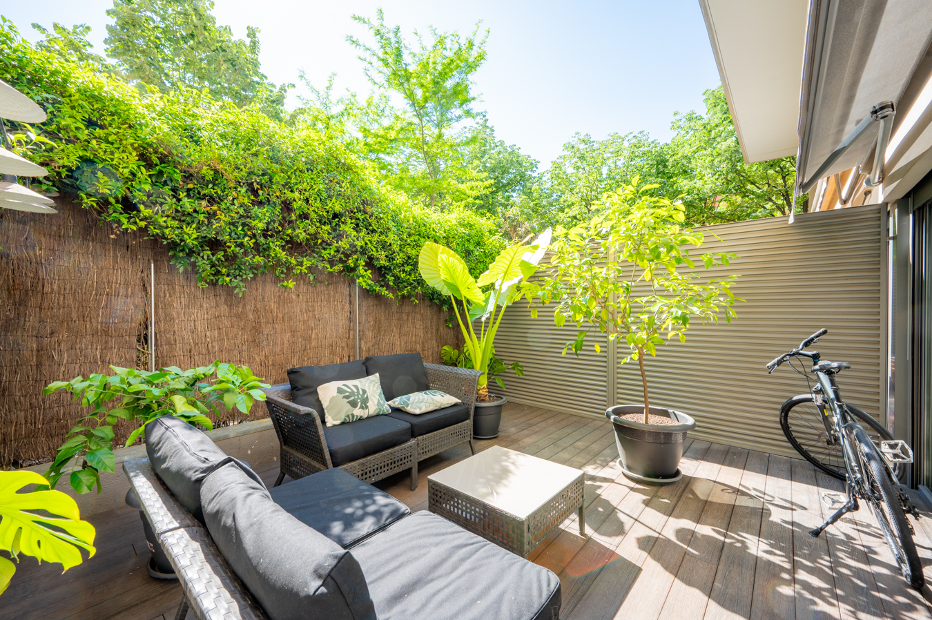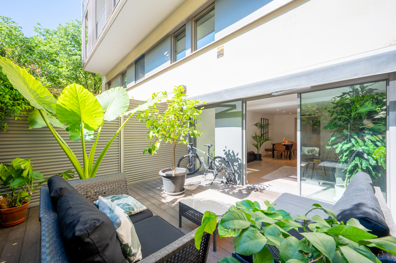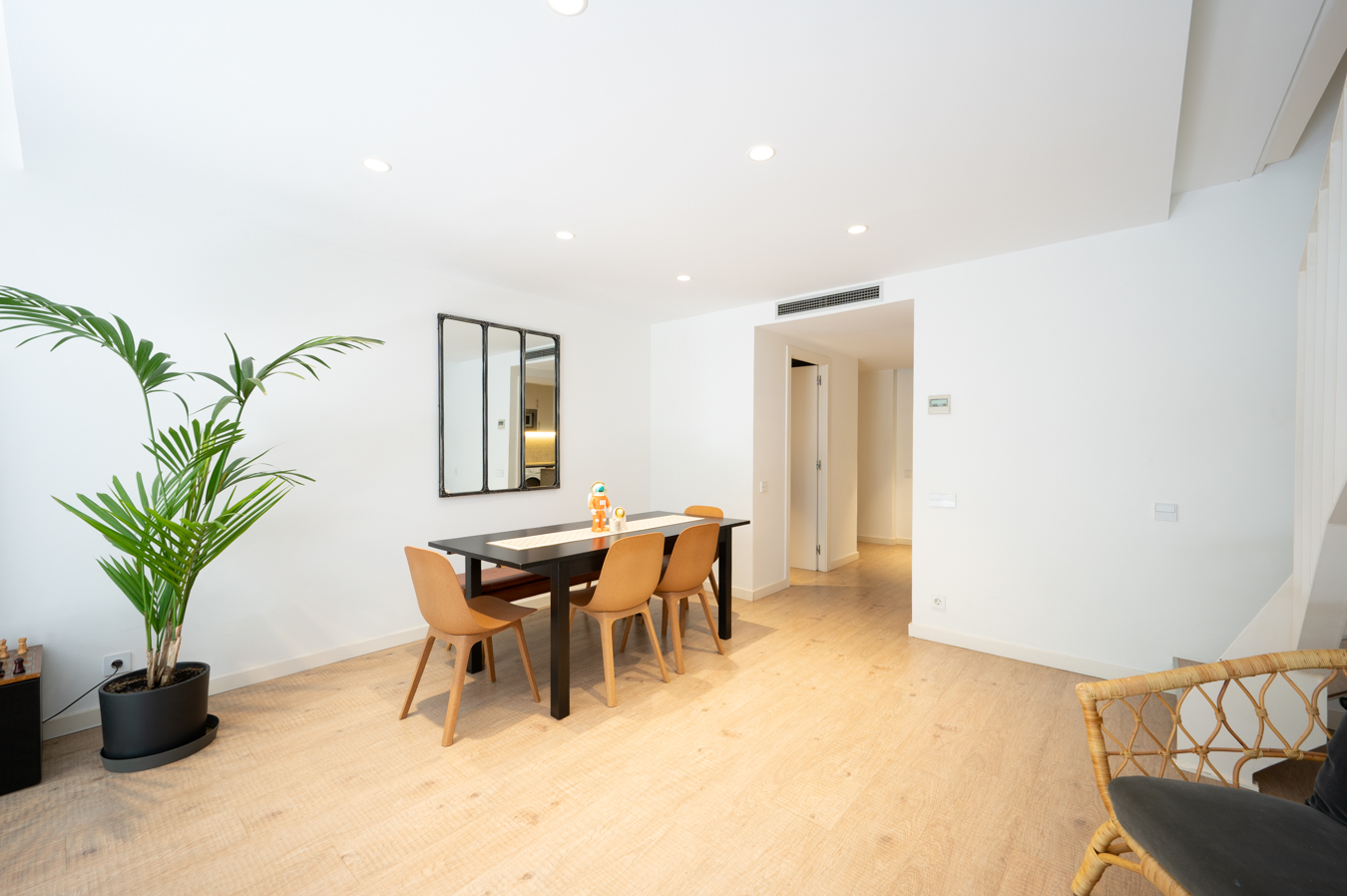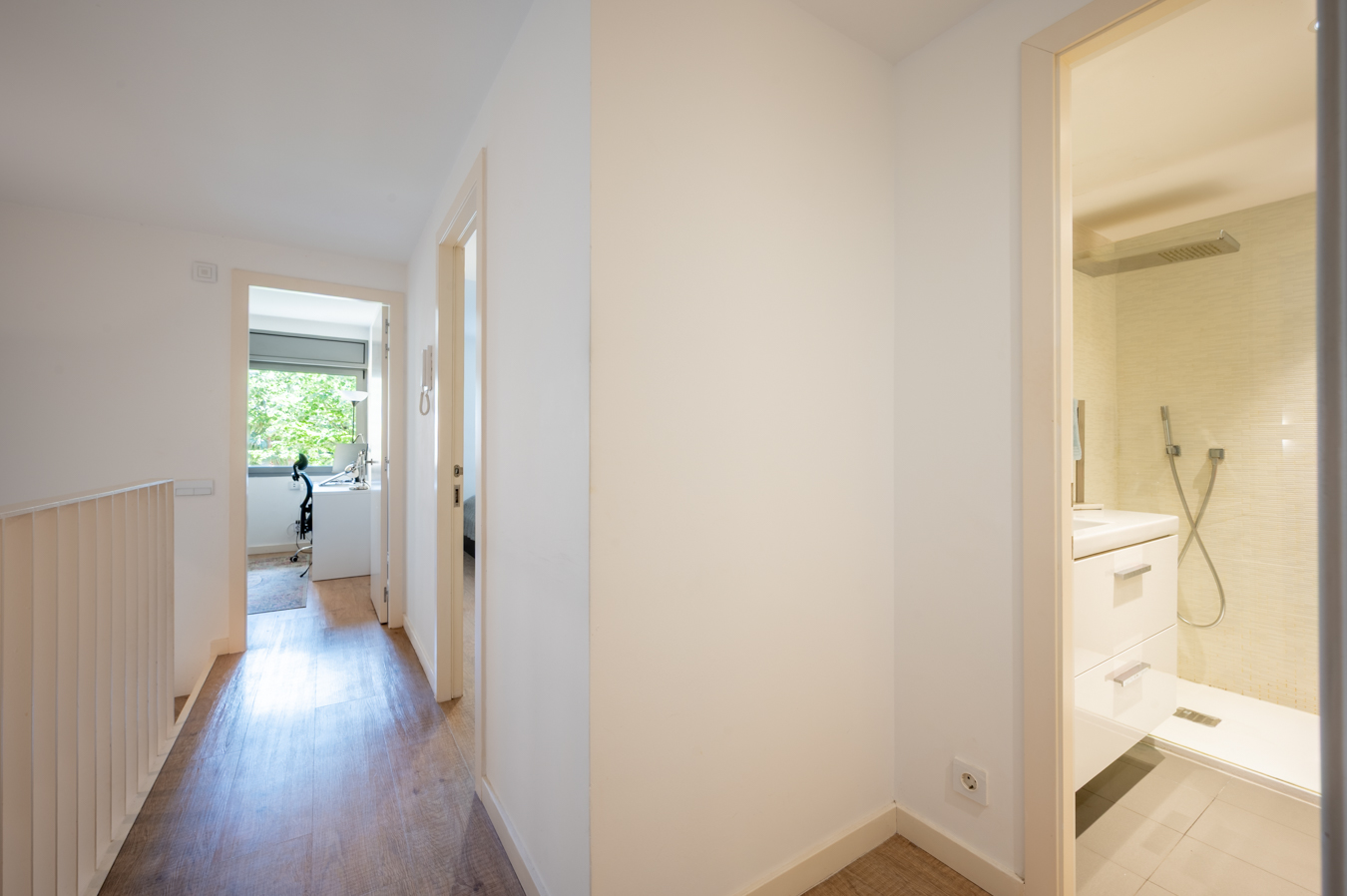 This duplex with a 25 sqm terrace is located in a semi-new building from 2004 in the Eixample, just two streets from Passeig Sant Joan and close to Parc de la Ciutadella. There is also the option to purchase a parking space in the same building for €20,000.