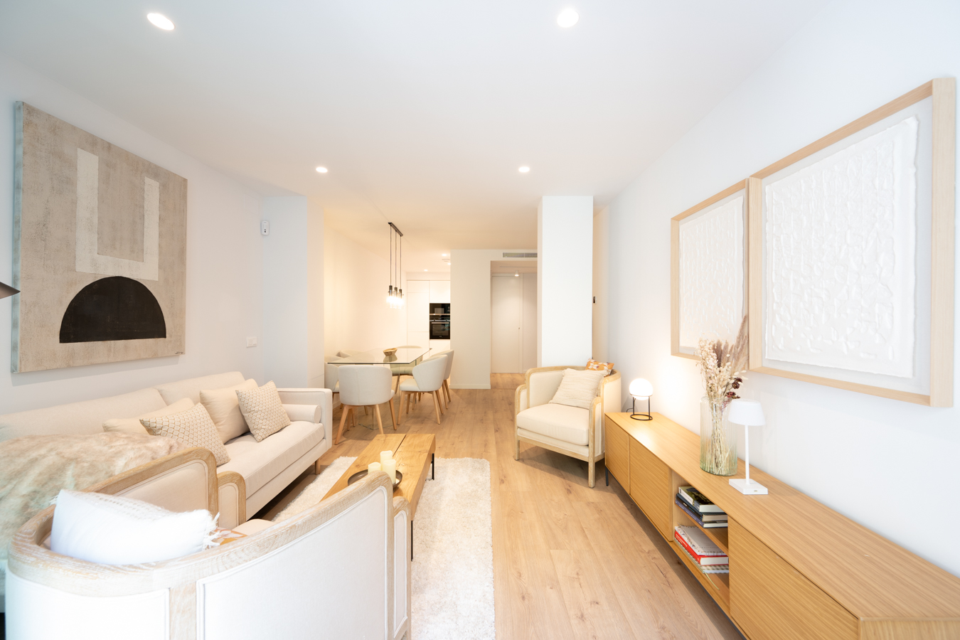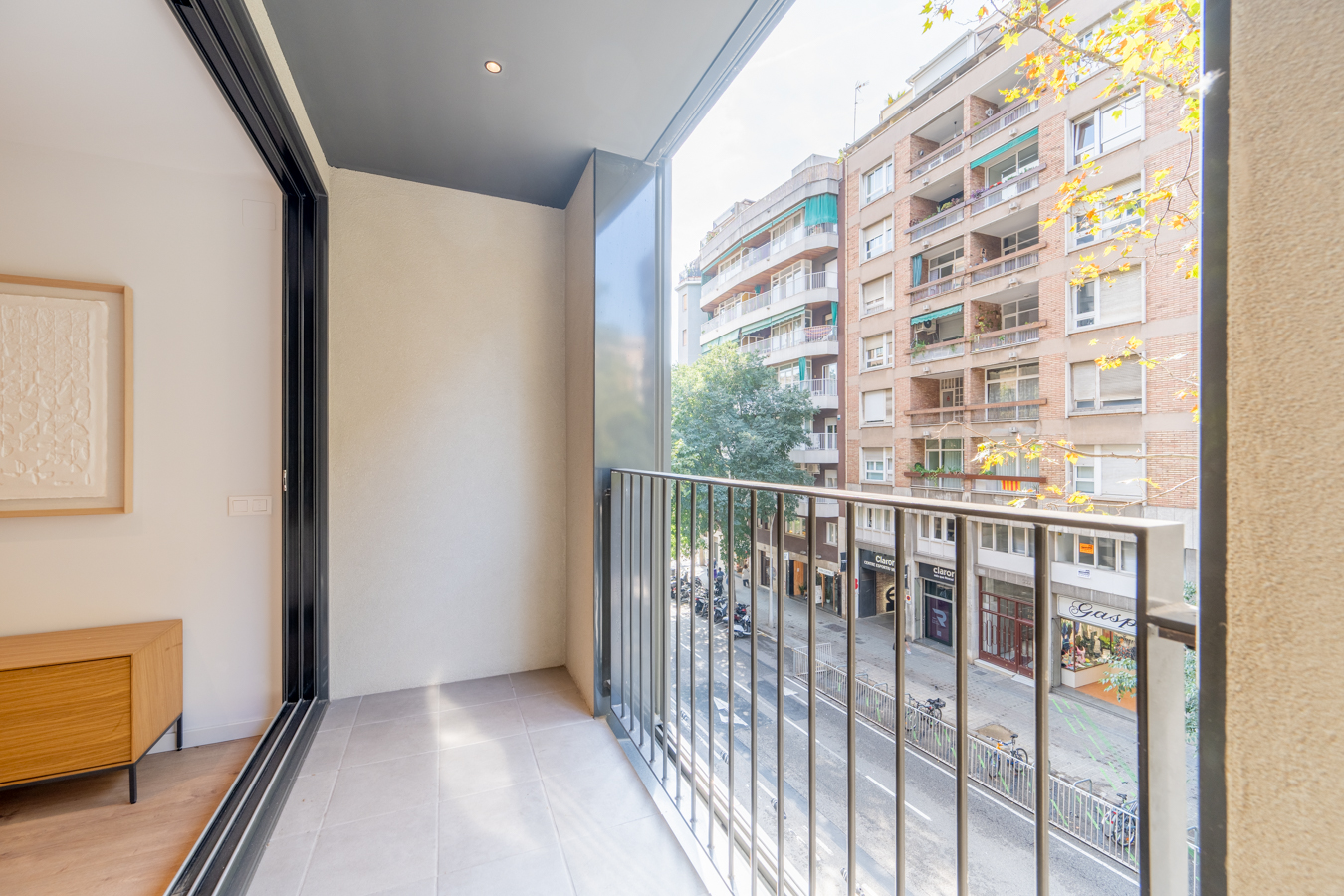 This fabulous property has an enviable location in Barcelona and forms part of a comprehensive refurbishment project in a regal estate building with exclusive luxury flats. The building is on the corner of Carrer Girona, which is already being transformed into a pedestrian street and the works are almost finished, and Avinguda Diagonal, which is being transformed into a boulevard-like avenue with a large pedestrian area, green areas and cycle lanes, significantly reducing car traffic. You will be able to enjoy the best of Barcelona in an incomparable location: in the heart of Eixample, very close to Paseo de Gracia, the city centre and all the shops and services. This flat, on the 1st floor, has 110 built interior sqm and two balconies totalling 4.75 sqm. As it is a corner building, it has great natural light, which is unusual in the Eixample, and unique views with a lot of depth. An entrance hall leads to the hallway, which leads to the large 43 sqm living-dining room with open-plan kitchen, which has a balcony overlooking the street. The night area consists of 2 bedrooms. The fantastic master suite has a dressing room at the entrance and a private bathroom. It also has a balcony facing the street. In addition, there's a double bedroom and, next to it, a separate bathroom. The works are scheduled to be completed in the last quarter of 2024 and the keys will be handed over in the first quarter of 2025. The flat will have the highest quality materials and finishings, as well as an interior design that will combine the classic elements of the regal estate buildings with the most modern. Ample spaces and brightness will be important, achieving a balance between traditional elements such as the restored Catalan vaulted ceilings and the comfort and amenities of a new build: underfloor heating, hot and cold air conditioning powered by aerothermics (the latest technology in air conditioning systems that produces energy savings of between 60% and 70% compared to conventional systems), top-of-the-range electrical appliances, natural wood floors, entrance door with security lock, built-in wardrobes, porcelain tiling on the bathroom walls, LED lighting, fibre optic connection, Internet and television signal sockets, etc. The building, which will be completely refurbished, will have 2 lifts (the original one restored respecting its wooden cabin with a new mechanism and another completely new one), a concierge, an area for charging electric bicycles and a private modernist-vintage style gymnasium with 2 toilets. The wide main façade of the building, as well as the numerous inner courtyards and the rear façade, provide the building with excellent lighting and ventilation. The unusual distance to the buildings parallel to the façade further enhances the feeling and perception of spaciousness. As this is a modernist building with important historical value, the interior design team has prioritised the recovery of some of the original elements. For example, a complete restoration and rehabilitation of the modernist stuccoes of the staircase core has been carried out; and in the independent vestibules, recovered hydraulic mosaic tiles will be installed to maintain the historical value of the property. The exterior joinery has also been replaced with wooden windows and balconies with thermal break and laminated insulating glass. This new development has 1, 2 and 3 bedroom apartments with prices starting at 522.000 €, 626.000 € and 958.000 €, respectively. Do not hesitate to contact Bcn Advisors for more information. * The renderings and square metres in this listing may be subject to change. These images are merely informative and may change depending on the needs of the clients or changes that may be made during the execution process of the refurbishment project and/or project works. * The floorplan and the content of this listing are not a contractual document, it's part of the executive project and may be subject to modifications due to technical requirements, administration or public organisations. The surfaces will be provisional. The furniture (including the kitchen), gardening and accessory elements are only illustrative.