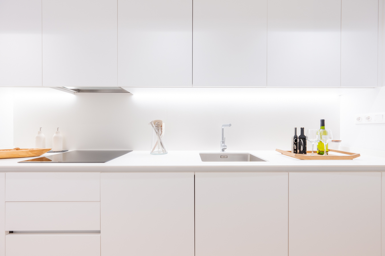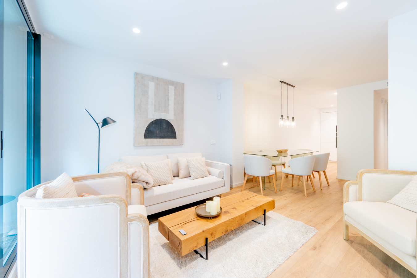The interior design has been conceived to allow life to flow harmoniously. The living area features a living-dining room with an open-plan kitchen that is filled with natural light thanks to a large floor-to-ceiling window that gives direct access to the terrace. In the sleeping area, three double bedrooms guarantee rest and tranquillity as they overlook an interior courtyard. The master suite has a private bathroom, while the other two bedrooms share a separate bathroom.