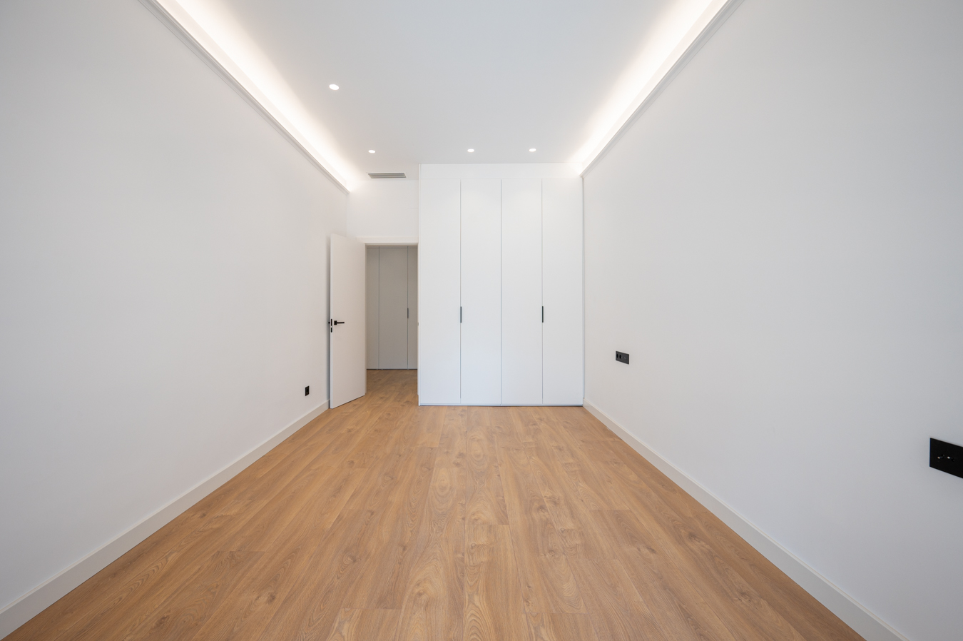 This spacious brand new refurbished flat, which has retained original features, is located next to Plaza Urquinaona, a fantastic location on the border between the Eixample's right side and El Born neighbourhoods. Therefore, you can enjoy the best of both areas just a few steps away, as well as the city centre, as it is only one street away from Plaza Catalunya and Paseo de Gracia. The property has 235 sqm according to the Land Registry (216 sqm of living space and 19 sqm of common areas) and a 12.7 sqm terrace. It faces both the street and an interior courtyard between buildings, which provides plenty of natural light and cross ventilation. It's on the real second floor of a renovated regal estate building with a lift. A spacious entrance hall leads us to the left to the wonderful living area, consisting of a living-dining room and a semi-open kitchen fully equipped with high-end household appliances. The living-dining room has two balconies overlooking a quiet pedestrian street, and the high ceilings with mouldings and rosettes create a feeling of incredible spaciousness and light. In addition, the kitchen has retained its original Catalan vaulted ceiling. The property has 4 double bedrooms. The master bedroom has an en-suite bathroom with a freestanding bathtub and access to the terrace, a quiet place to enjoy the outdoors with views of a large interior courtyard. Next to it there's another double bedroom with access to the same terrace. The other two bedrooms are interior, and one of them has an en-suite bathroom with a bathtub. Finally, there's a separate bathroom with a shower and a toilet. The flat stands out for the elegance and high quality of its renovation. It is equipped with parquet flooring and ducted hot/cold air conditioning. This property is ideal for enjoying Barcelona to the fullest, surrounded by all the shops and services you need for your daily life. In addition, you have shopping centres and top brand boutiques, bars and restaurants, the lively leisure options of the El Born neighbourhood and prestigious institutions and workplaces. Of course, the public transport connections to any part of the city and the metropolitan area are excellent. Do not hesitate to contact Bcn Advisors to visit this apartment.