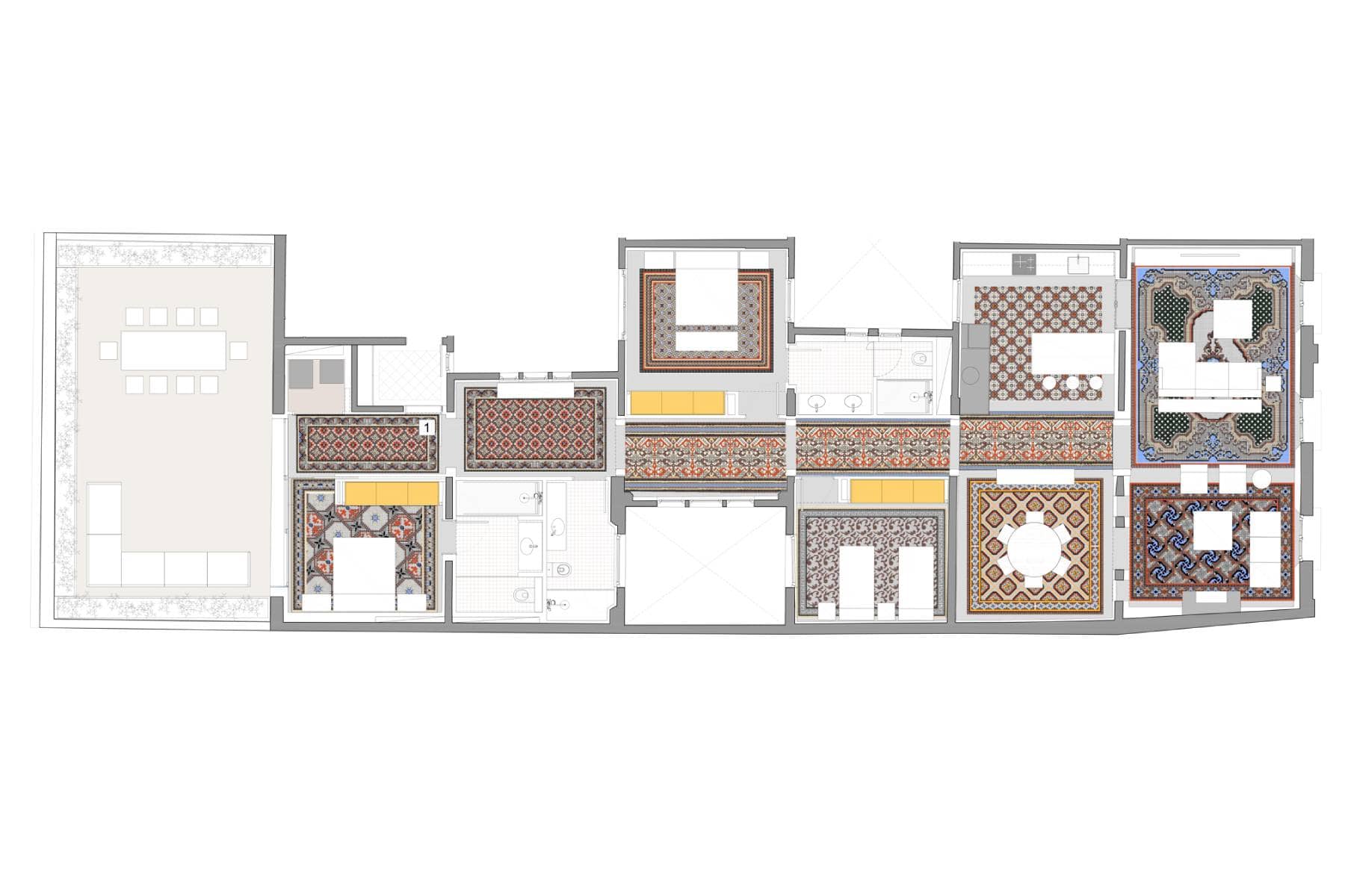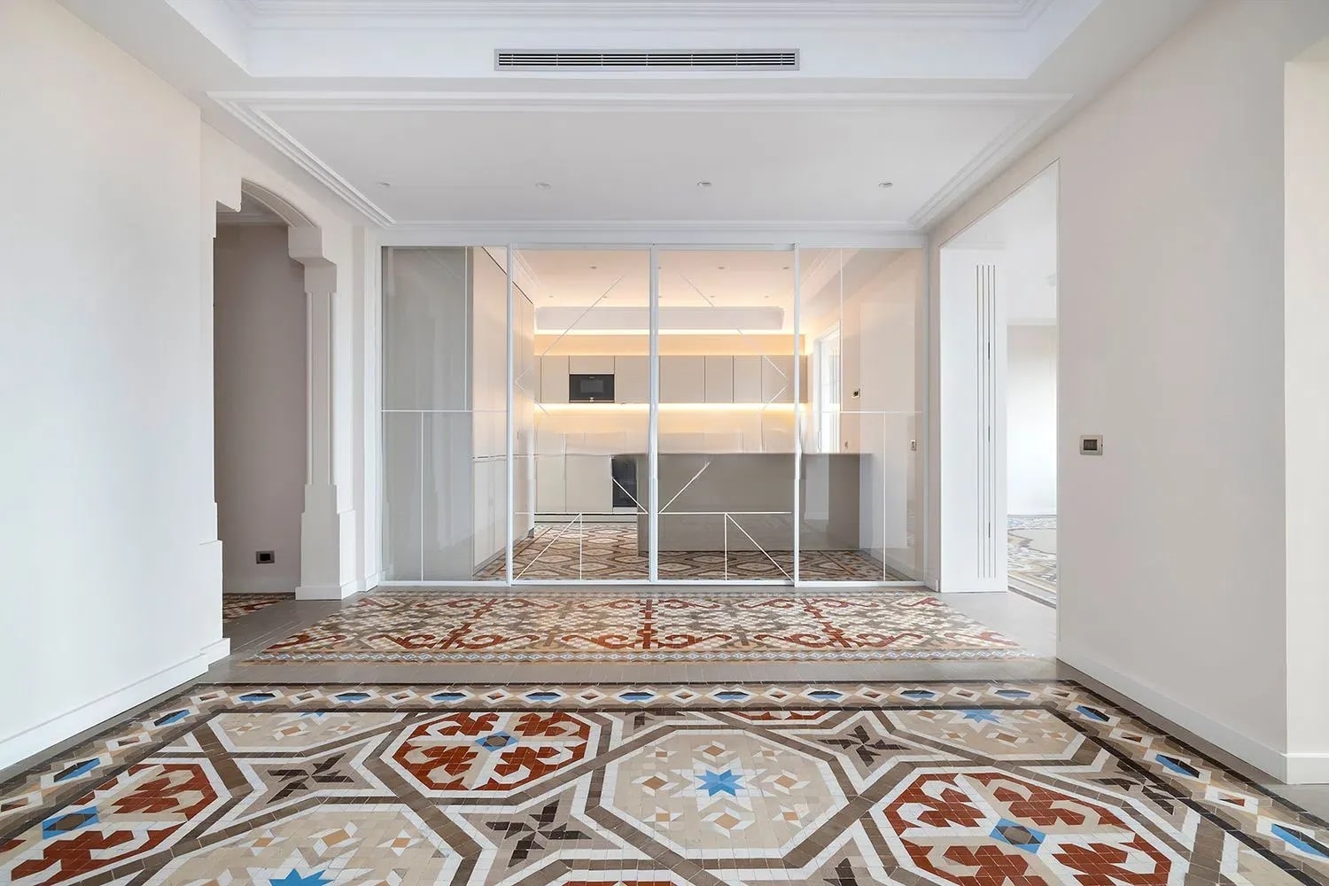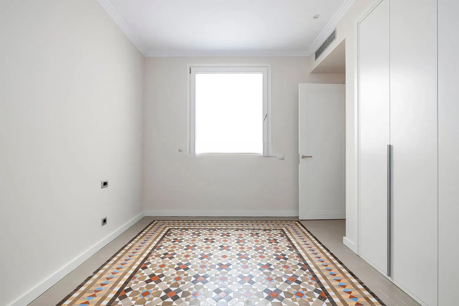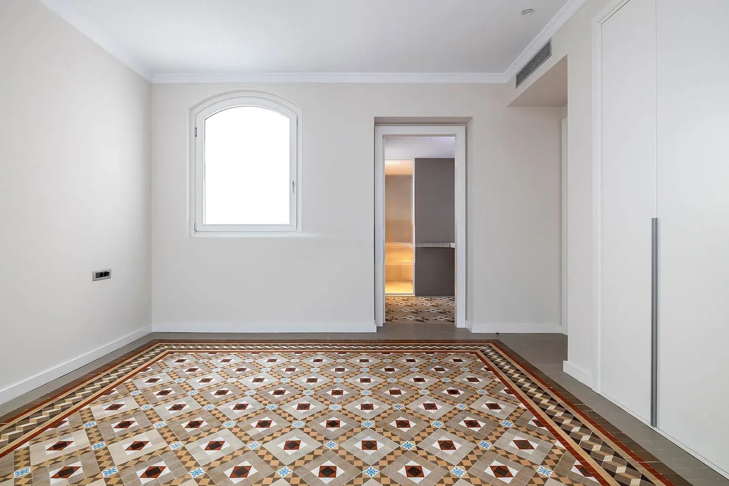 The property conserves the beautiful original hydraulic floors and has all the comforts of the 21st century in a magnificent modernist building. Beautiful ironwork, stained glass windows, unique hydraulic floors, carved woodwork, all original, combined with the most modern building technologies and the most up to date equipment.