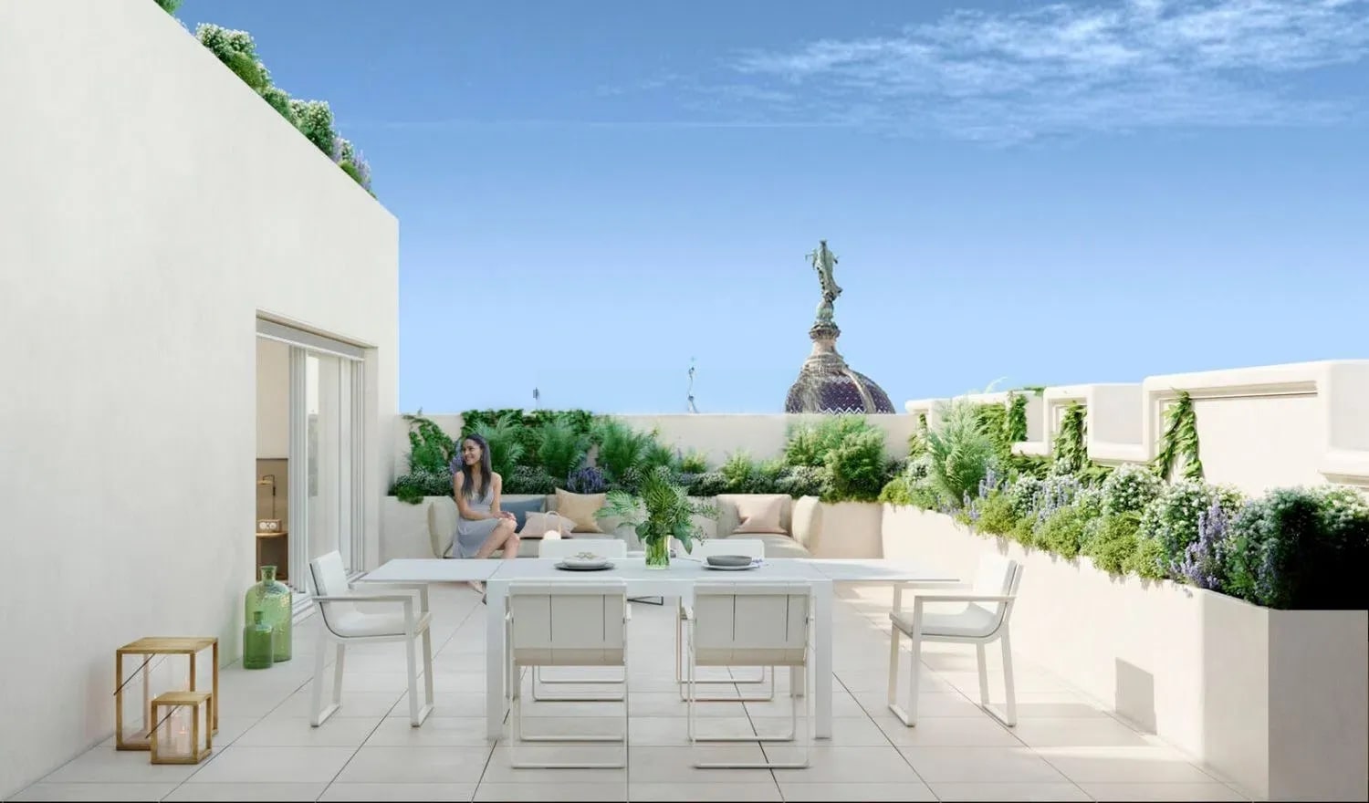 This extraordinary penthouse in an unbeatable location in Barcelona is part of an entire new construction project in a regal estate building dating from 1910 with exclusive upscale homes. Specifically, the top floor will be a new one and will be composed of 2 flats. he building is on the corner of Carrer Girona, which is already being converted into a pedestrian street and the works are almost finished, and Avinguda Diagonal, which is being transformed into a boulevard with a large pedestrian area, green zones and cycle lanes, greatly reducing car traffic. You will be able to enjoy the best of Barcelona in an incomparable setting: right in the heart of Eixample, very close to Paseo de Gracia, the city centre and a wide variety of shops and services. The penthouse has a 248 sqm interior built surface in which the large spaces and brightness have been maximised, achieving a perfect balance between traditional elements such as the high ceilings and the comfort and amenities of a new building. The property has two entries: one directly to the entrance hall inside the home and the other to an uncovered 23 sqm yard, which can be used as a chill-out area. This yard is connected to the maid's room, which has its own bathroom. The staff can therefore access it without going inside the house. The day area has an excellent south orientation to enjoy the sun all day long from mid-morning onwards. The large 39 sqm living room has access to the wonderful 40 sqm terrace. Through some stairs, we go up to the solarium, with 129 sqm, which has a swimming pool. The dining room is located next to the kitchen/diner, which has access to an uncovered 14 sqm yard. Next to it there's also a guest toilet. The night area is totally exterior and is composed of three en-suite bedrooms distributed in a corridor. The 40 sqm master suite is exceptional and corner, and the other two have a surface area of 19 and 17 sqm. The works are expected to be completed in the last quarter of 2024 and the keys will be handed over in the first quarter of 2025. The flat will have top quality materials and finishes, as well as an interior design with attention to detail that will combine the classic elements of the royal estates with the most modern. Ample spaces and luminosity will be important, achieving harmony between traditional elements such as the restored Catalan vaulted ceilings and the advantages of a new building: underfloor heating, hot and cold air conditioning powered by aerothermics (the latest technology in air conditioning systems that produces energy savings of between 60% and 70% compared to the usual systems), top-of-the-range electrical appliances, natural wood floors, entrance door with security lock, built-in wardrobes, porcelain tiling on the bathroom walls, LED lighting, fibre optic connection, Internet and TV signal sockets, etc. The building, which will be completely refurbished, will have 2 lifts (the old one, restored respecting its wooden cabin with a new mechanism, and a new one), a concierge, an area for charging electric bicycles and a private modernist-vintage style gym with 2 toilets. The extensive main façade of the building, the various interior courtyards and the rear façade provide the building with excellent lighting and ventilation. The unusual distance to the buildings parallel to the façade further enhances the perception of spaciousness. Considering that it is a modernist building with remarkable historical value, the interior design team has prioritised the recovery of some original elements. For example, there has been a complete restoration and rehabilitation of the modernist stuccoes of the staircase core; and in the independence lobbies, recovered hydraulic mosaic will be installed to maintain the historical value of the property. The exterior joinery has also been replaced with wooden windows and balconies with thermal break and laminated insulating glass. This building has 1, 2 and 3 bedroom flats with prices starting at 511,560 €, 613,480 € and 938,840 €, respectively. Contact Bcn Advisors for more information. * The renderings and square metres in this listing may be subject to change. These images are merely informative and may change depending on the needs of the clients or changes that may be made during the execution process of the refurbishment project and/or project works. * The floorplan and the content of this listing are not a contractual document, it's part of the executive project and may be subject to modifications due to technical requirements, administration or public organisations. The surfaces will be provisional. The furniture (including the kitchen), gardening and accessory elements are only illustrative. Are you ready to take the step towards the property of your dreams? Our luxury penthouses for sale in Barcelona are waiting to offer you an exceptional life.