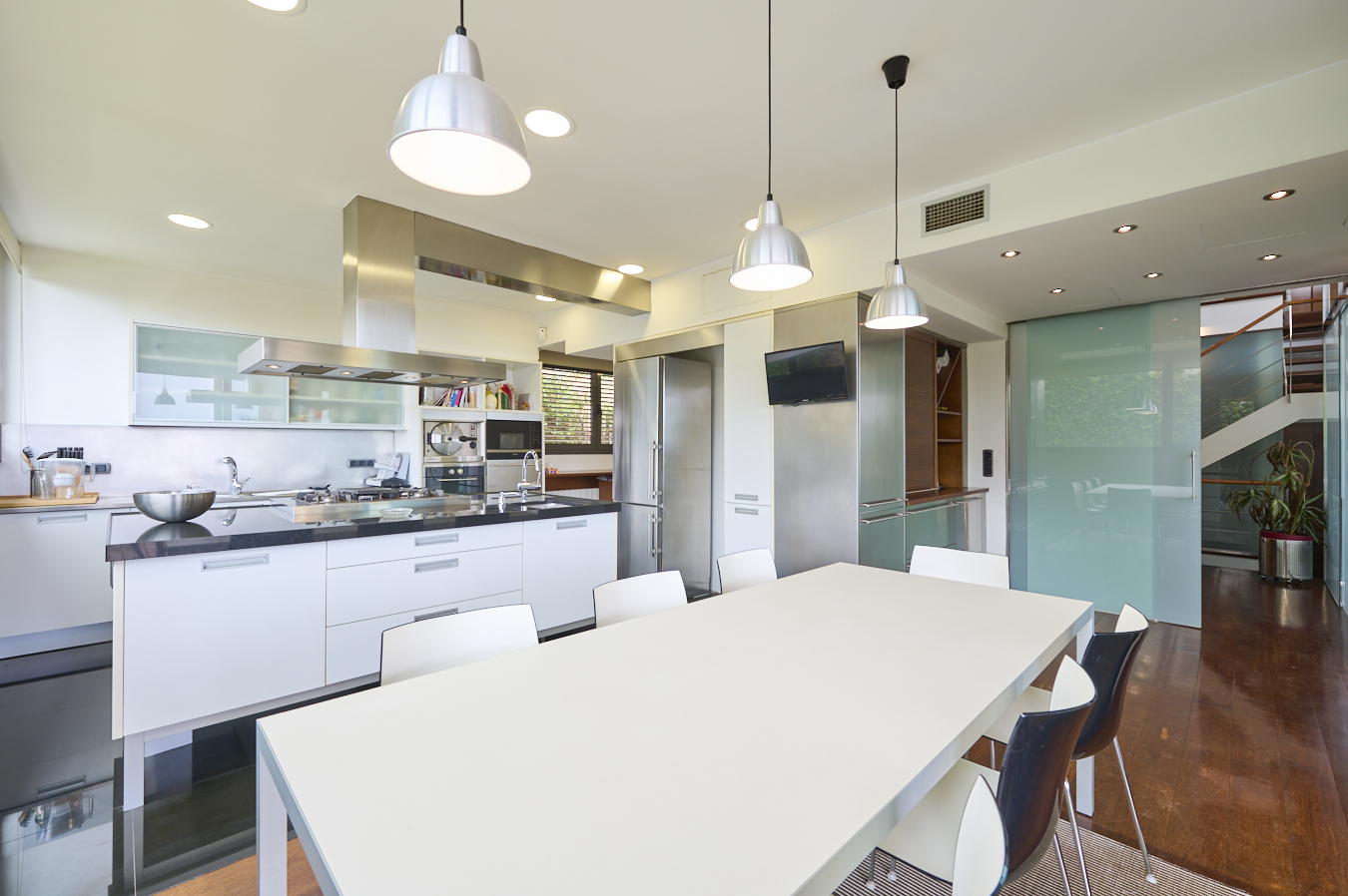 The house is equipped with ducted and zoned air conditioning in all the rooms and natural gas central heating. It’s located in a prestigious and very quiet residential area, with schools and sports centres very close and the natural park of La Oreneta and Sentmenat just 100 metres away. The communication by car is perfect, only 200 metres from the Ronda de Dalt ring road and the Carretera de les Aigües. Moreover, it allows you to enjoy all the services and shops of the upper area of Barcelona.